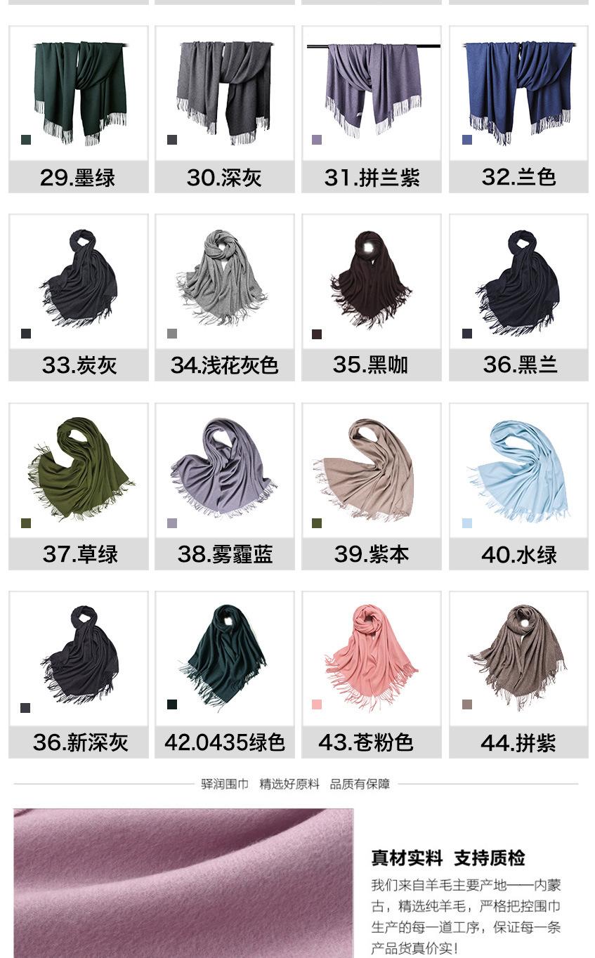 Bufanda de lana pura para mujer, gruesa y cálida, de fábrica en Mongolia Interior, para otoño e invierno, color liso, chal de regalo de lana nuevo.