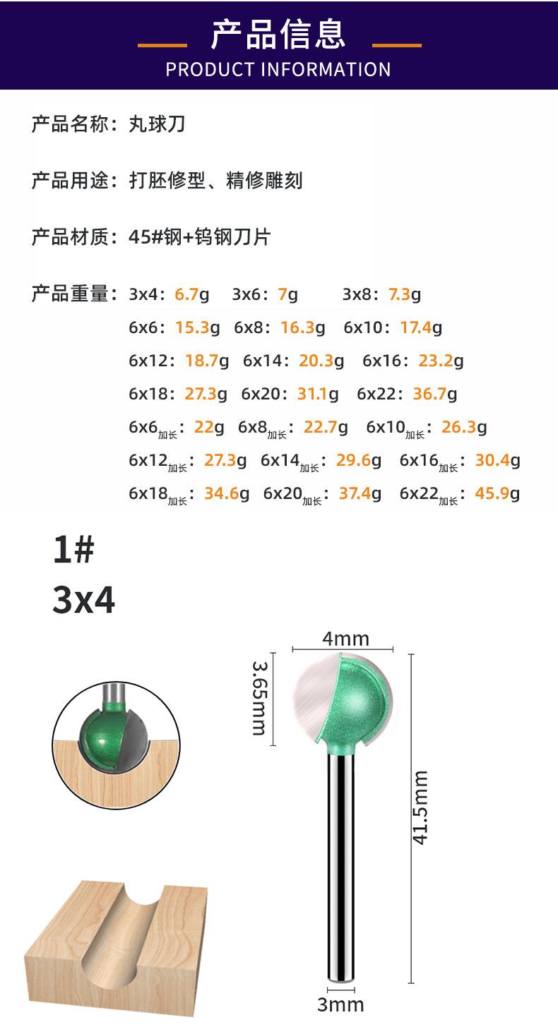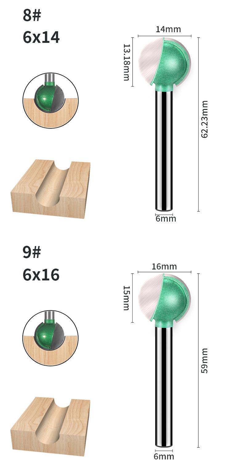 Cuchillo de bola para tallado, herramienta de pulido, cabezal de corte para tallado de raíces y madera, fresa esférica para carpintería