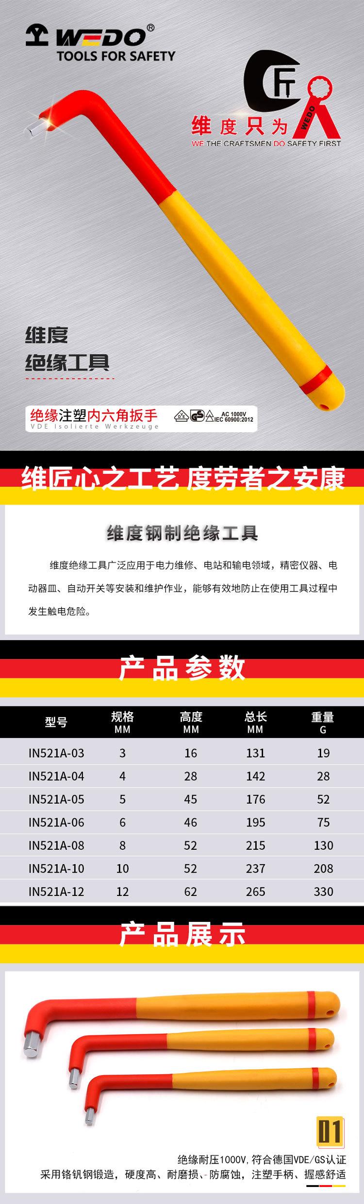 Llave hexagonal de inyección de aislamiento con certificación VDE, llave en L, suministro directo de fábrica, dimensión WEDO