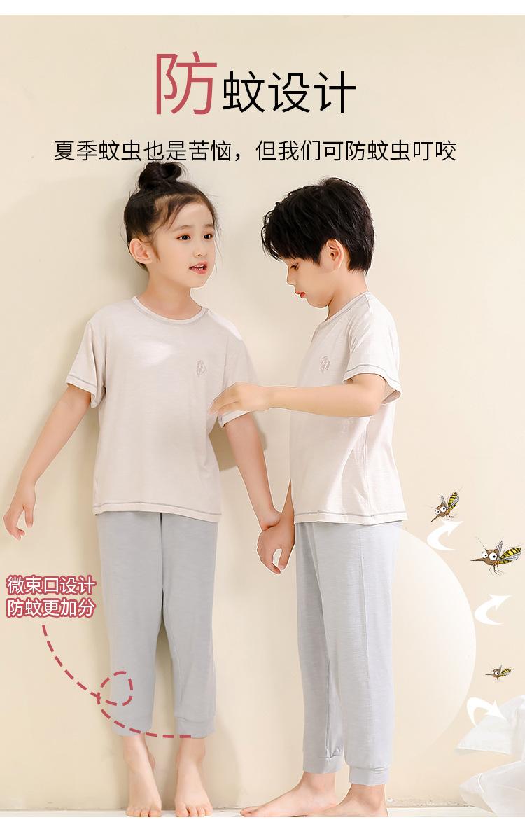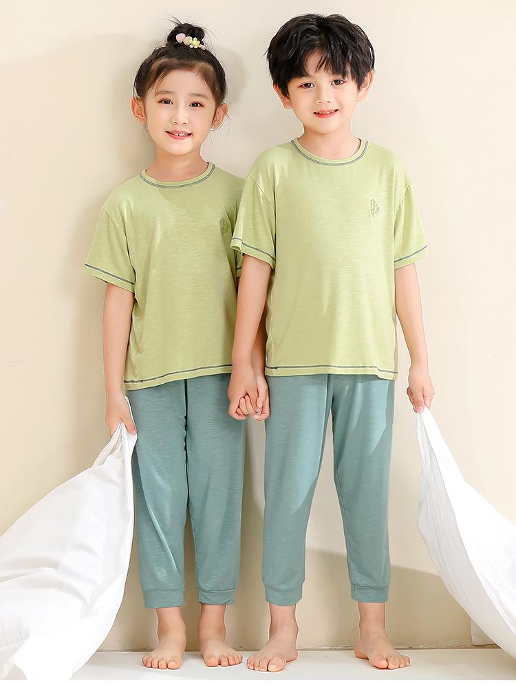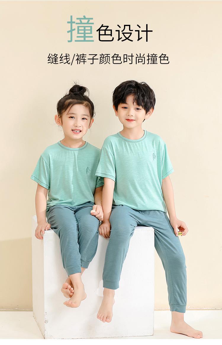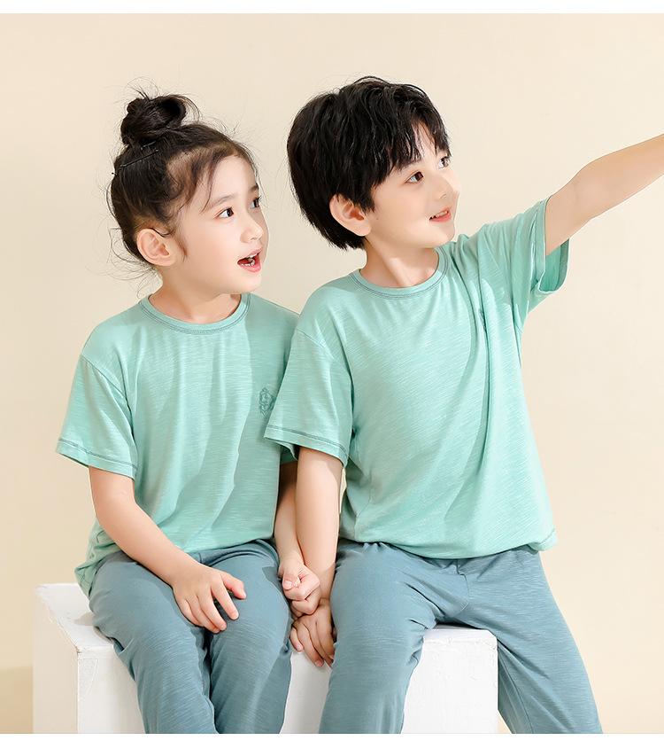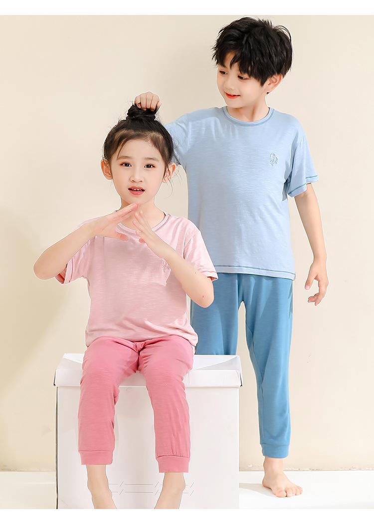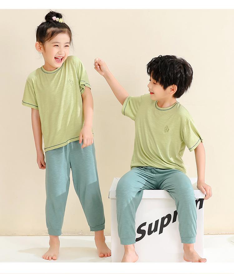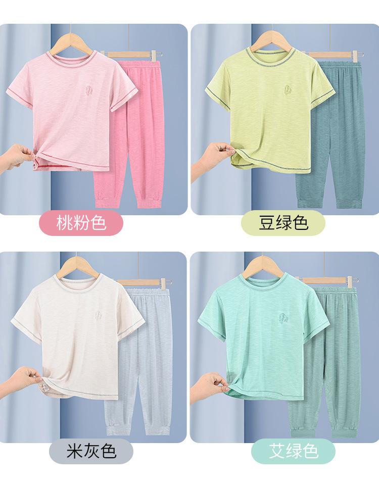 Pijamas para niños de bambú de seda de hielo, pantalones finos de manga corta para niños y niñas, ropa de verano para el hogar, ropa de aire acondicionado para niños medianos y grandes