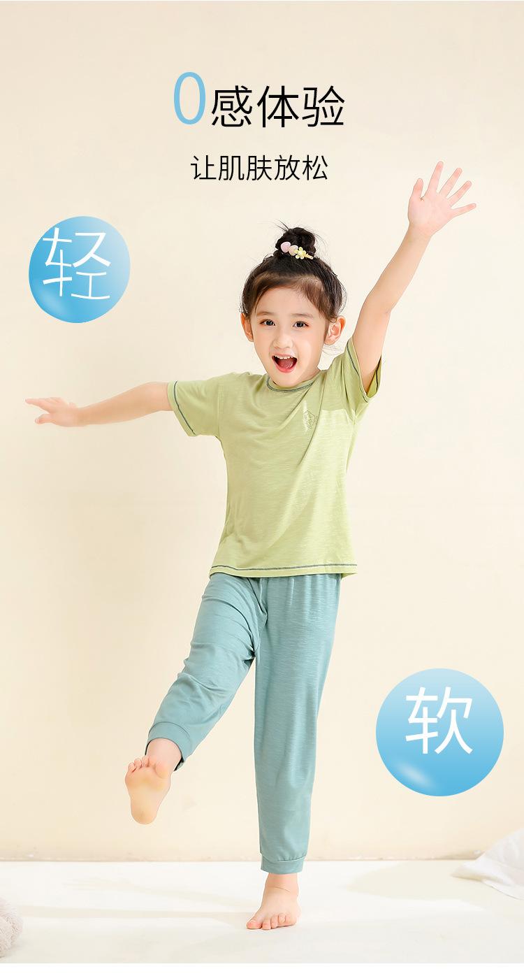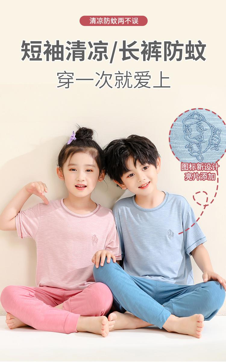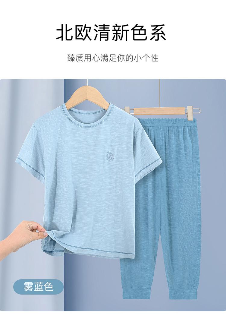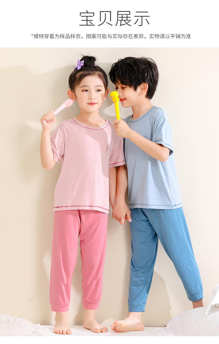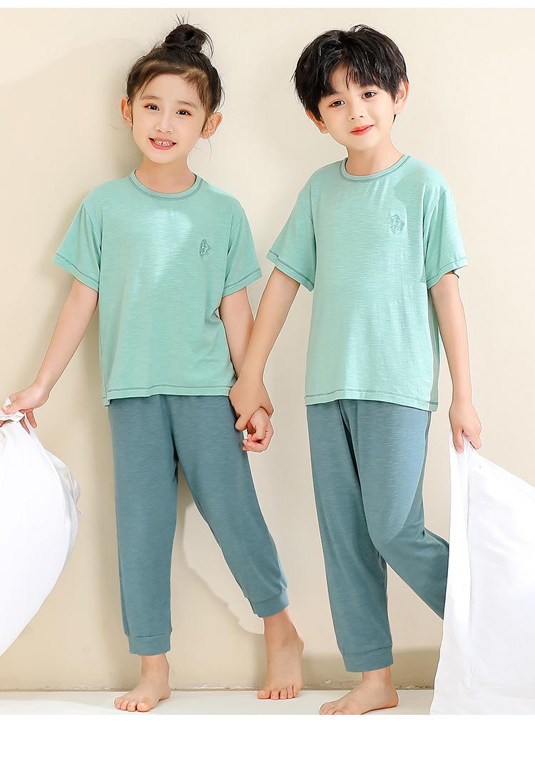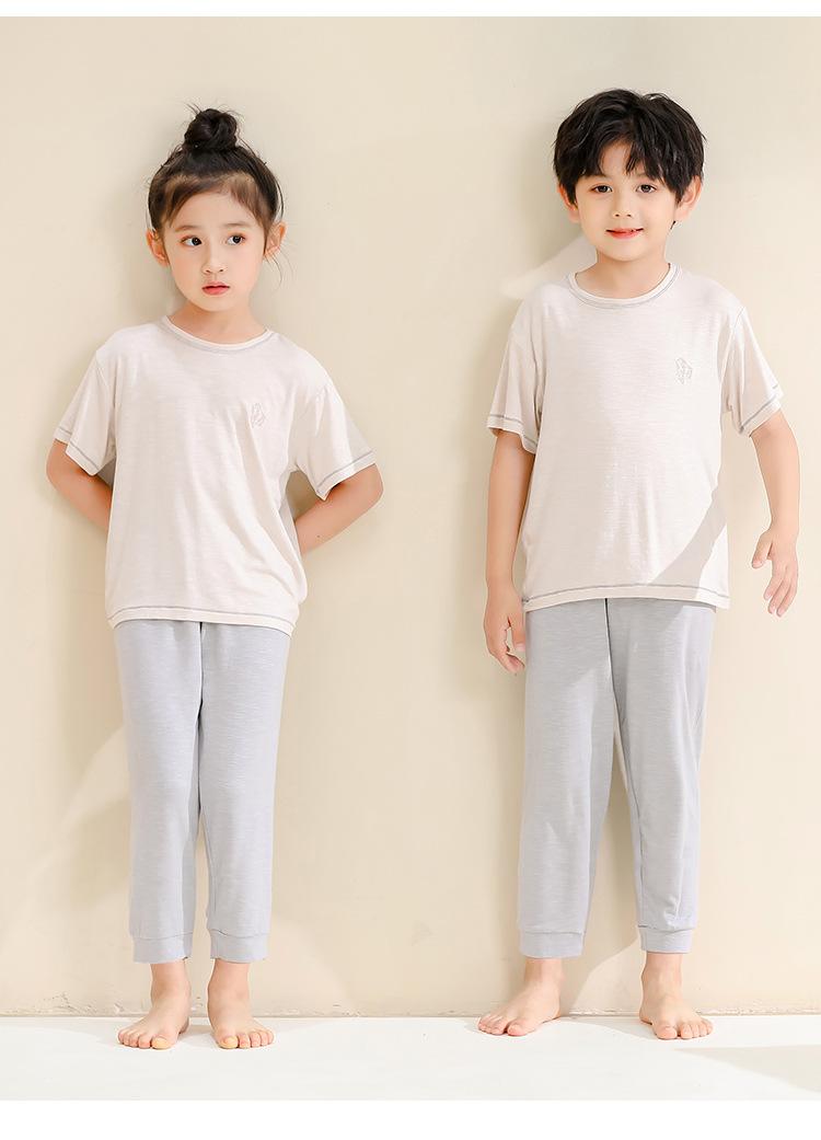 Pijamas para niños de bambú de seda de hielo, pantalones finos de manga corta para niños y niñas, ropa de verano para el hogar, ropa de aire acondicionado para niños medianos y grandes