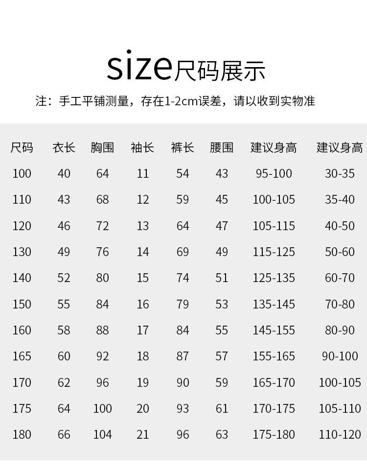 100cm, 110cm, 120cm, 130cm, 140cm, 150cm, 160cm