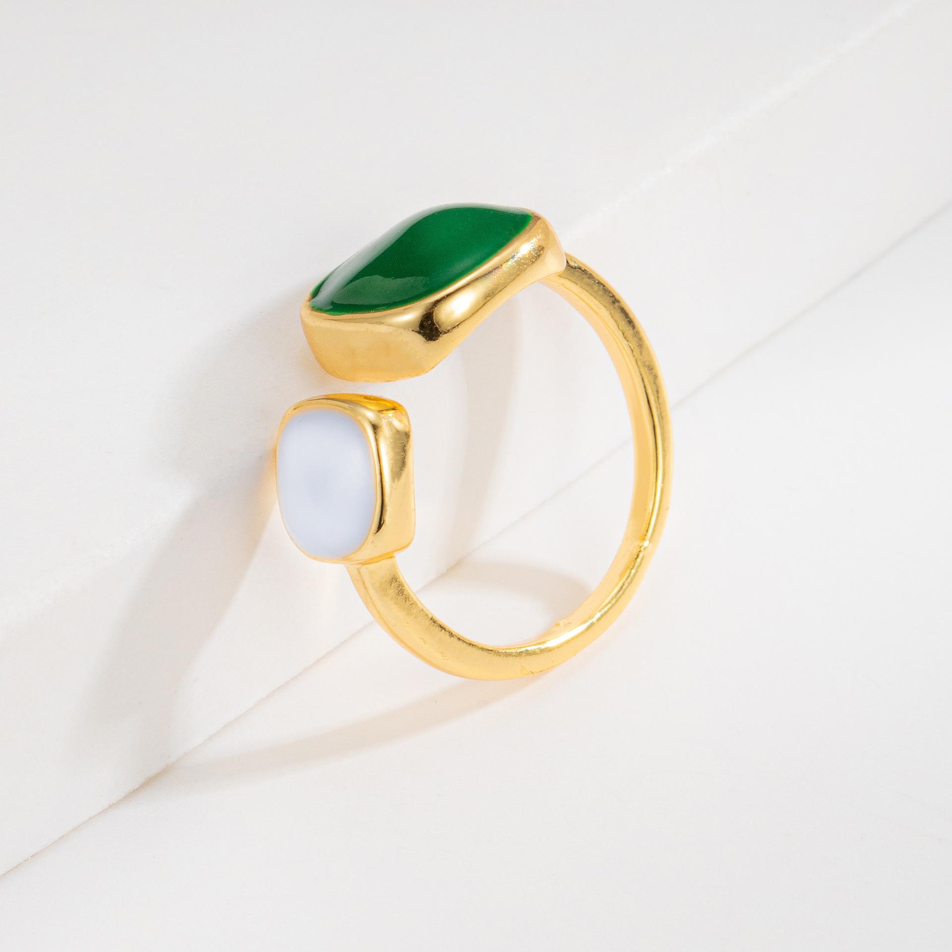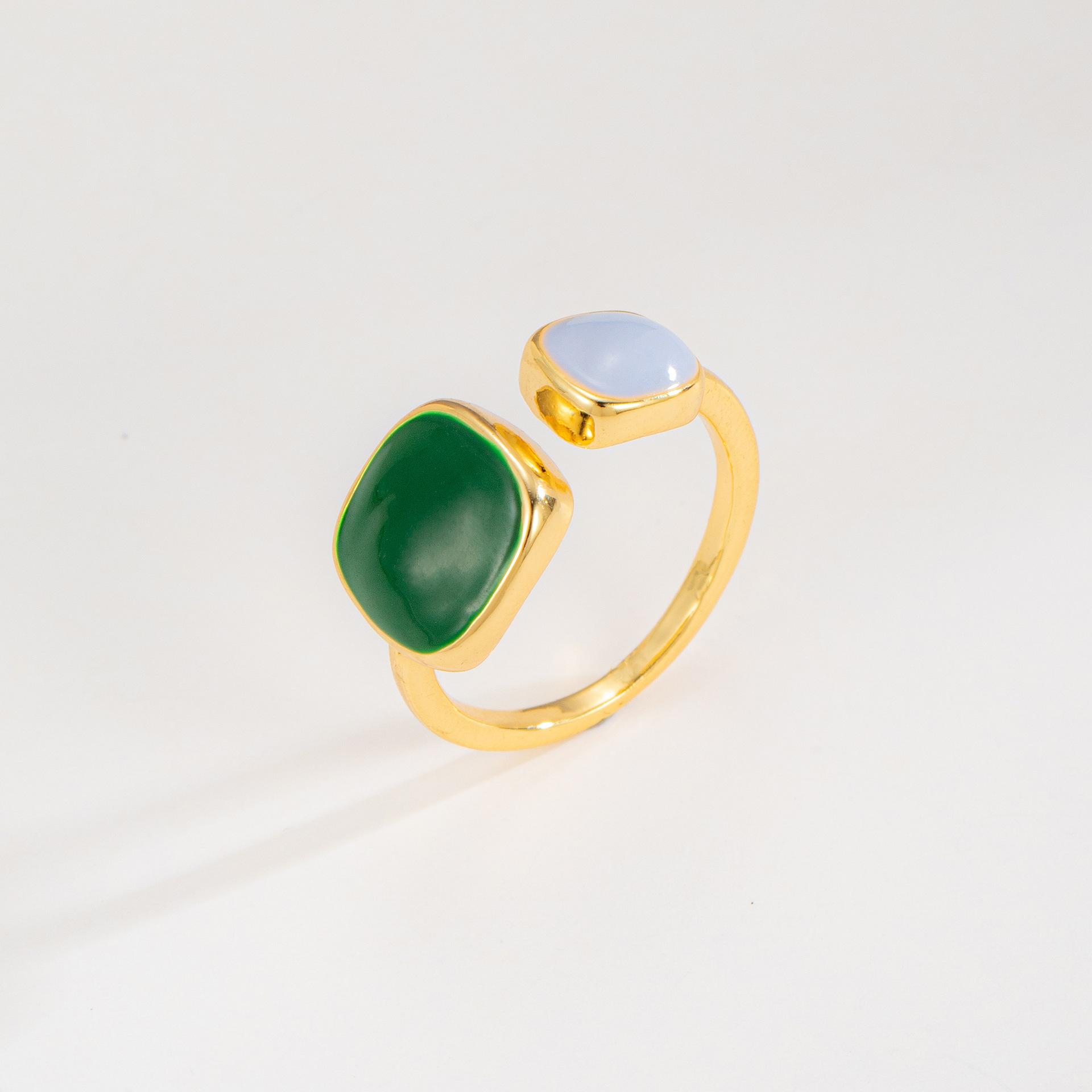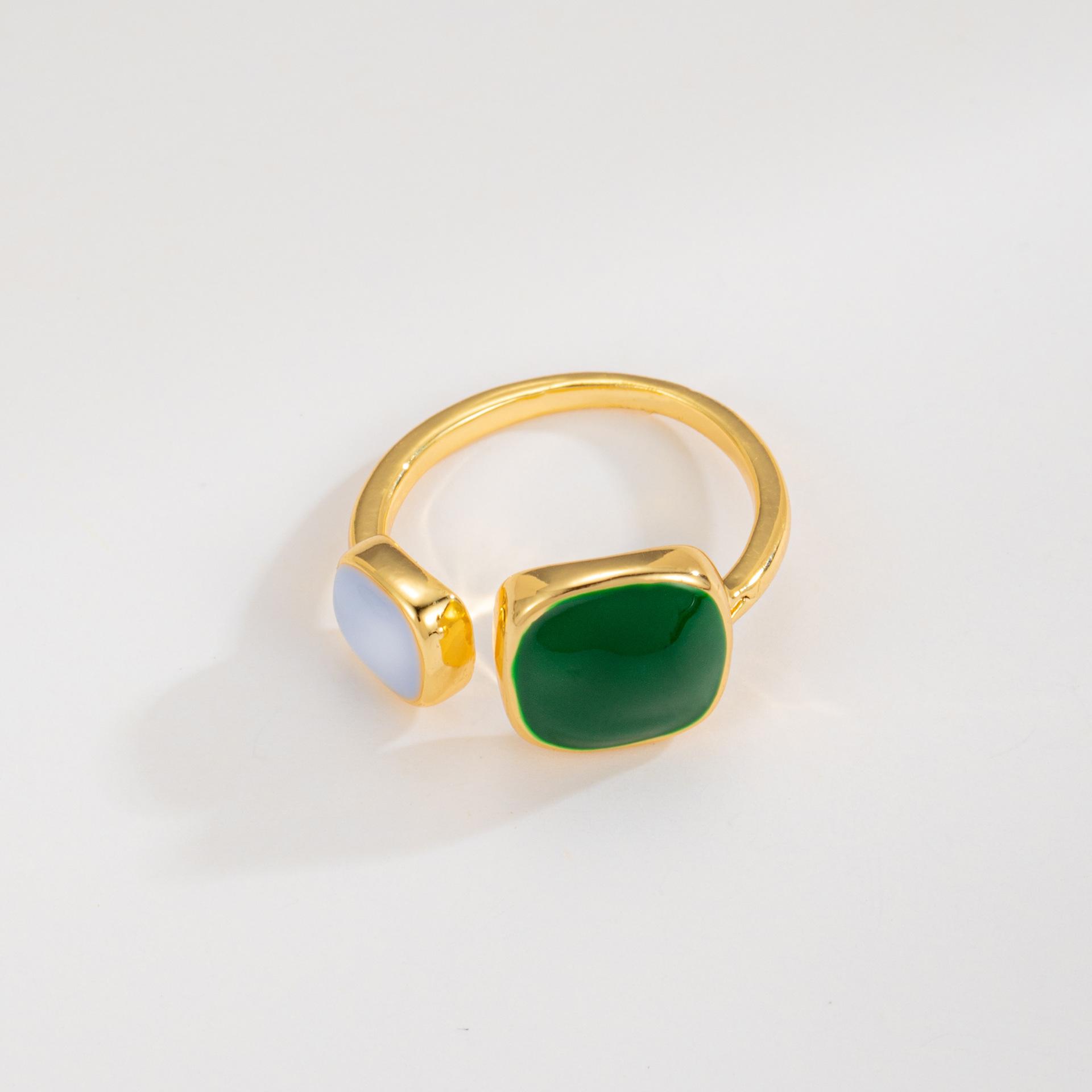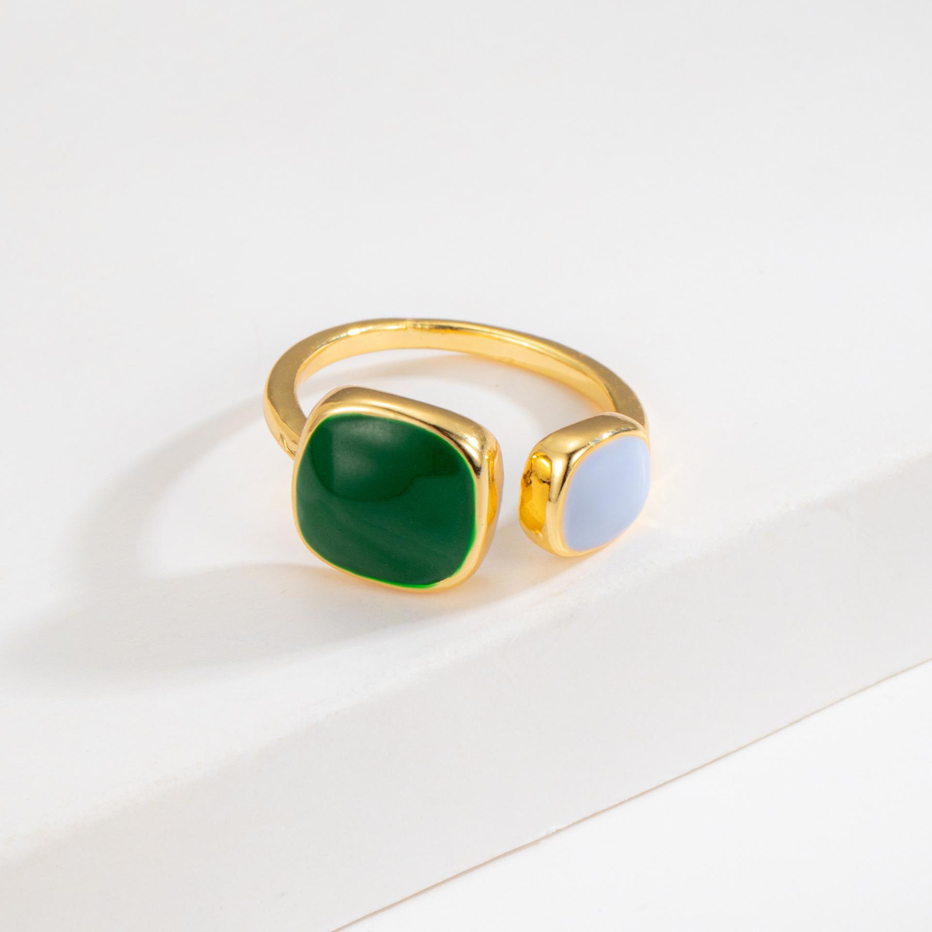 Anillo Abierto Cuadrado de Aceite Verde de Venta Caliente en Douyin Taobao 2023, Diseño Nicho Simple con Sentido de la Moda para Mujer