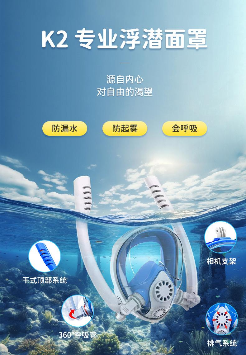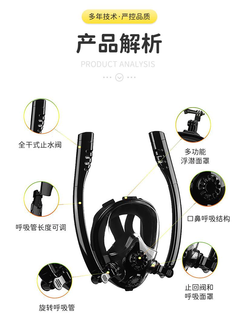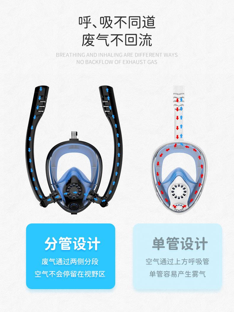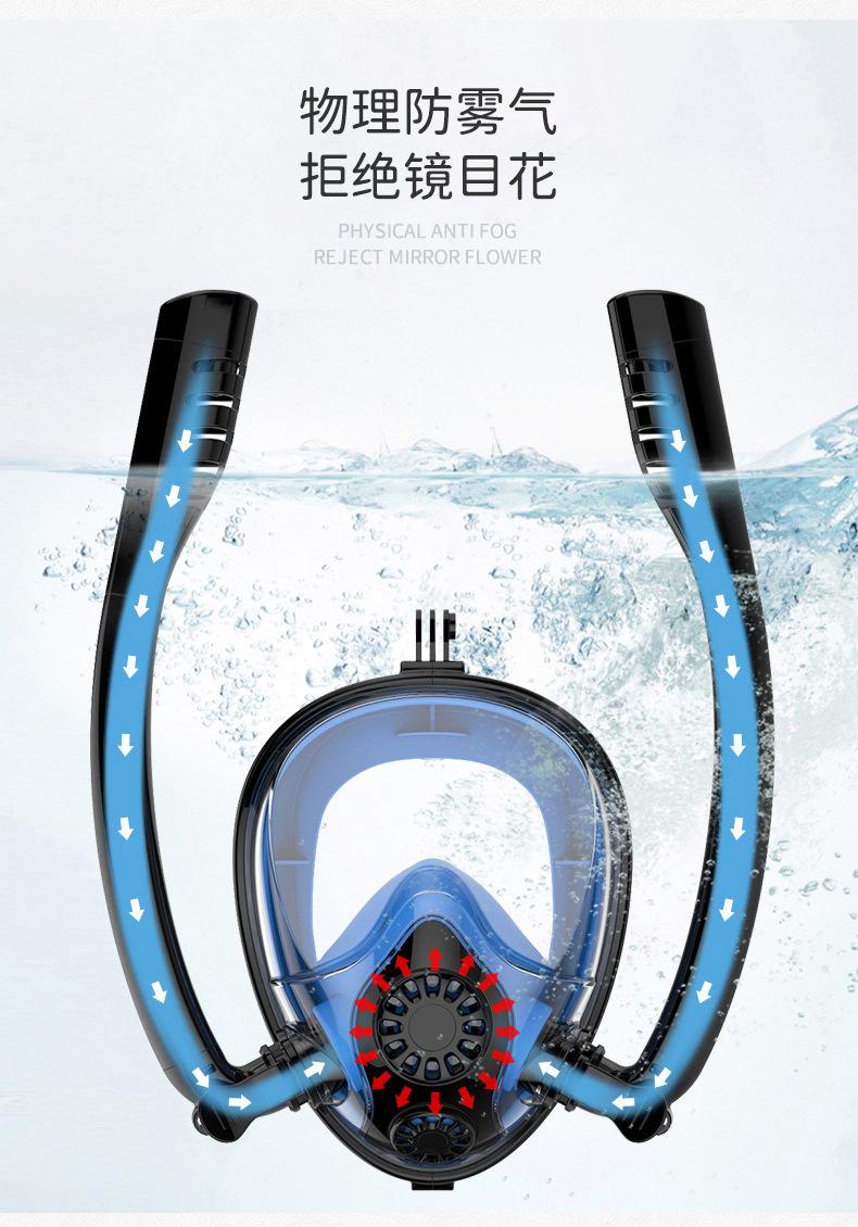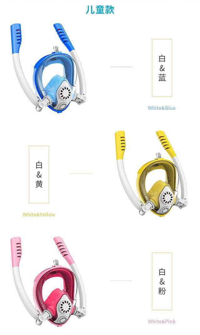 Máscara de Snorkel Antivaho para Niños Transfronteriza Totalmente Seca de Doble Tubo Máscara de Buceo de Silicona de Cara Completa
