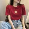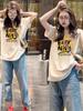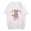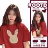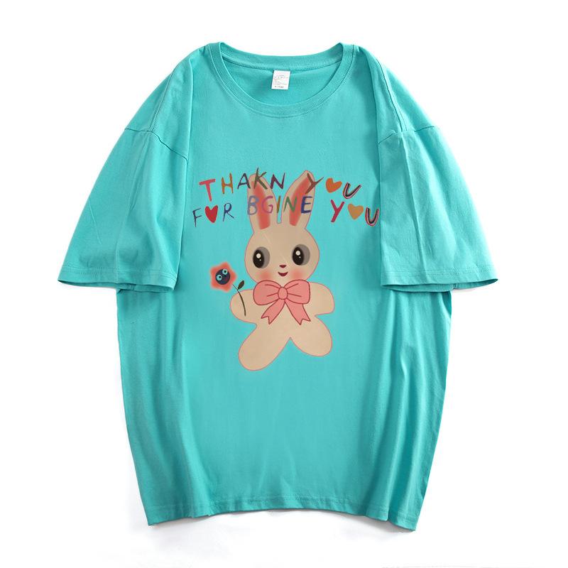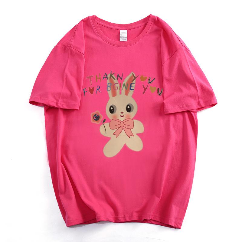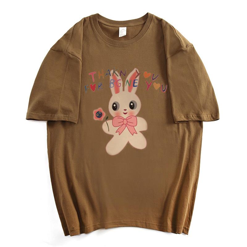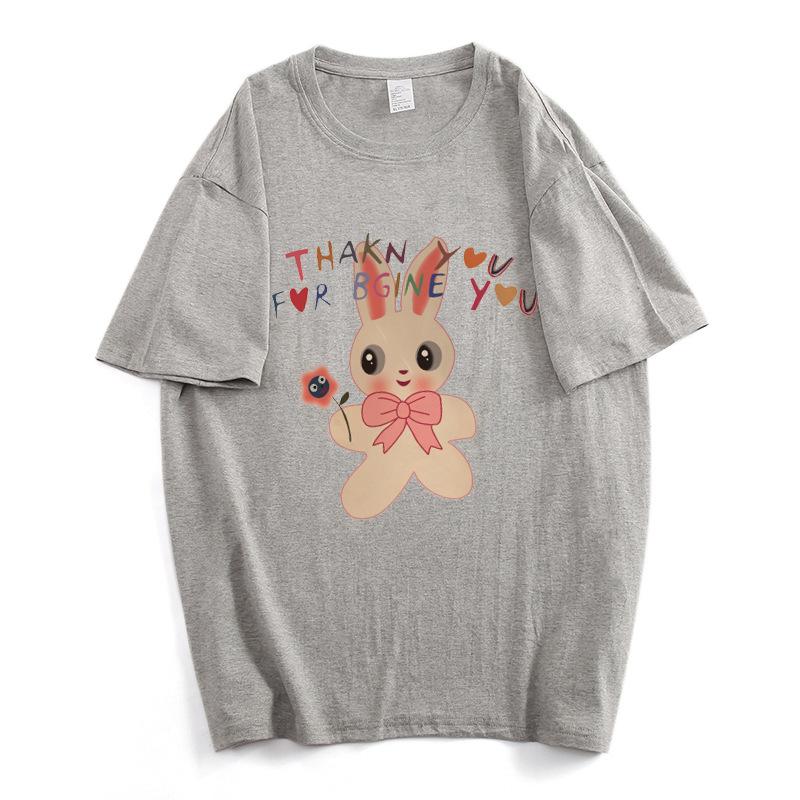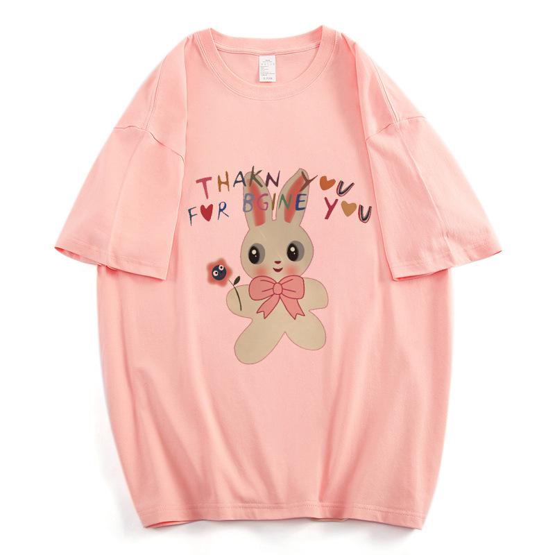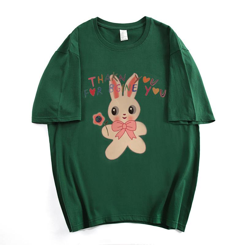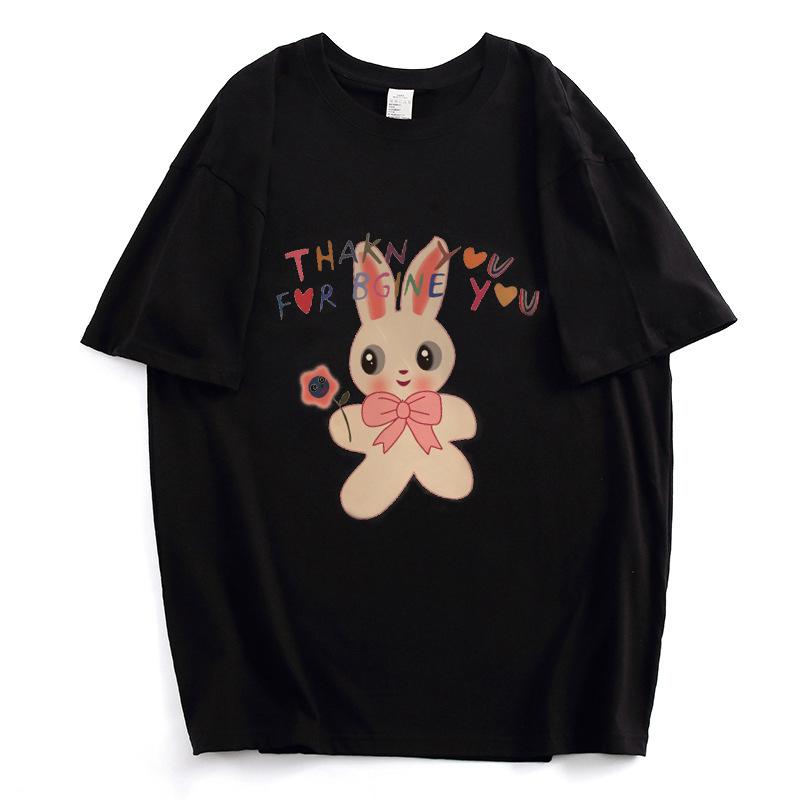 Camiseta de manga corta con cuello de algodón y estampado de conejo blanco para mujer, nueva camiseta de verano holgada de largo medio, informal, combinable con todo.