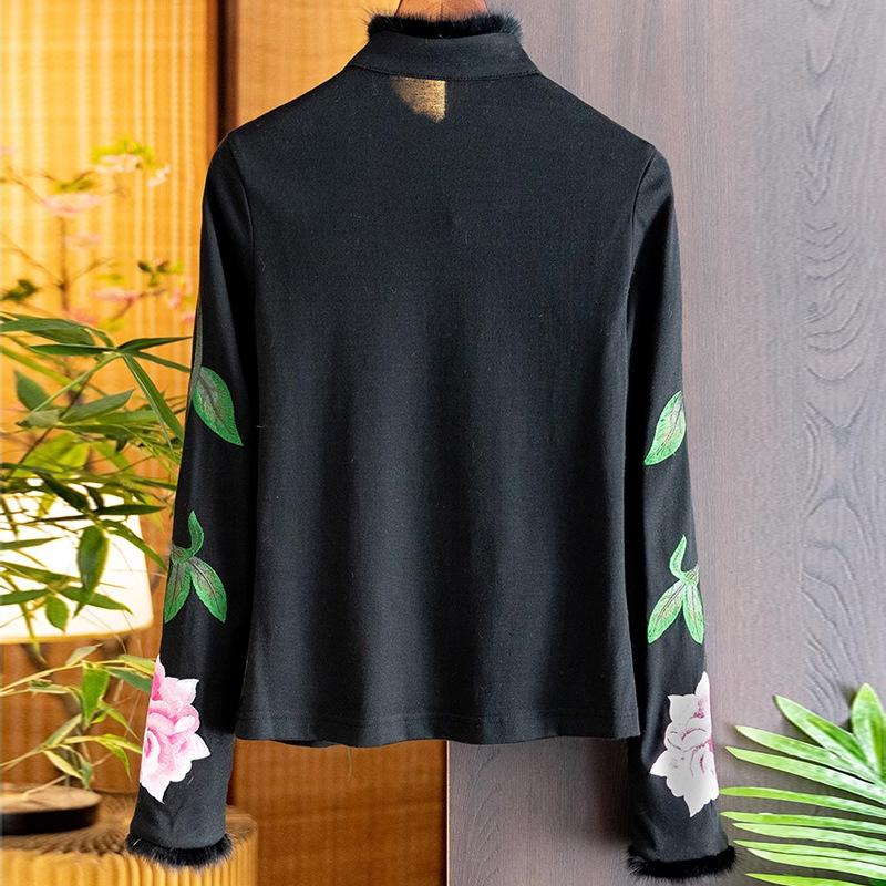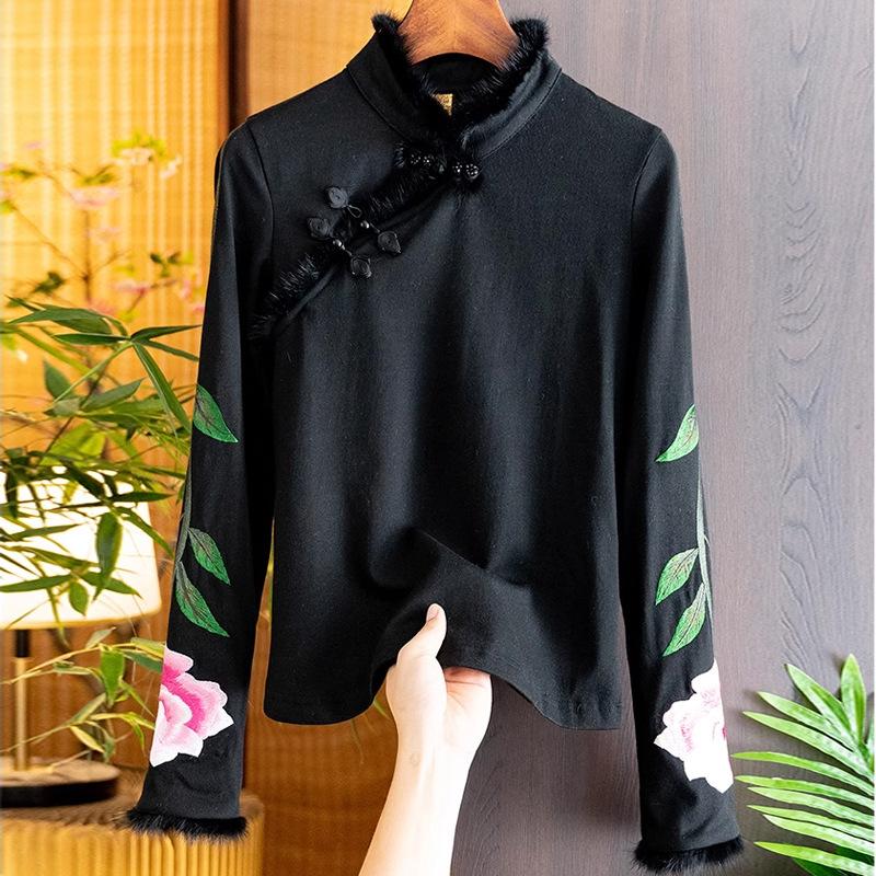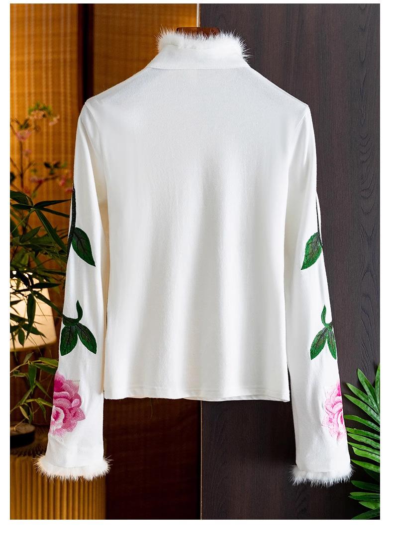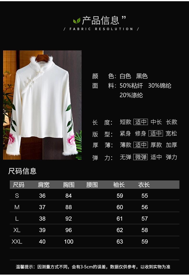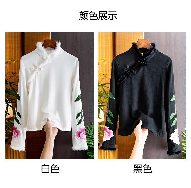Camisa Vintage de Nuevo Estilo Chino Base Blanca para Mujer 2023 Otoño e Invierno Nueva Moda Elegante Bordado de Industria Pesada Cuello Top