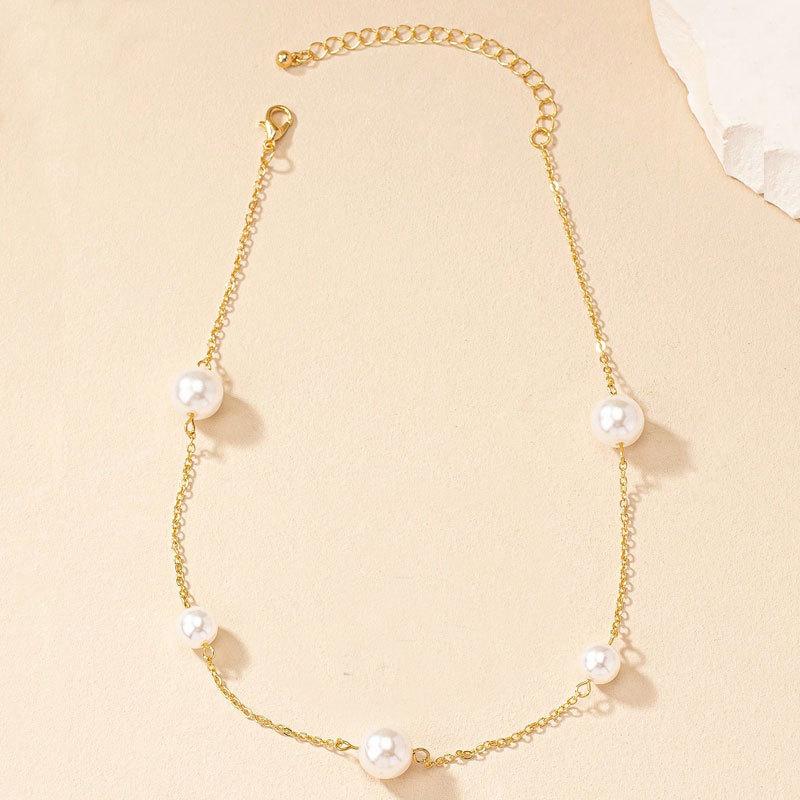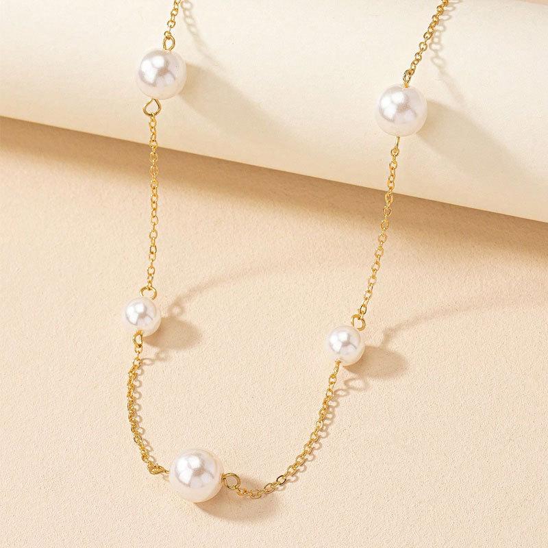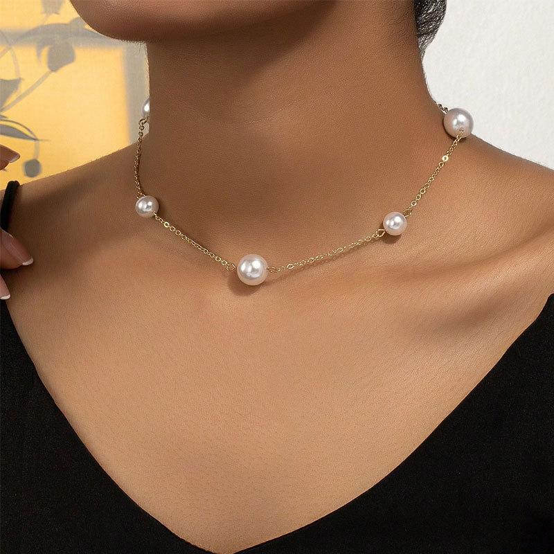 Collar de Cadena de Perlas Imitación de Venta Caliente Transfronteriza para Mujer, Estilo Ins de Lujo Ligero Famoso en Internet, Collar de Cadena para Clavícula que Combina con Todo, Joyería de Cadena al Por Mayor