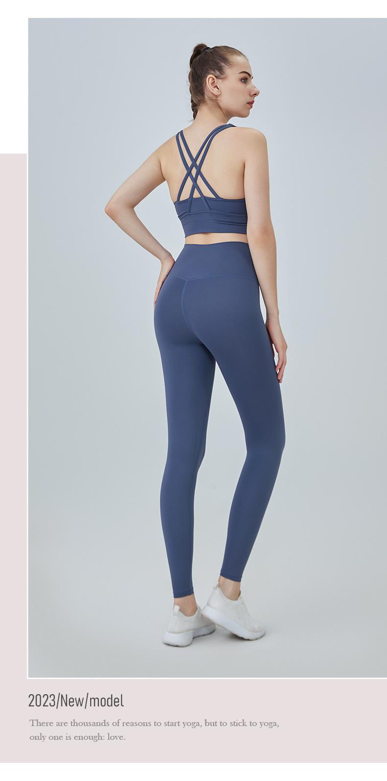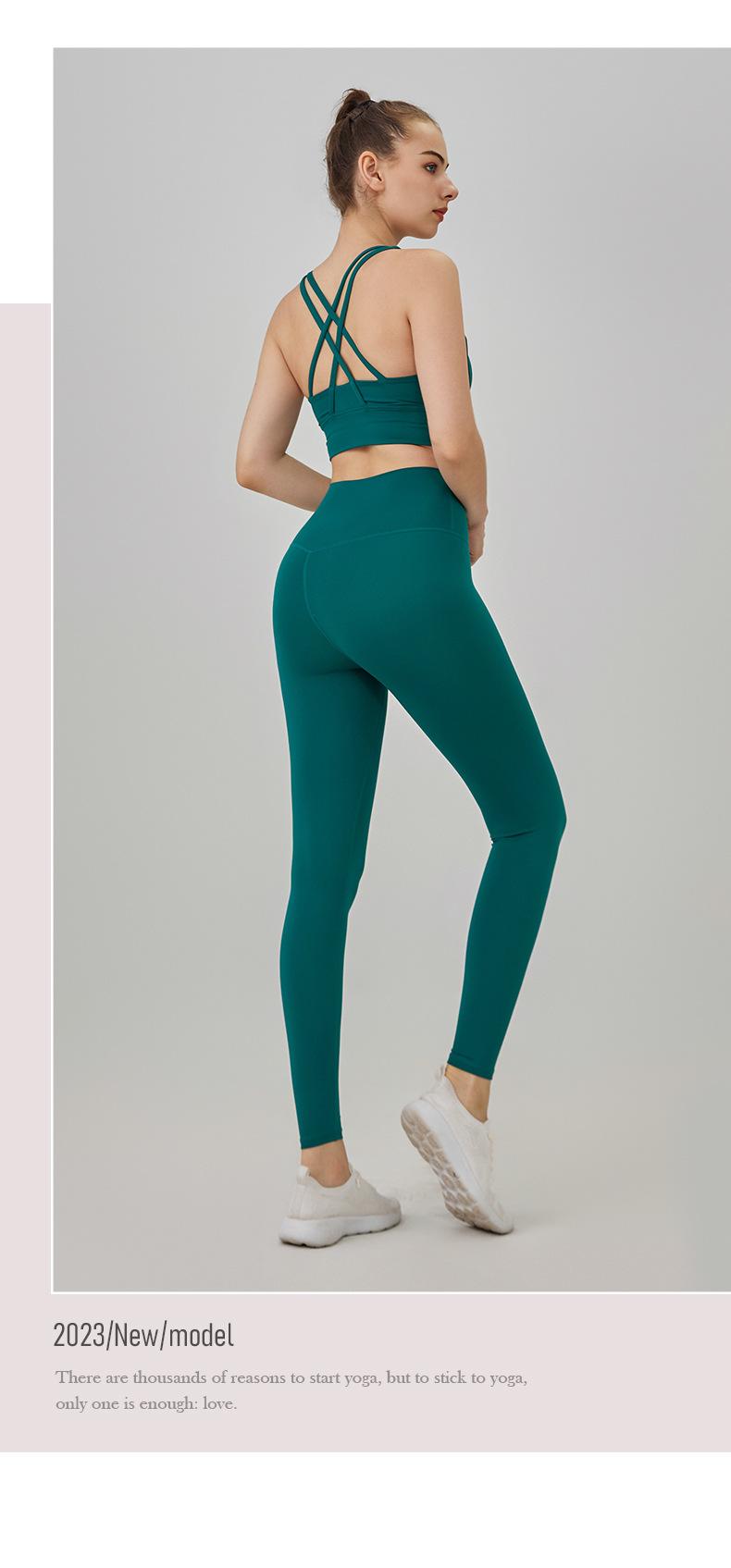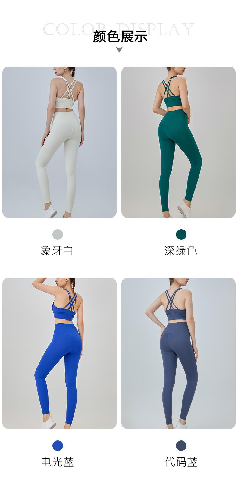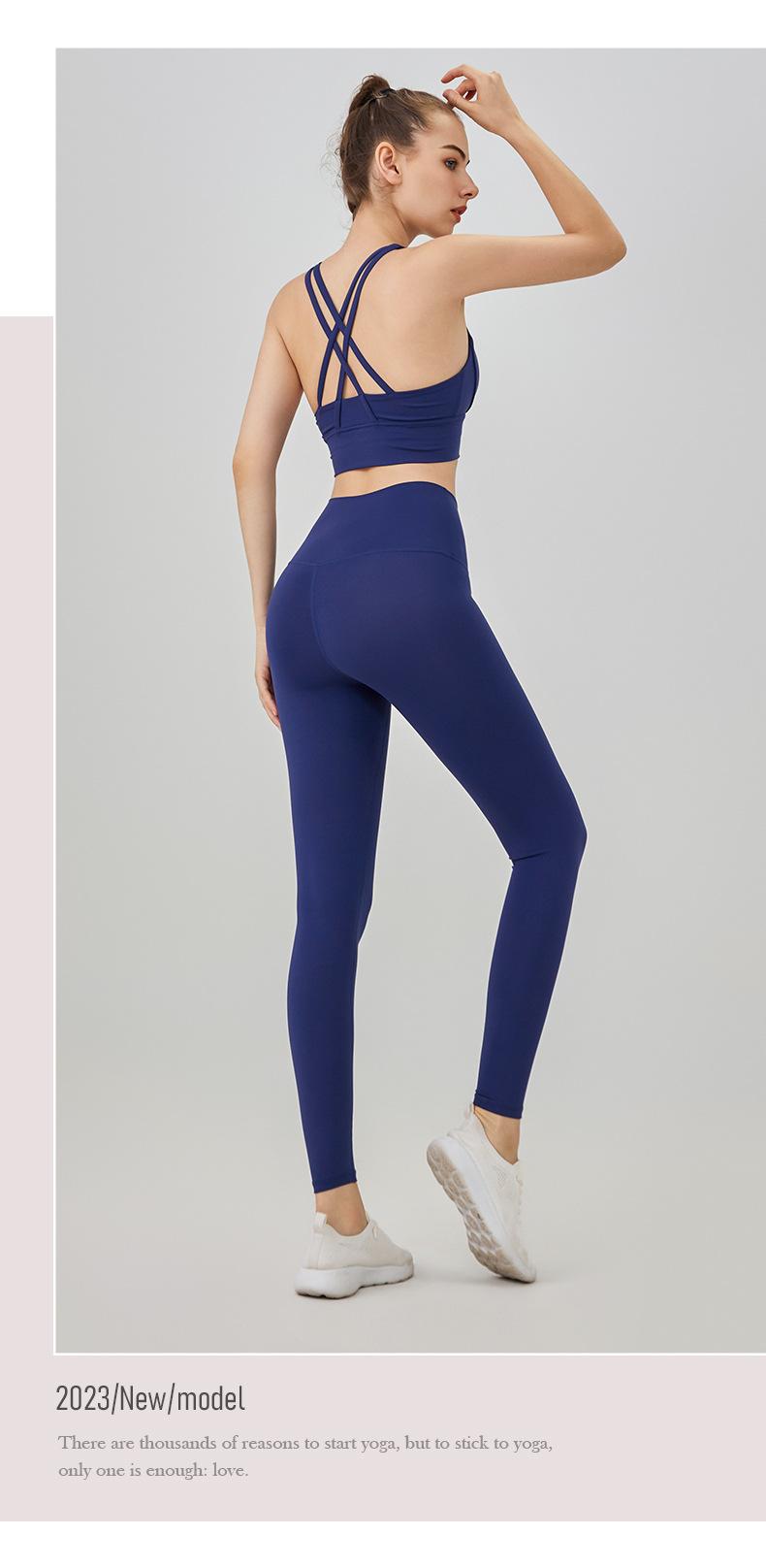 Ropa de yoga desnuda, traje deportivo, chaleco sexy con espalda cruzada, pantalones de yoga de cintura alta estilo europeo y americano color melocotón