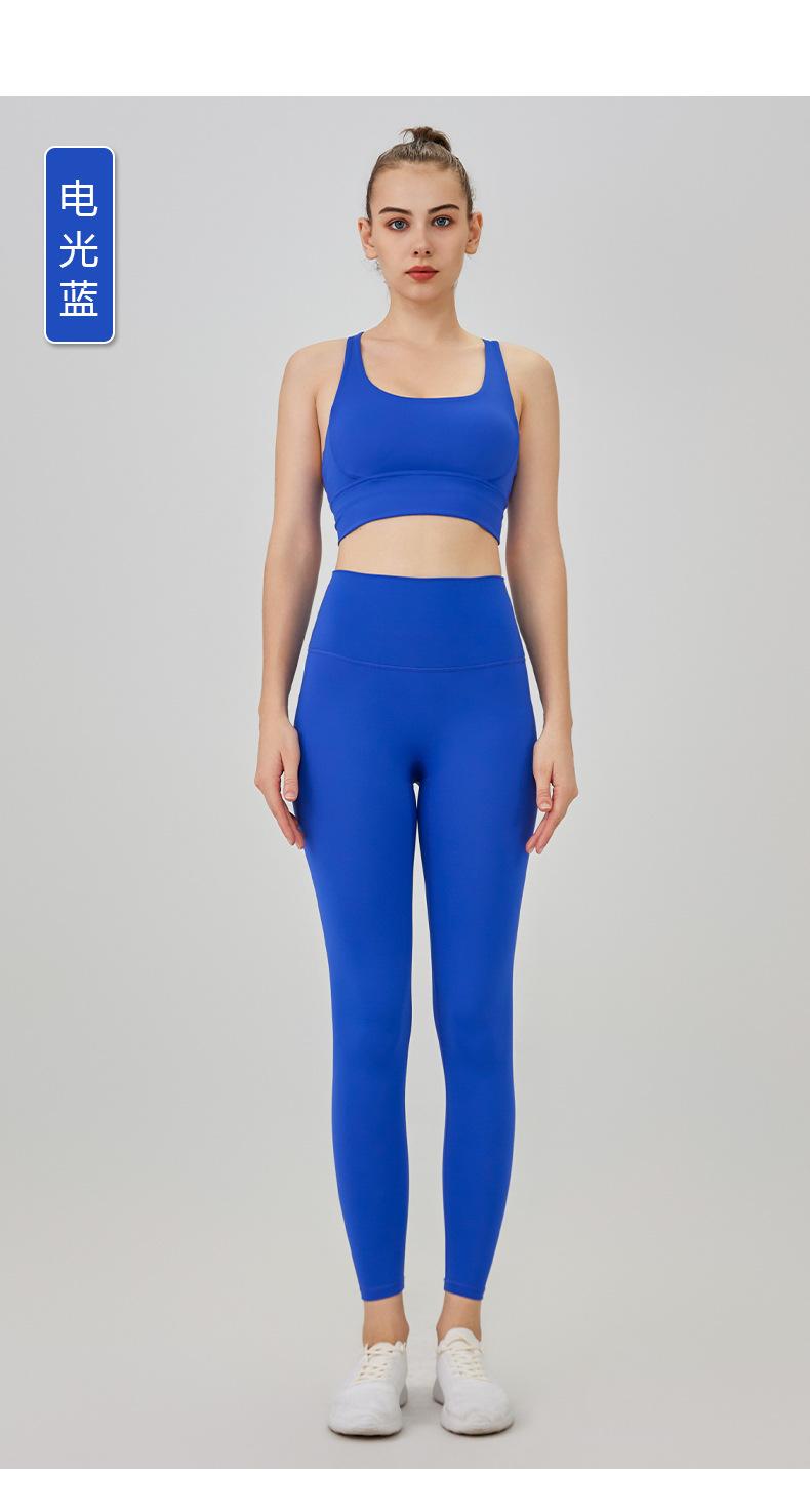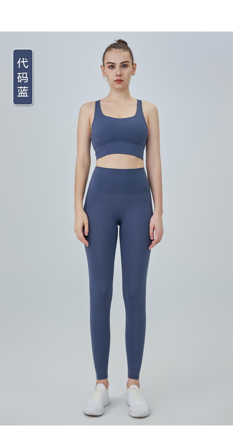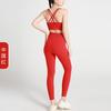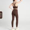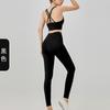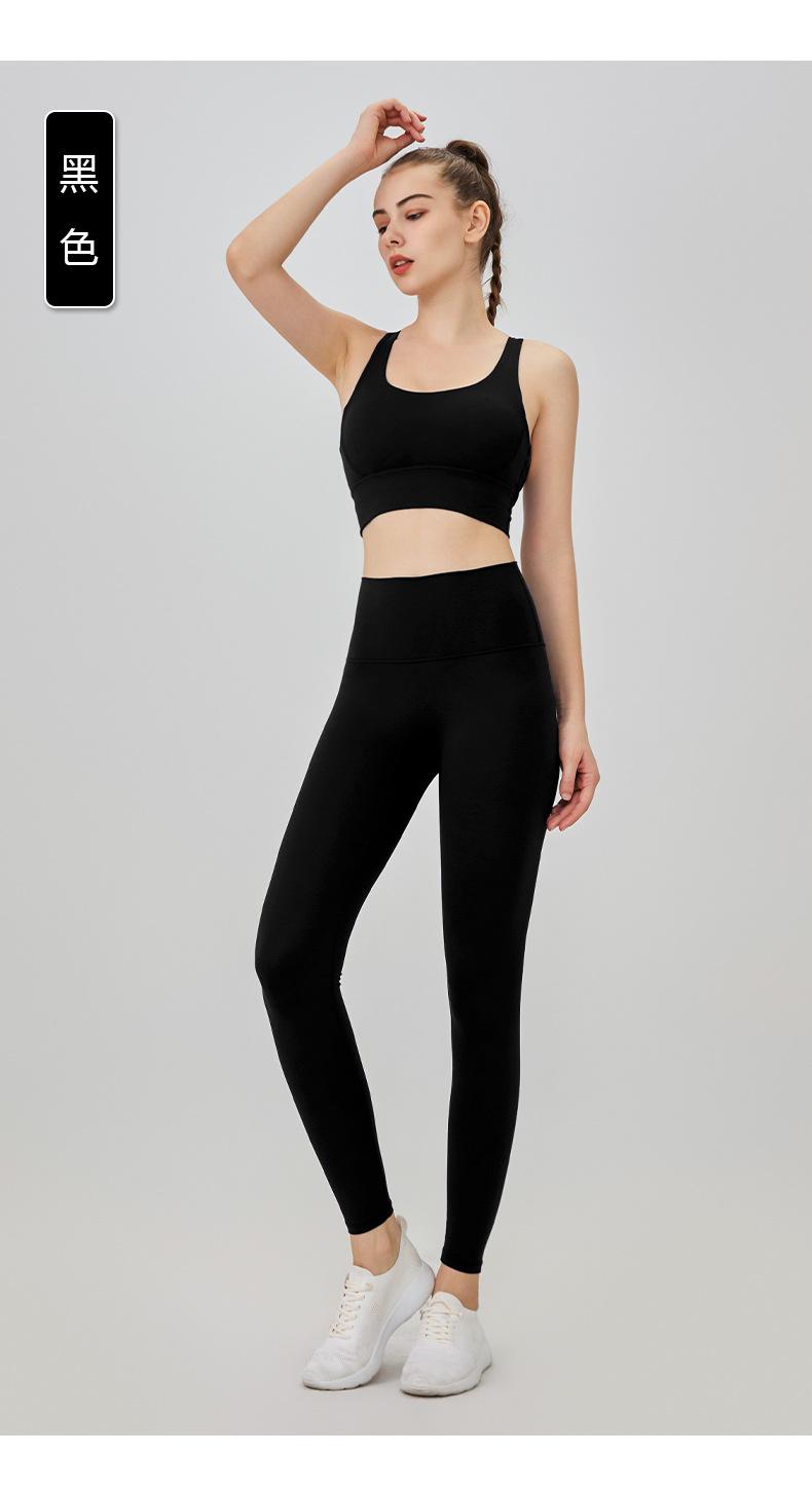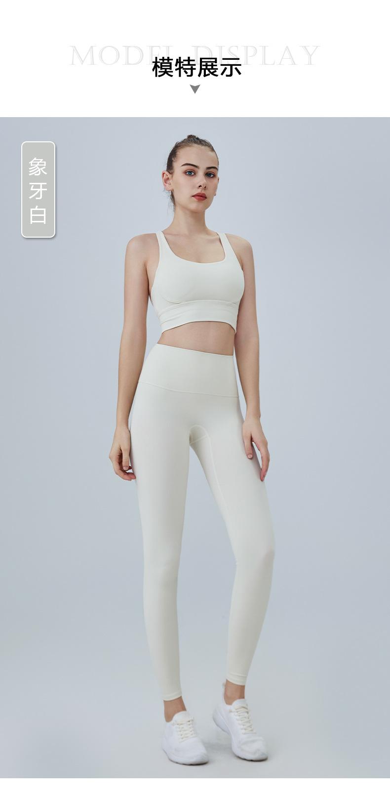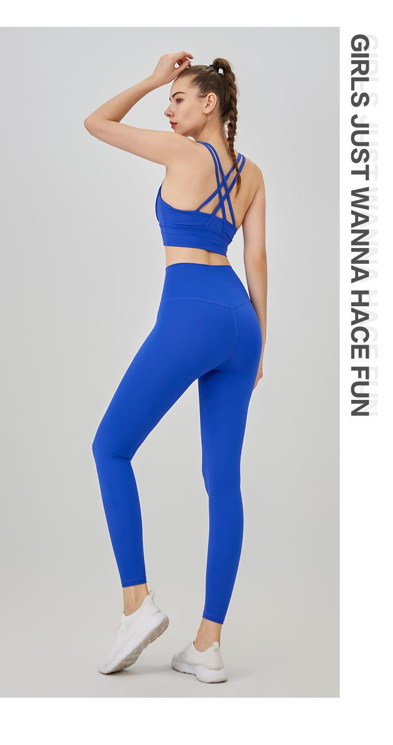 Ropa de yoga desnuda, traje deportivo, chaleco sexy con espalda cruzada, pantalones de yoga de cintura alta estilo europeo y americano color melocotón