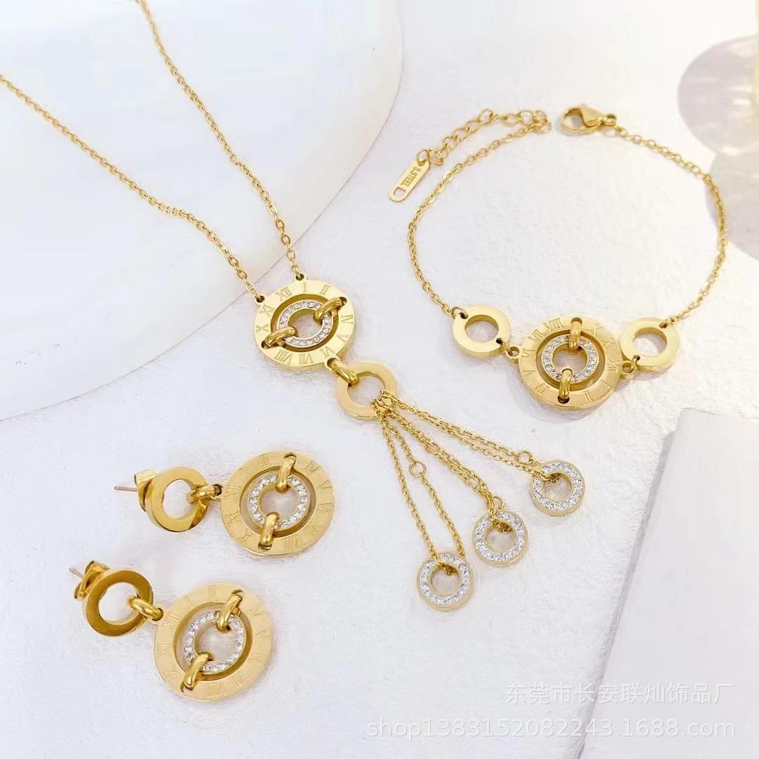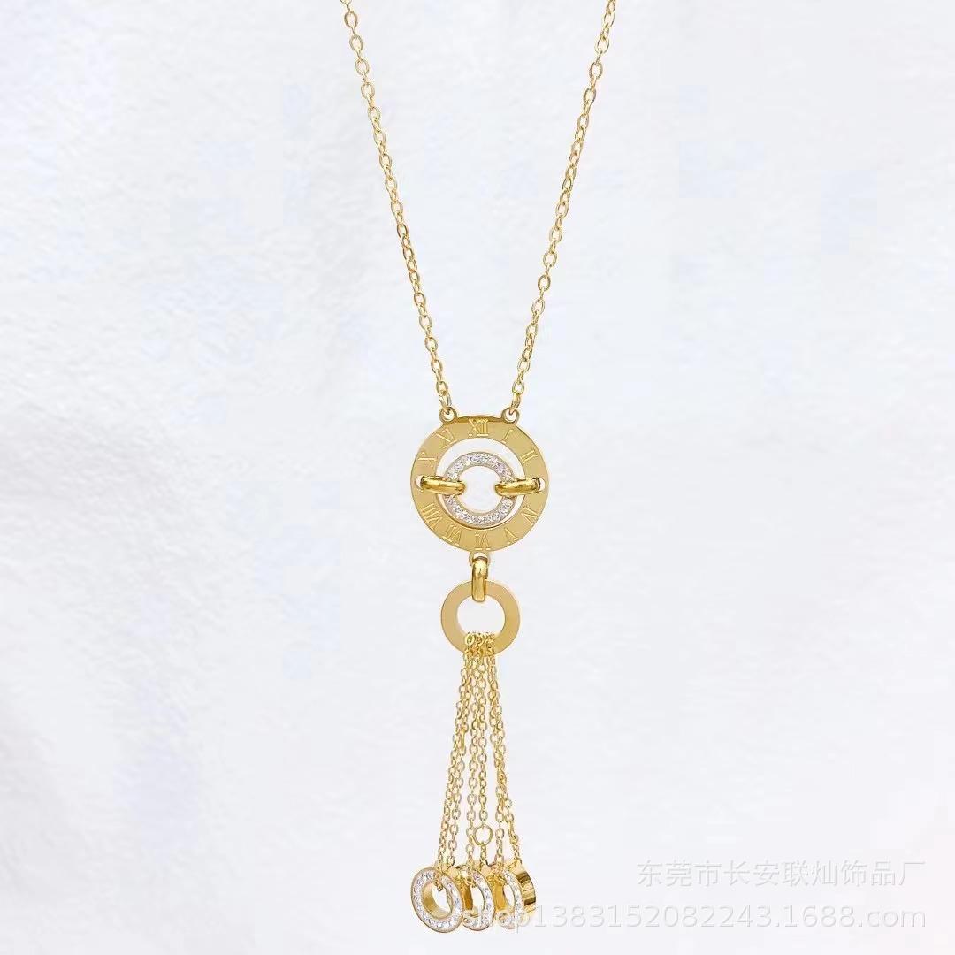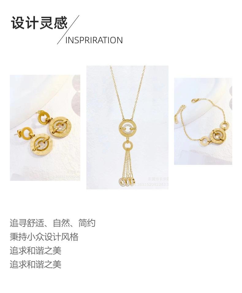 Venta al por mayor de joyas transfronterizas, collar redondo con diseño de tiempo que corre, pulsera, pendientes, moda francesa, collar ligero de lujo, colgante con borla.