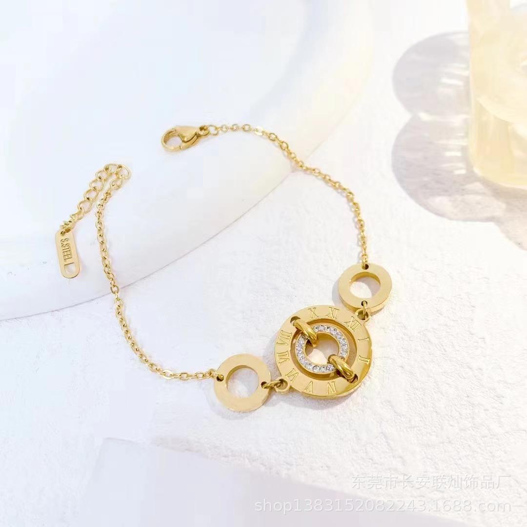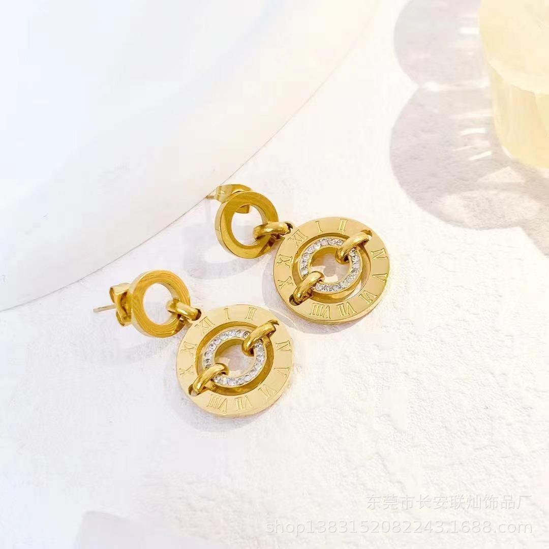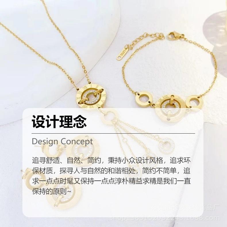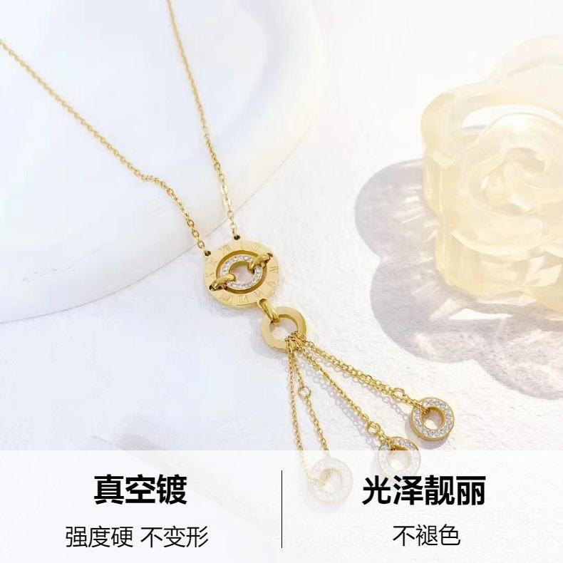 Venta al por mayor de joyas transfronterizas, collar redondo con diseño de tiempo que corre, pulsera, pendientes, moda francesa, collar ligero de lujo, colgante con borla.