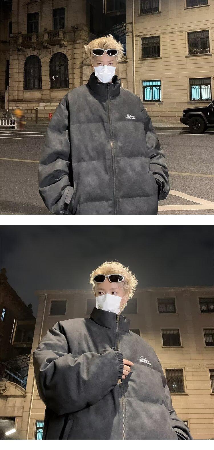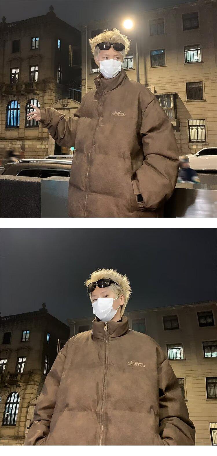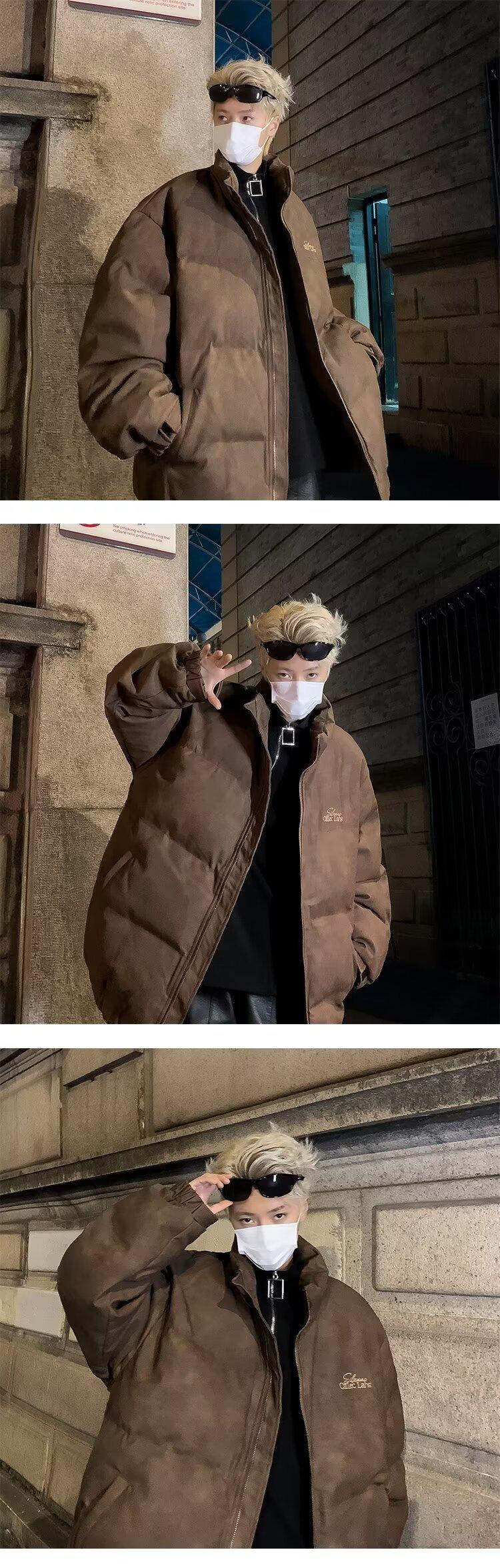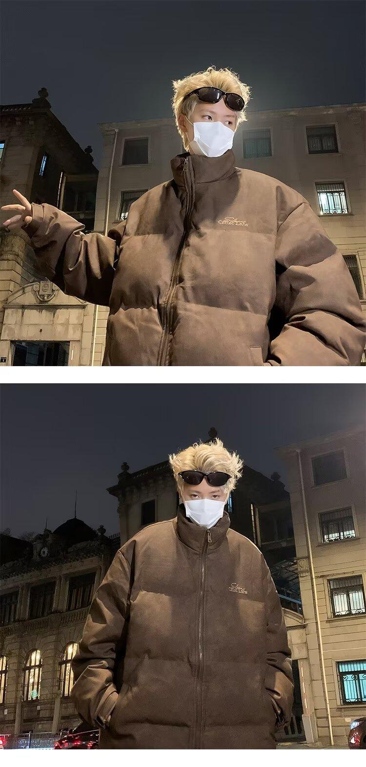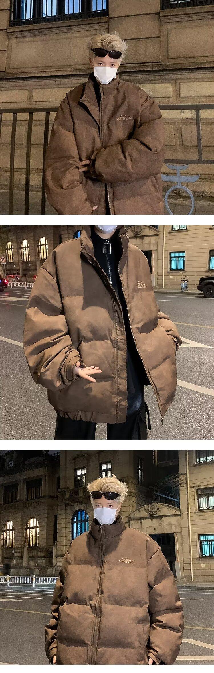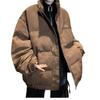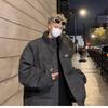 Invierno retro japonés color sólido cuello alto simple abrigo acolchado de algodón pareja casual suelto todo-fósforo abrigo acolchado de algodón grueso y cálido
