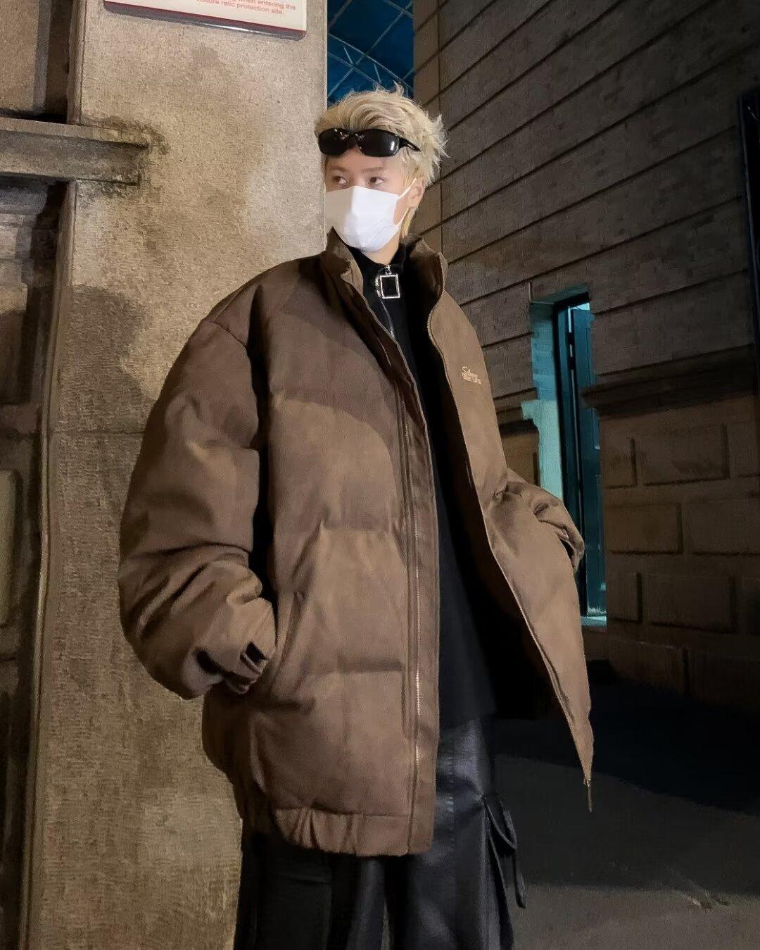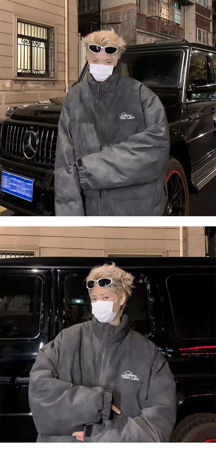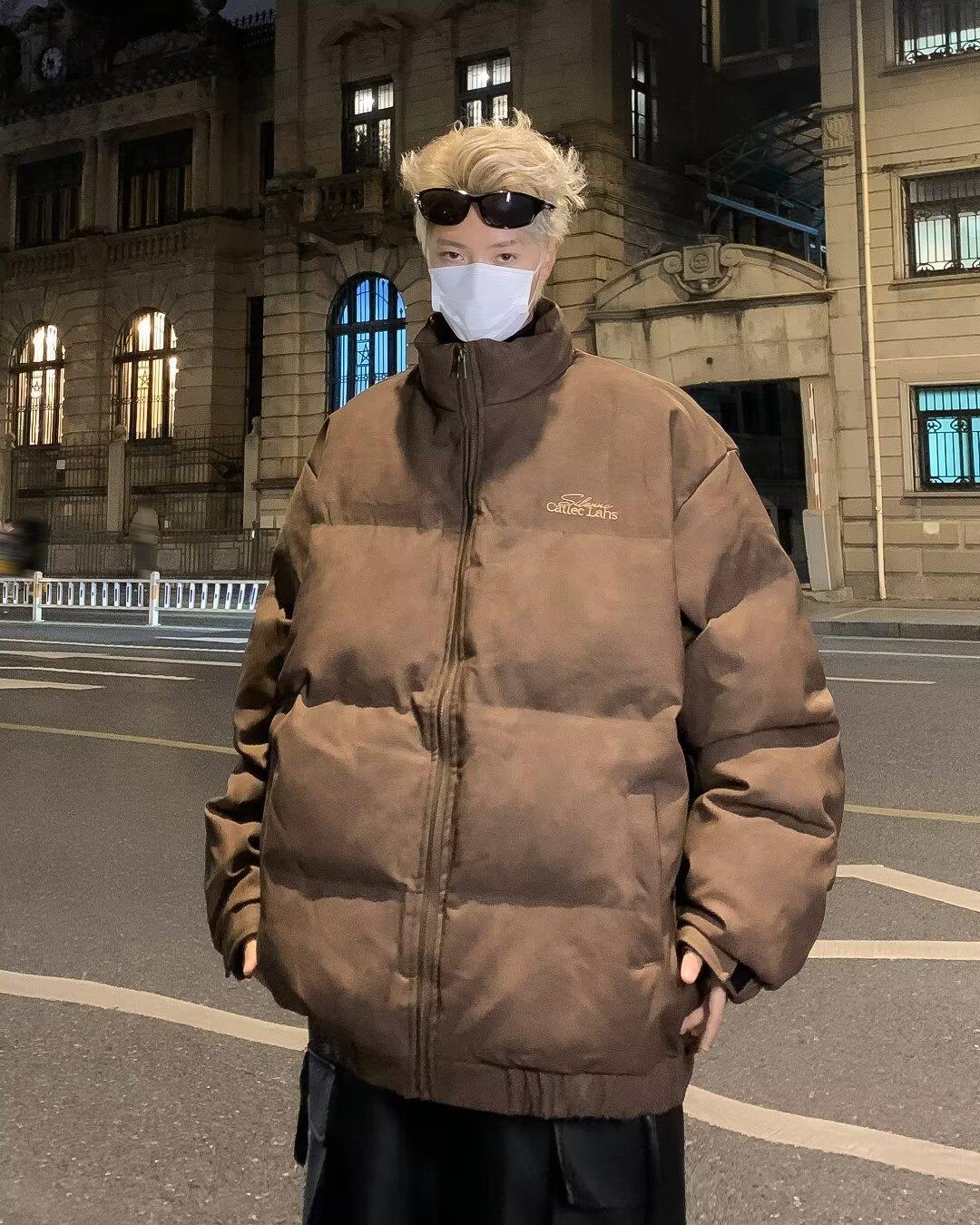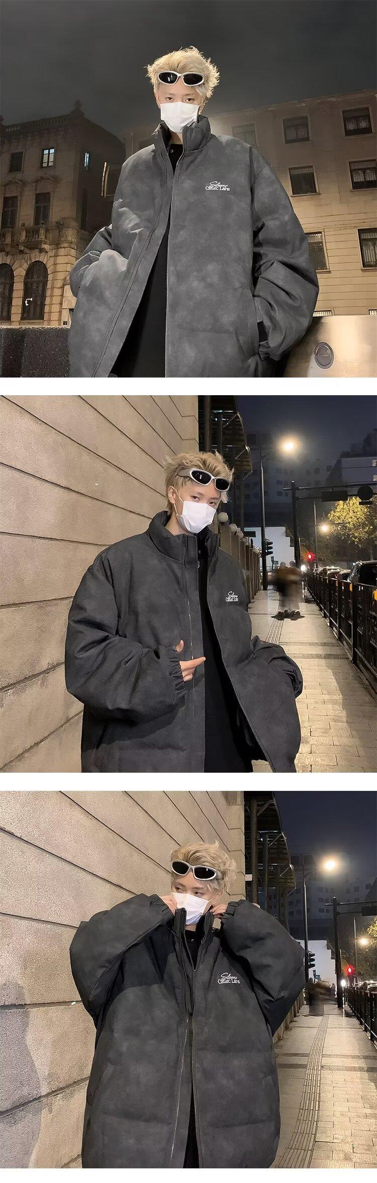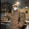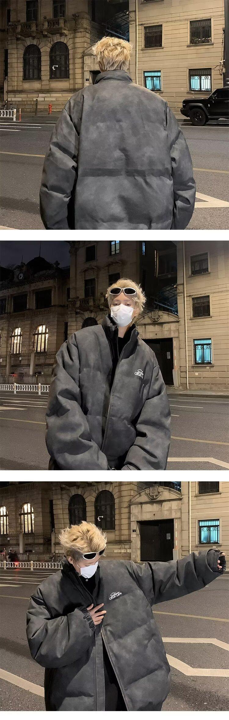 Invierno retro japonés color sólido cuello alto simple abrigo acolchado de algodón pareja casual suelto todo-fósforo abrigo acolchado de algodón grueso y cálido