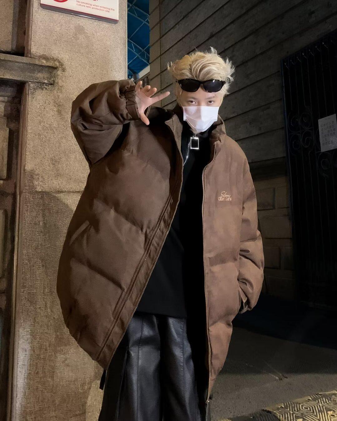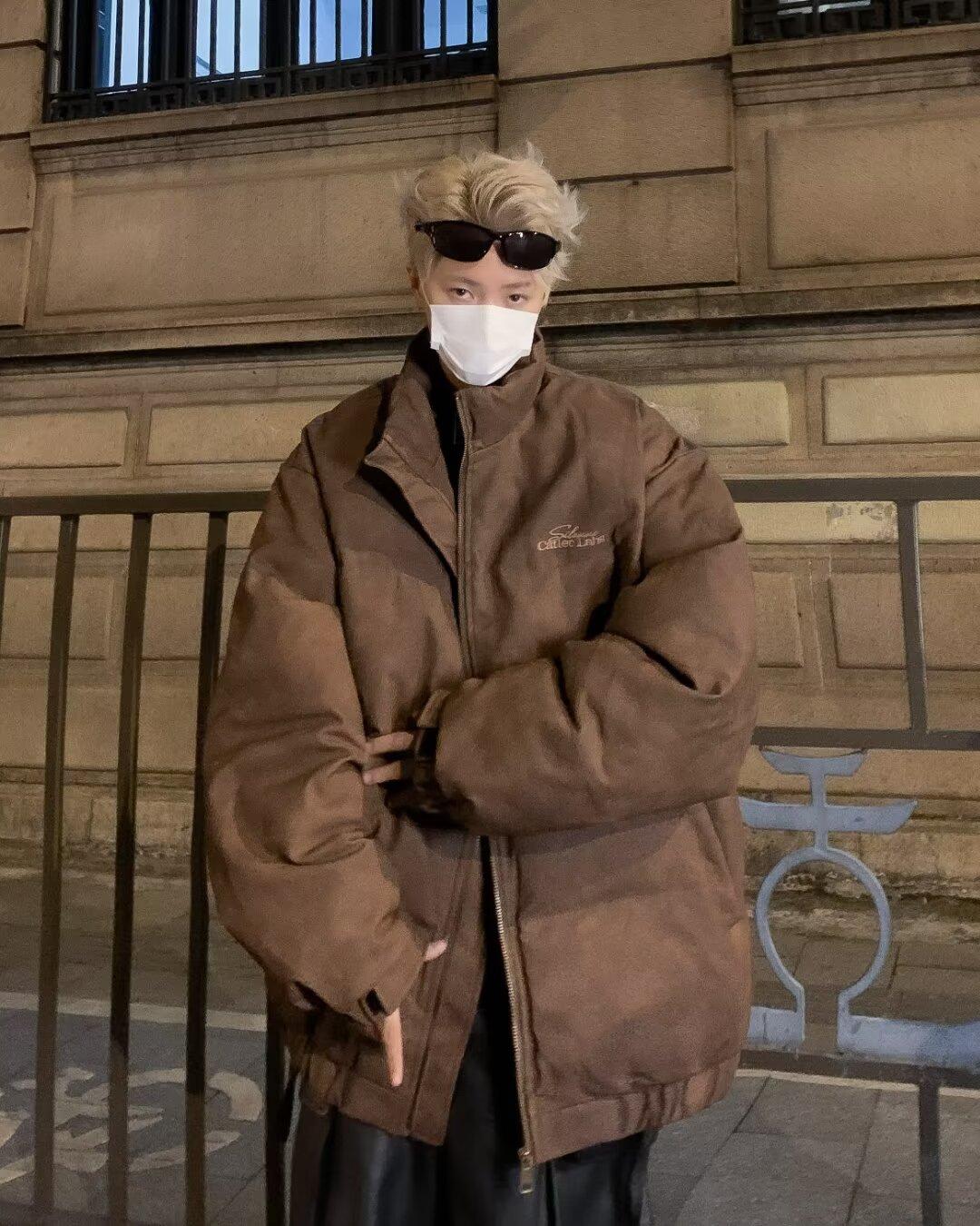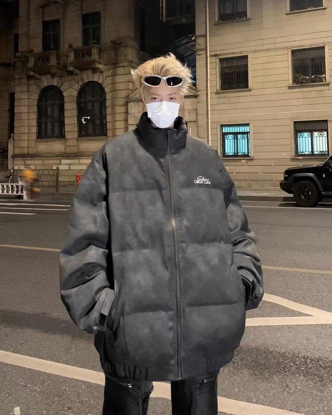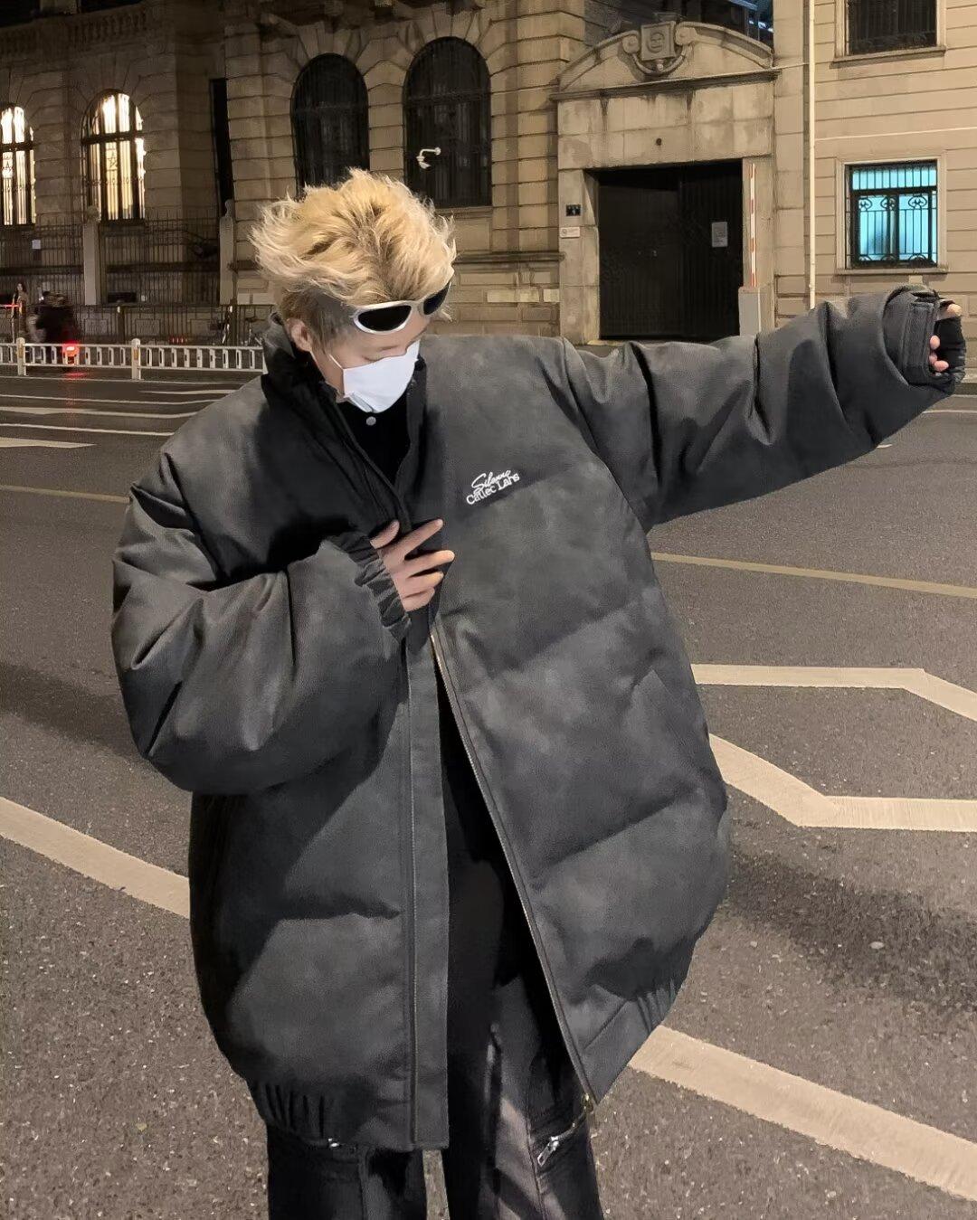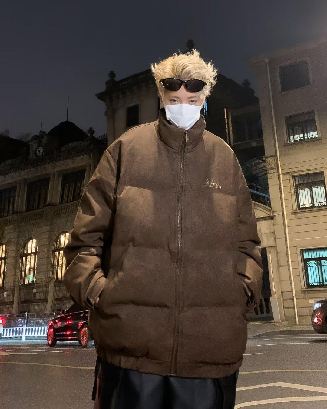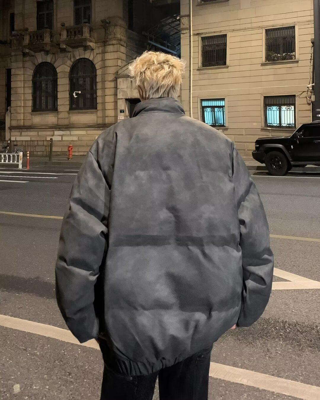 Invierno retro japonés color sólido cuello alto simple abrigo acolchado de algodón pareja casual suelto todo-fósforo abrigo acolchado de algodón grueso y cálido