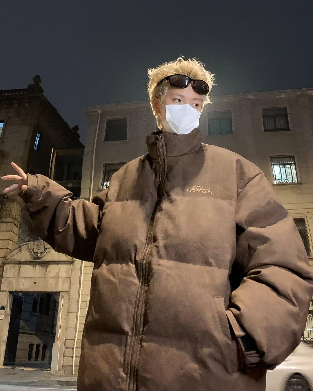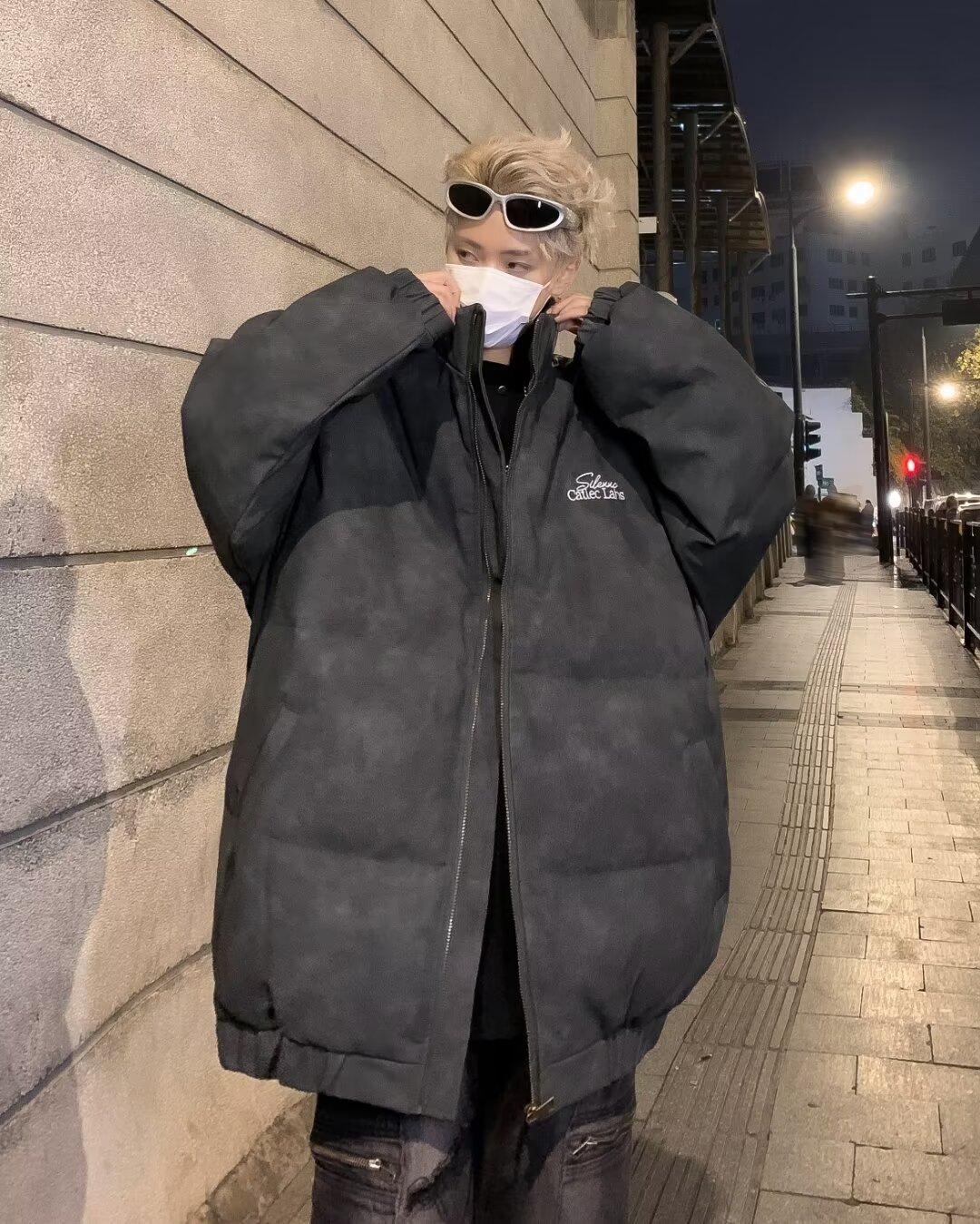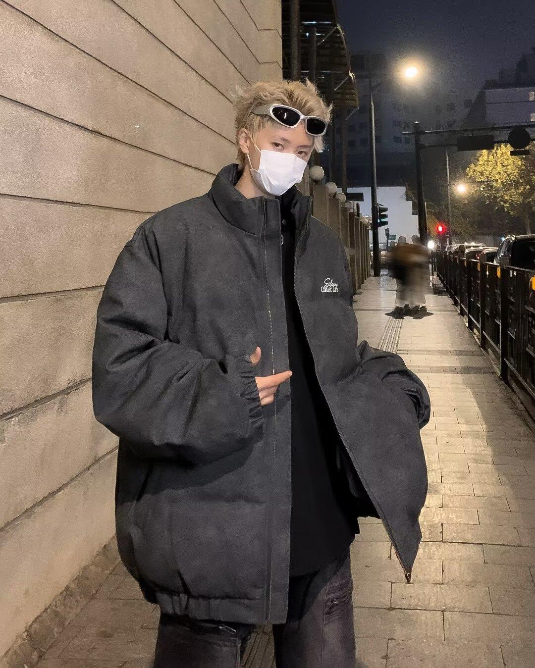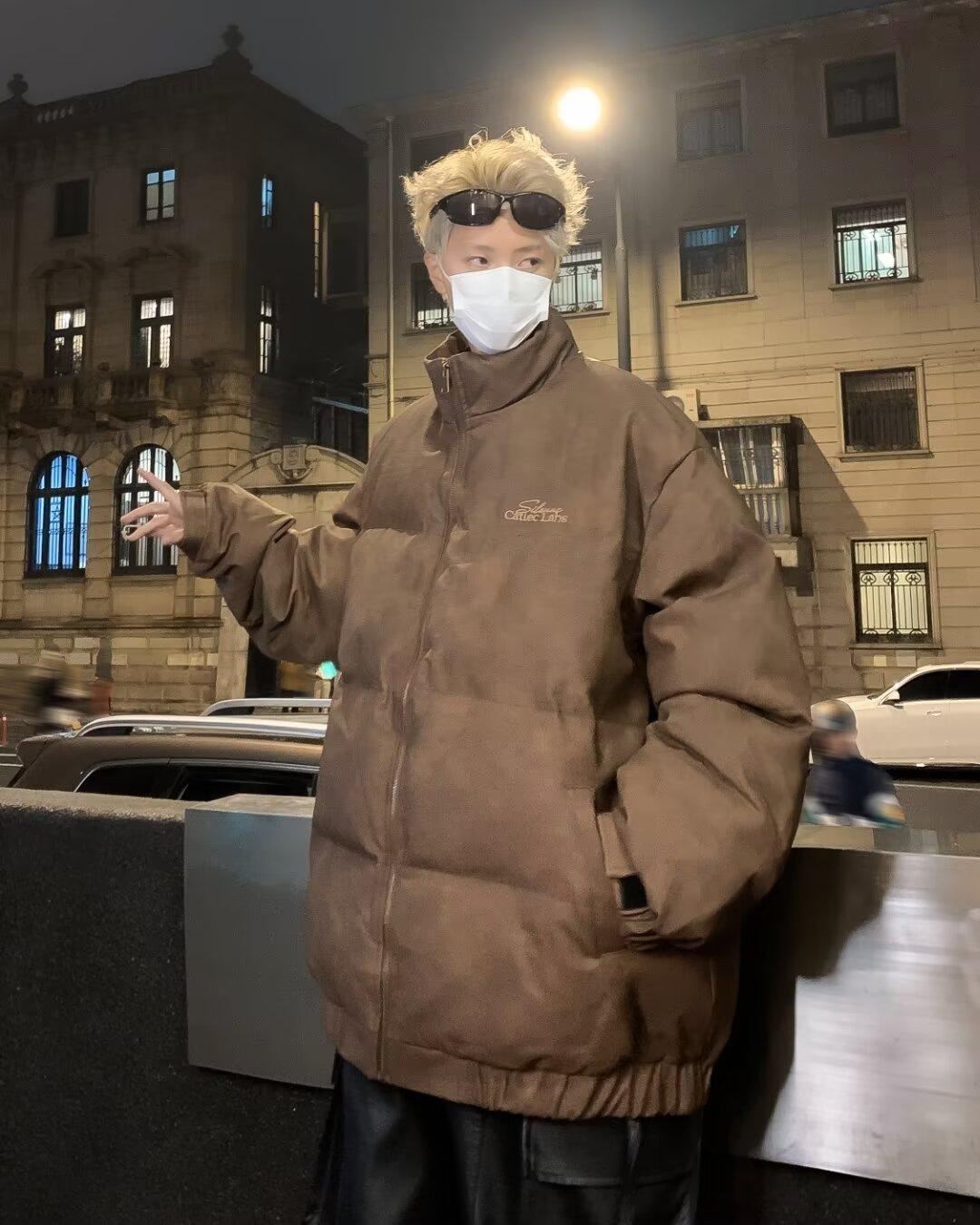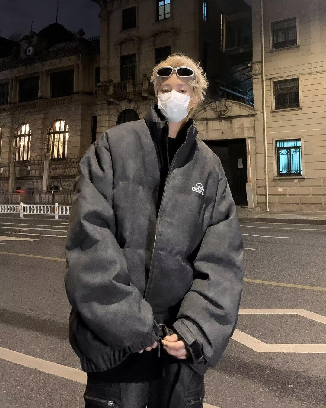 Invierno retro japonés color sólido cuello alto simple abrigo acolchado de algodón pareja casual suelto todo-fósforo abrigo acolchado de algodón grueso y cálido