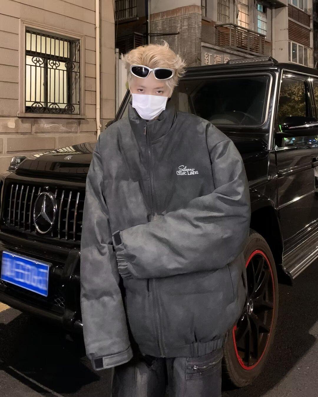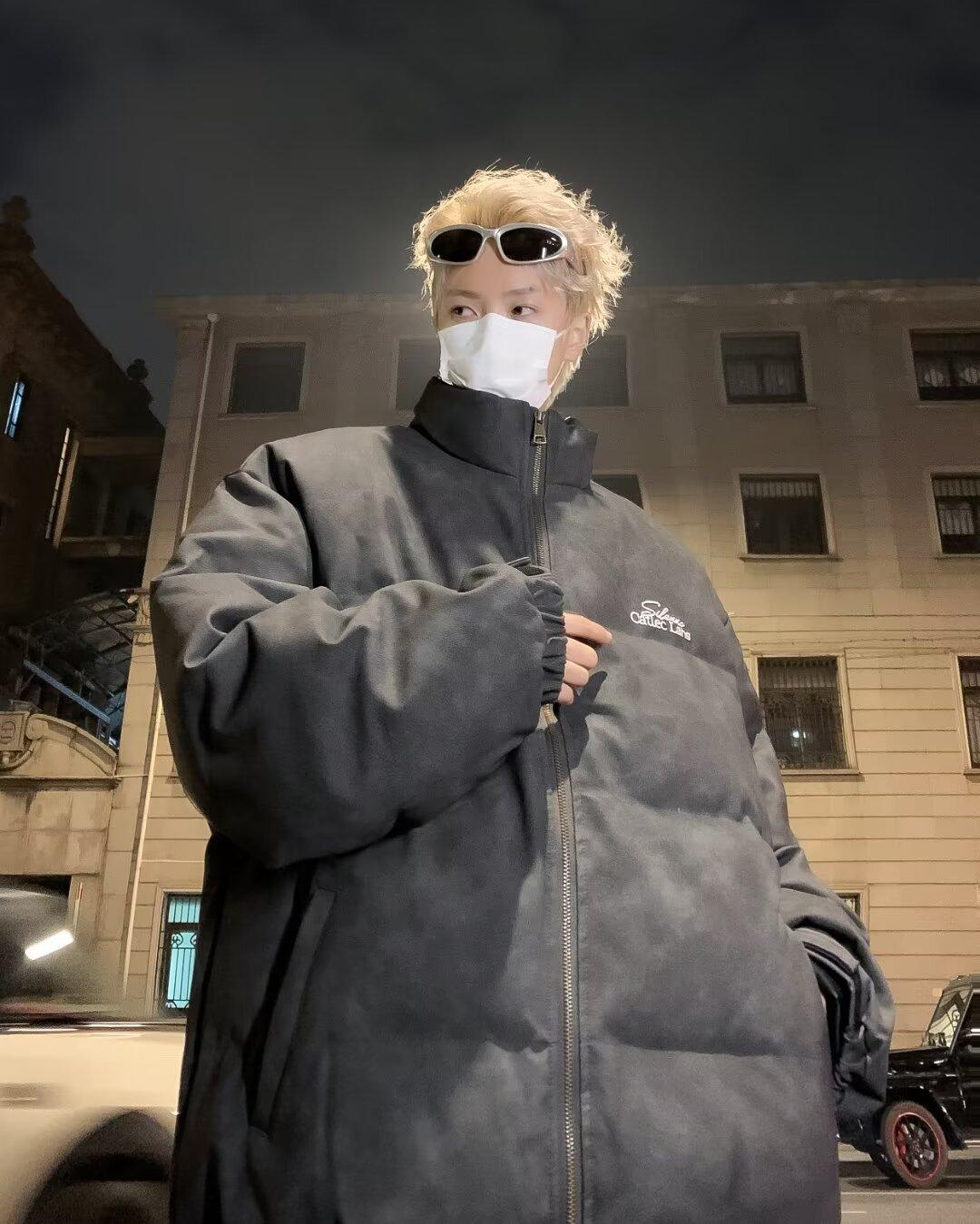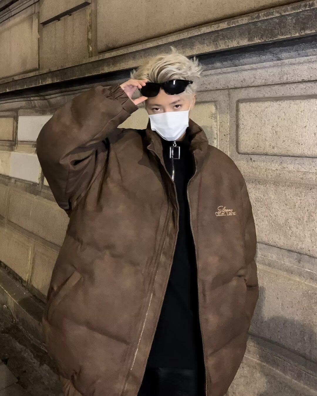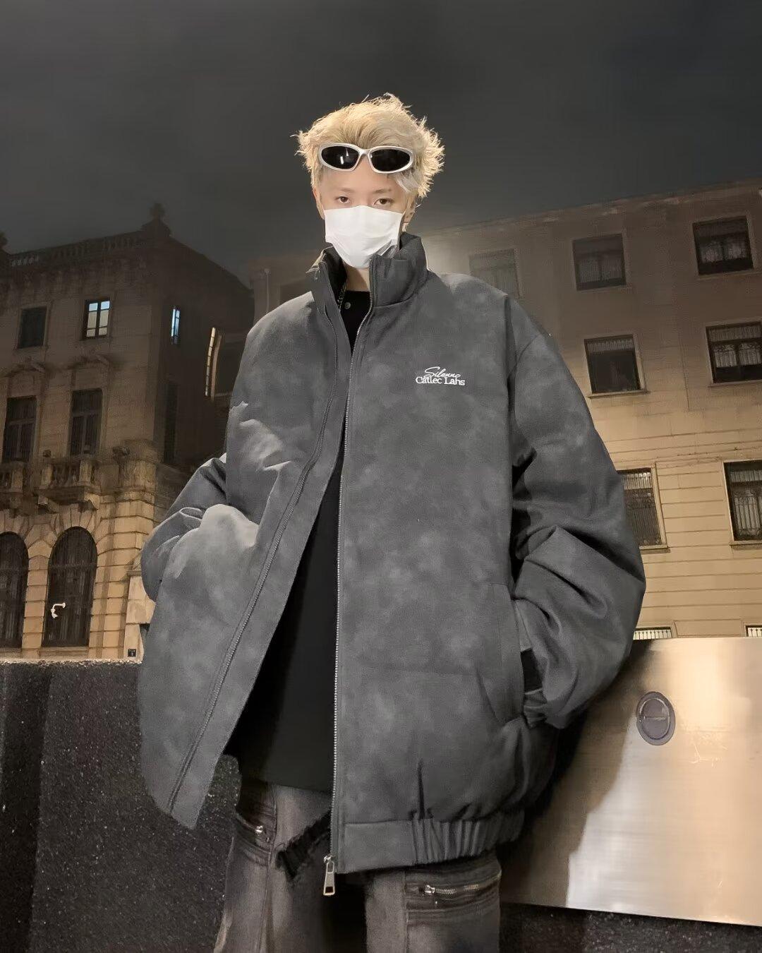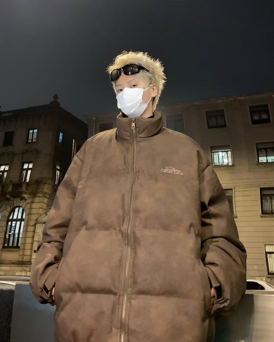Invierno retro japonés color sólido cuello alto simple abrigo acolchado de algodón pareja casual suelto todo-fósforo abrigo acolchado de algodón grueso y cálido