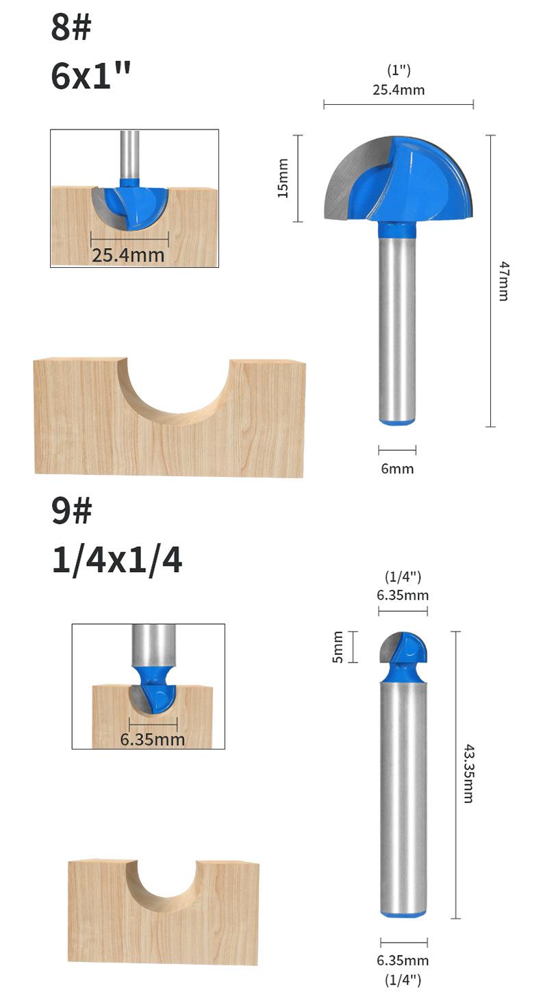 Herramienta para Ranurar Cuchillo de Fondo Redondo Azul Cabezal de Máquina de Recorte Cuchillo de Relieve Semicircular para Carpintería Fresa para Carpintería