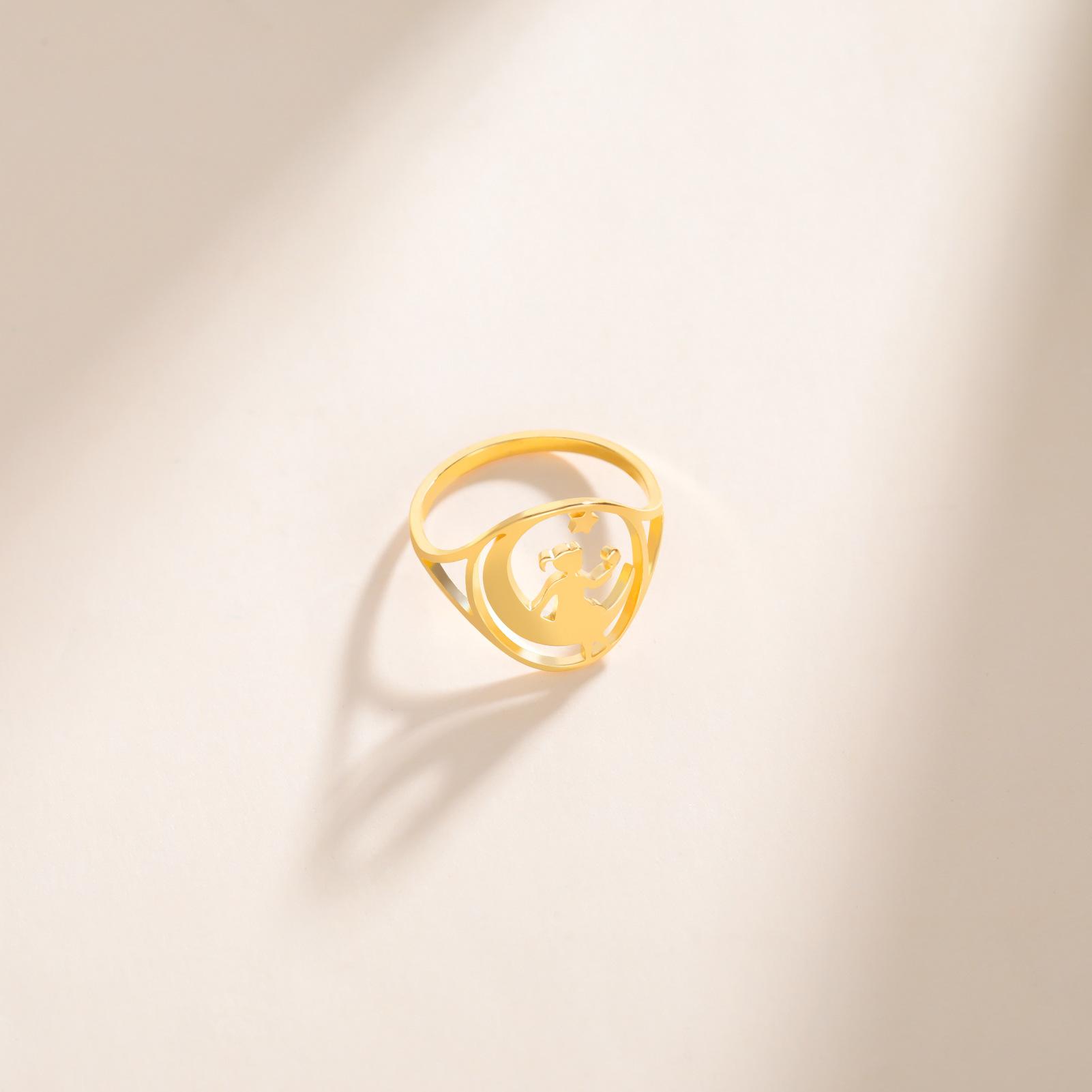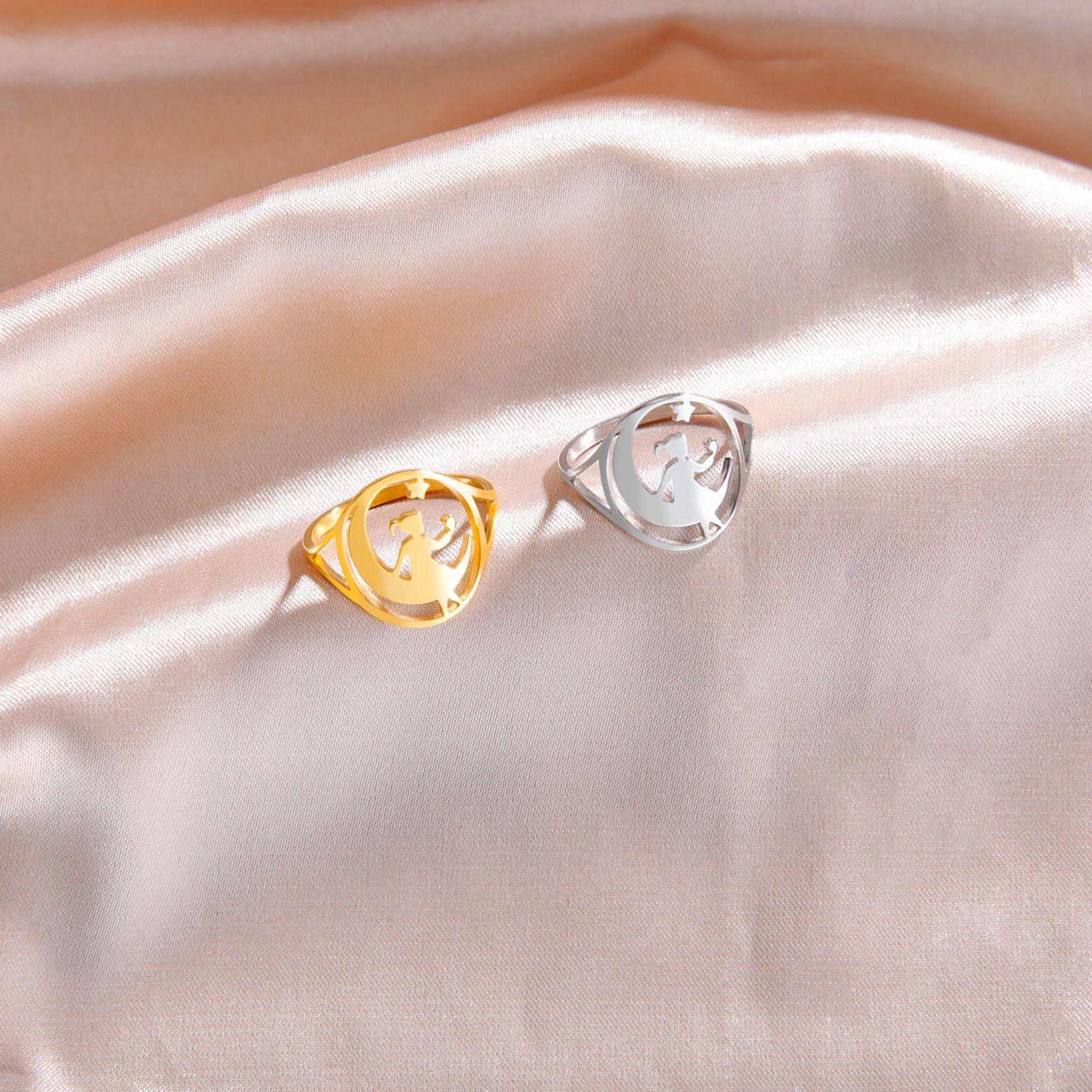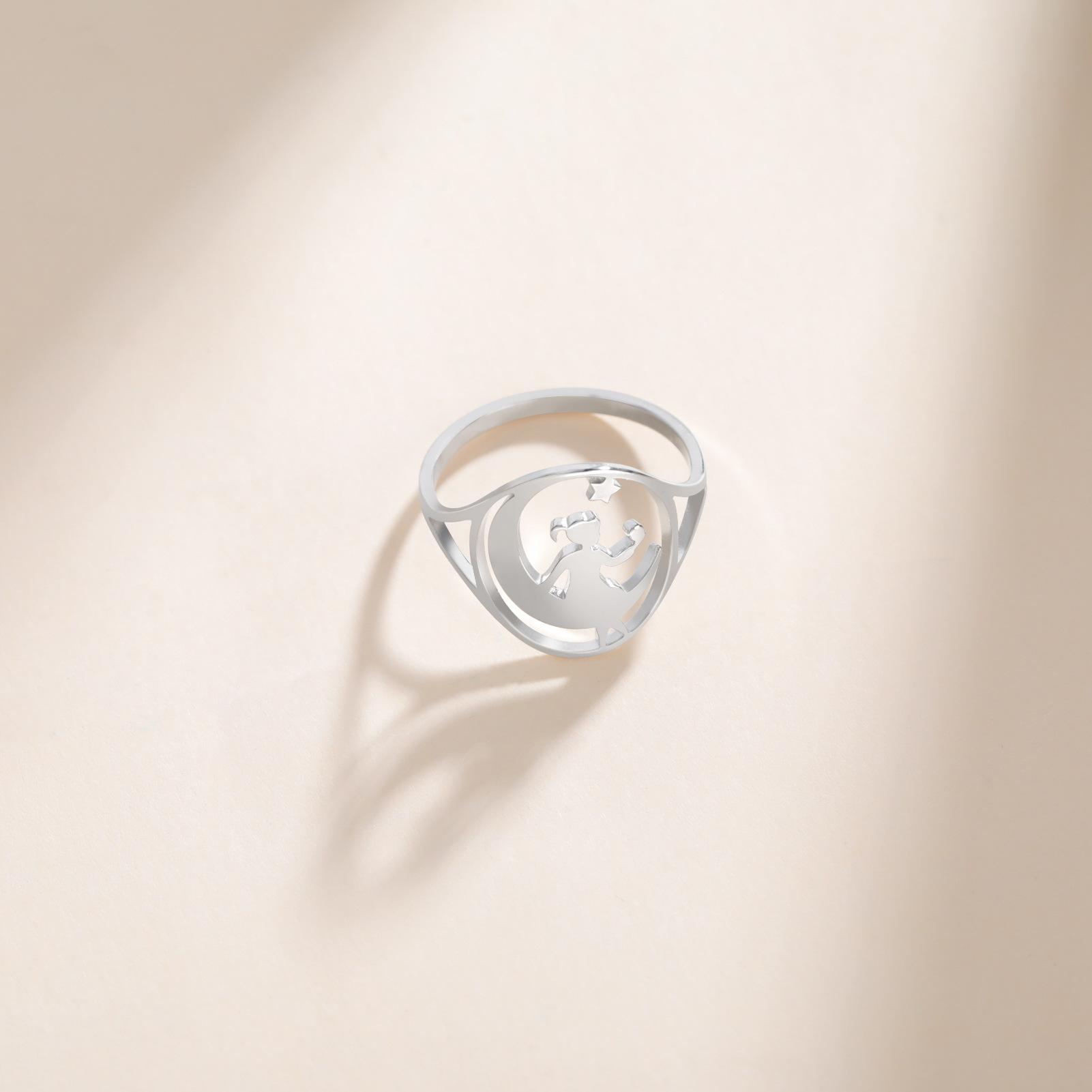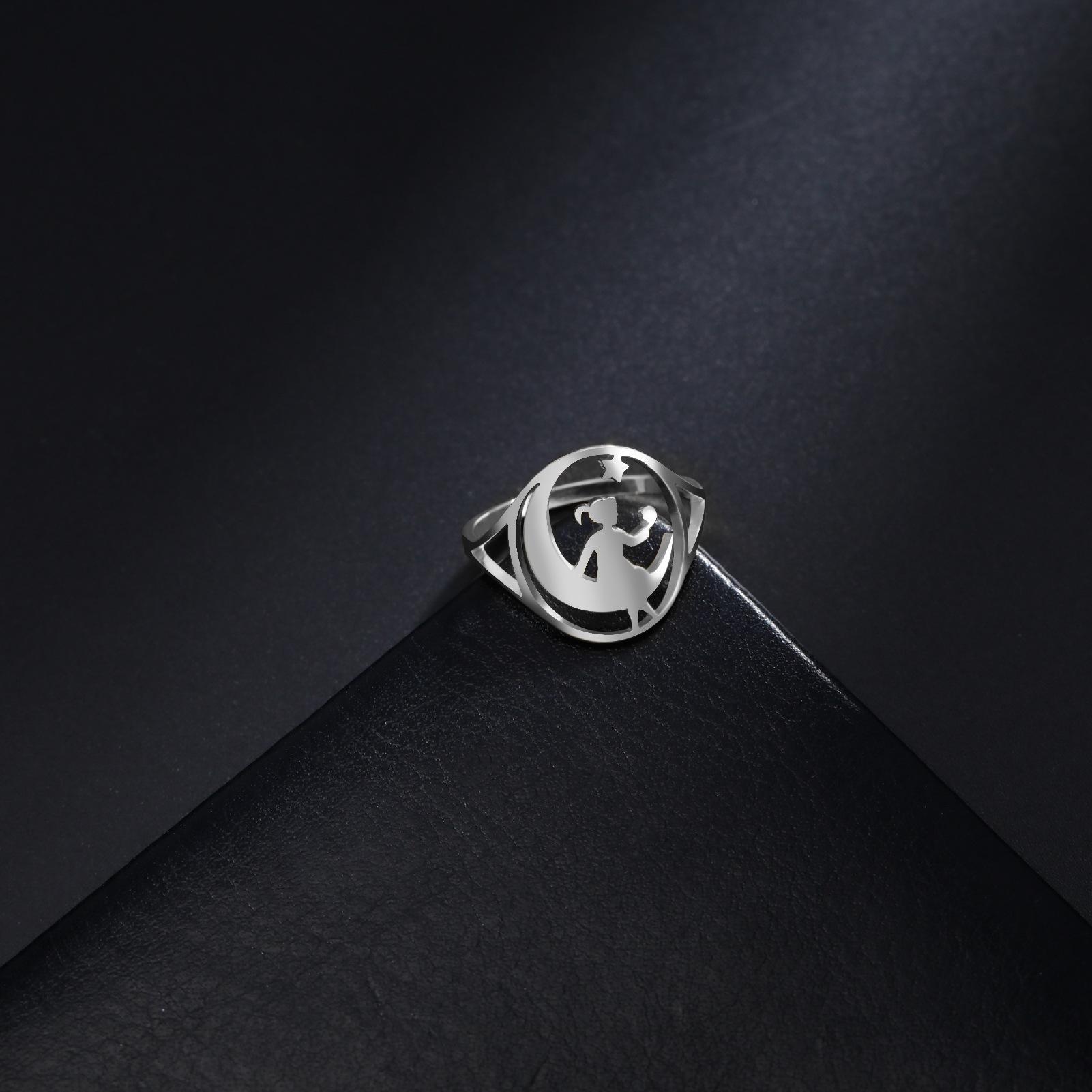 Anillo de acero de titanio cortado de venta caliente transfronteriza de comercio exterior anillo de niña en la luna moda europea y americana anillo de acero inoxidable