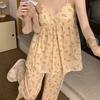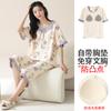 [Algodón Puro] Pijama de Mujer Verano Fresco Dulce Manga Corta Pantalón Capri con Almohadilla en el Pecho Traje Ropa de Casa Se Puede Usar