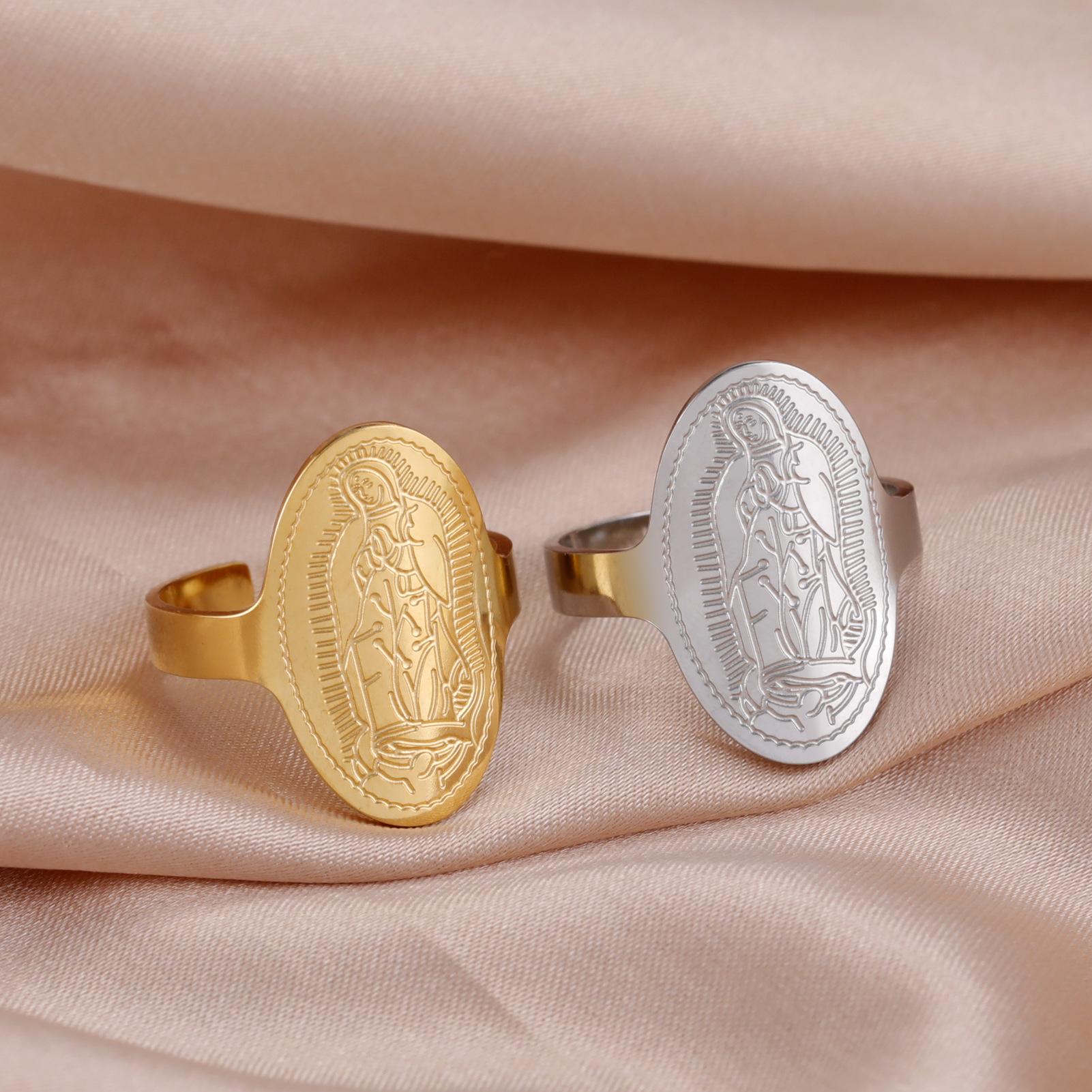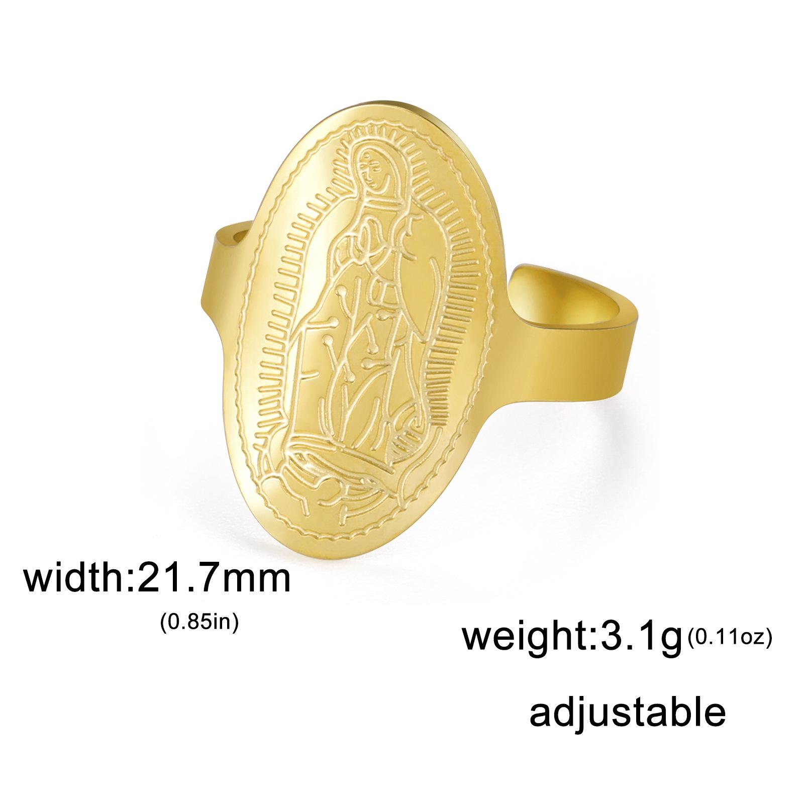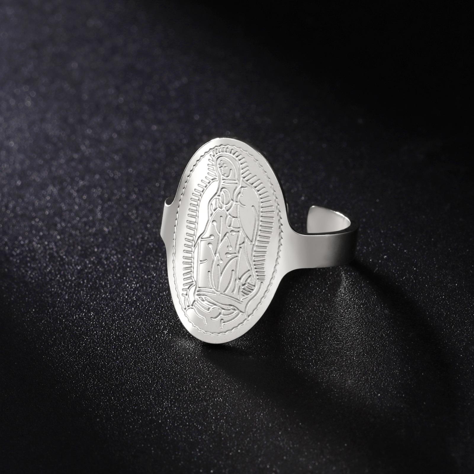 Anillo Corte Virgen María Transfronterizo Anillo Abierto de Acero Titanio para Mujer Moda Estilo Retro Anillo de Acero Inoxidable
