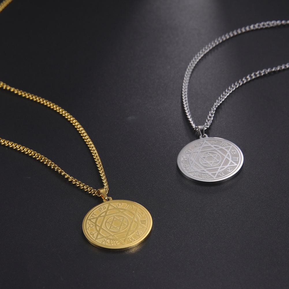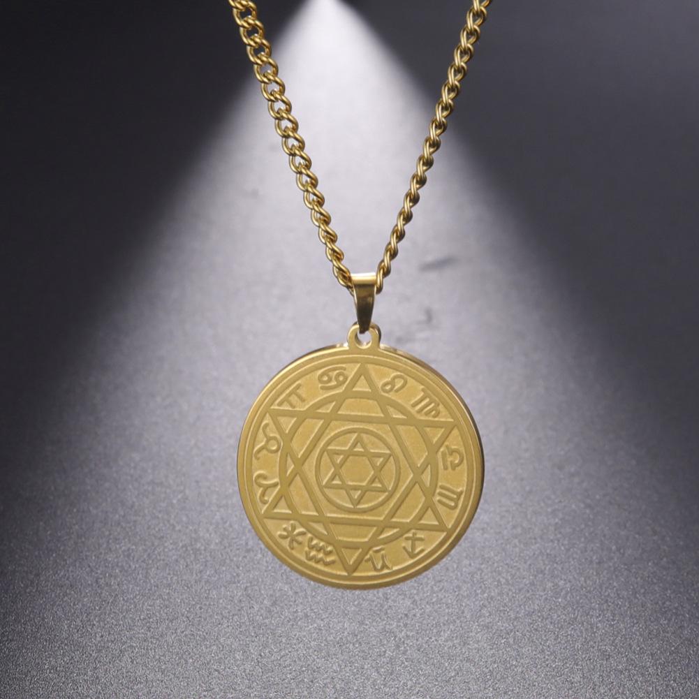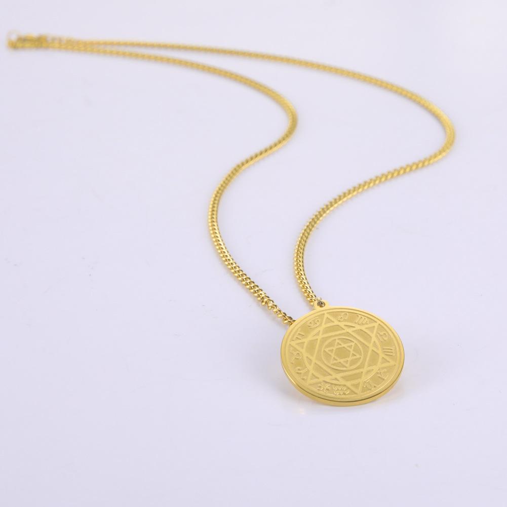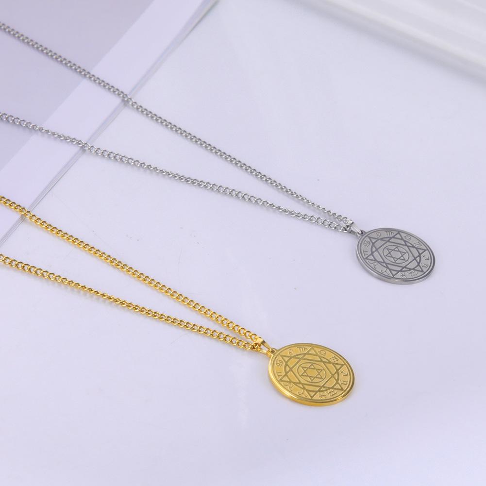 Collar de Acero Inoxidable Dorado con Colgante Redondo de Estrella de Seis Puntas Versátil Personalizado para Hombre y Mujer Más Vendido Transfronterizo Europeo y Americano