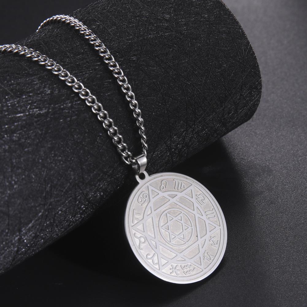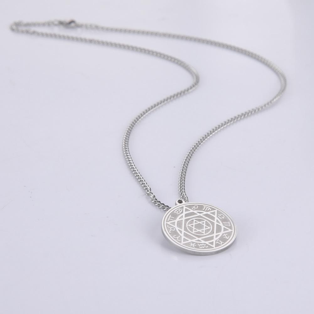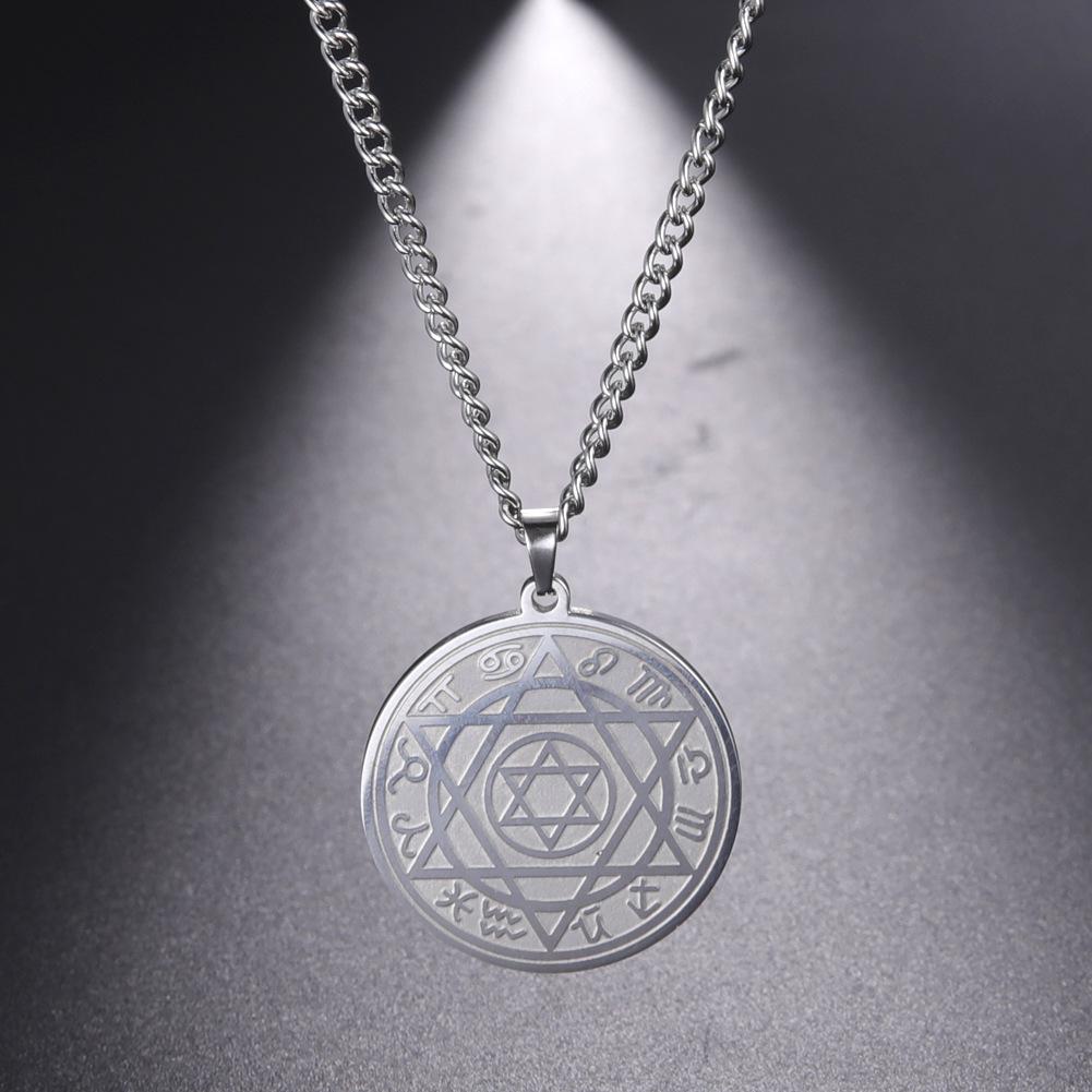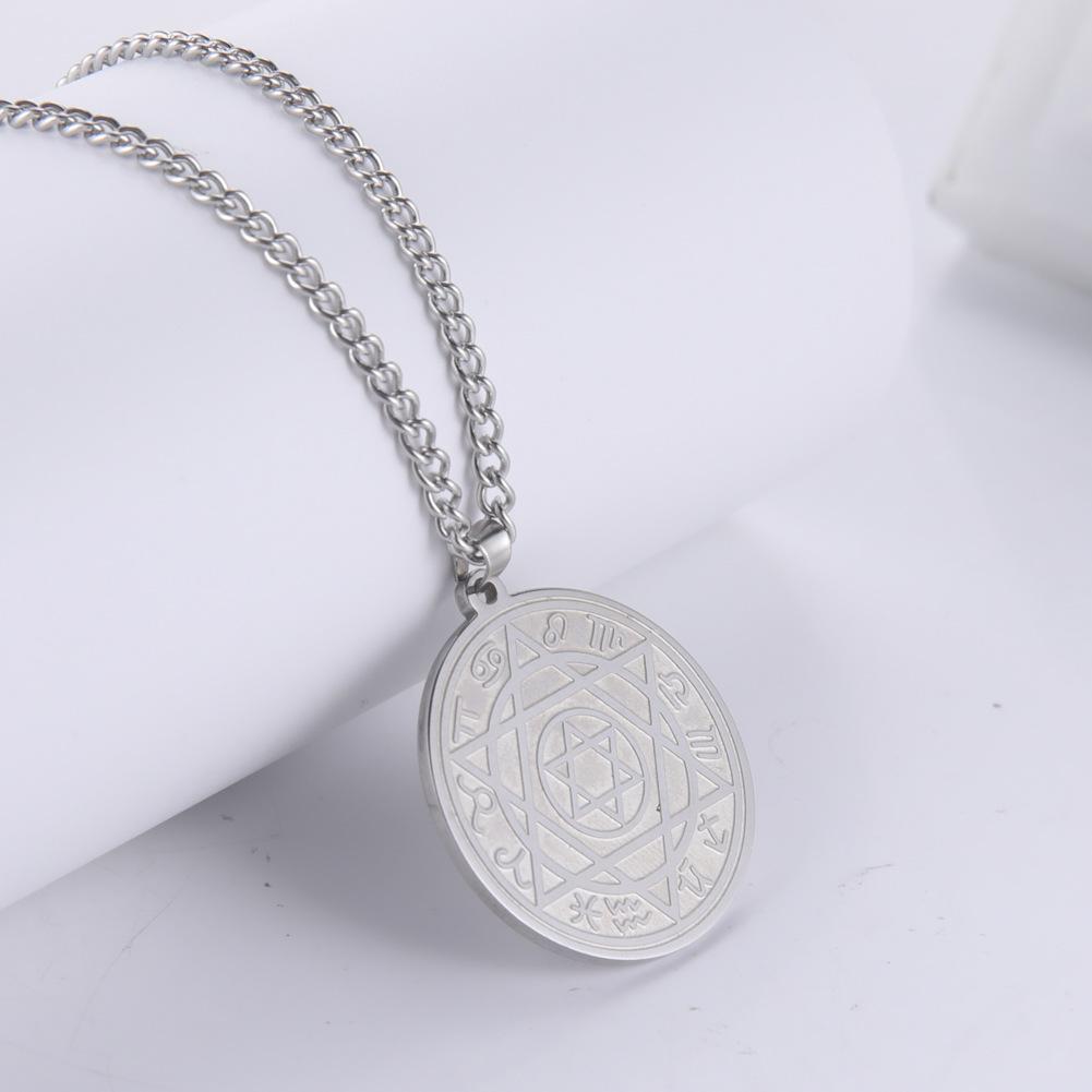 Collar de Acero Inoxidable Dorado con Colgante Redondo de Estrella de Seis Puntas Versátil Personalizado para Hombre y Mujer Más Vendido Transfronterizo Europeo y Americano