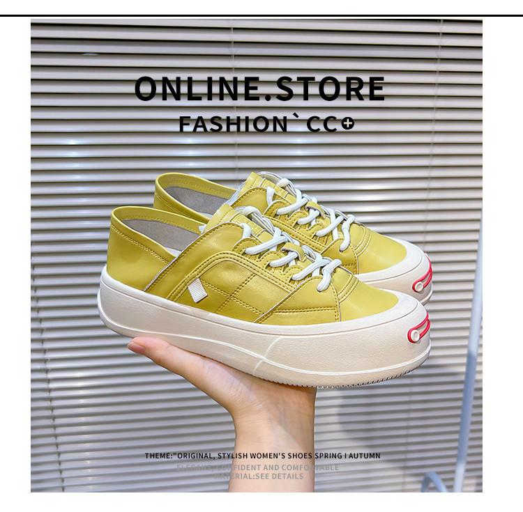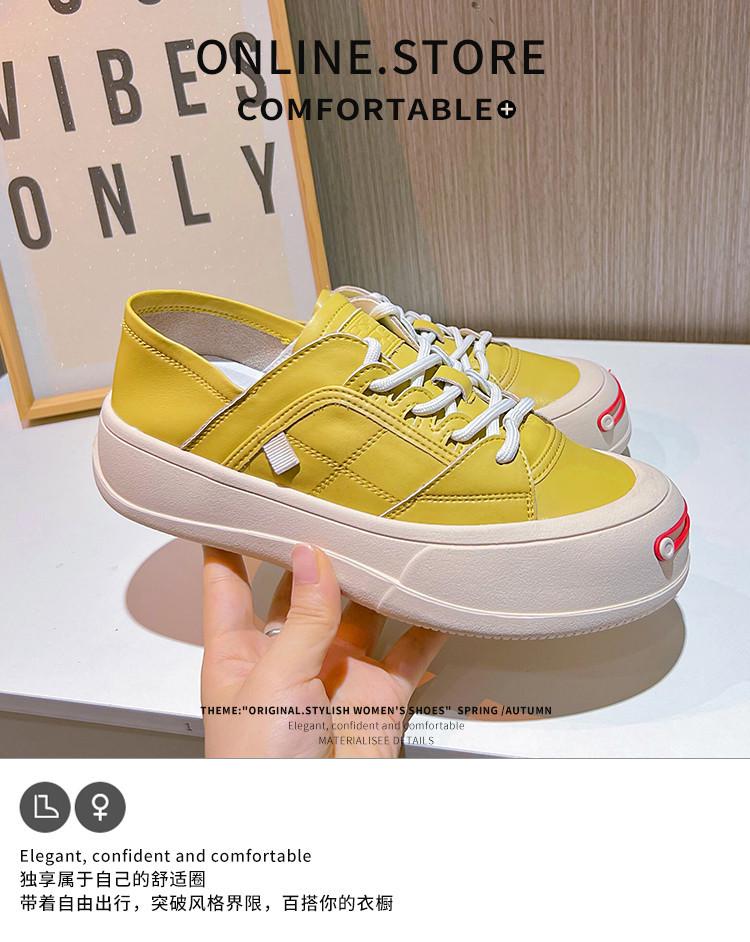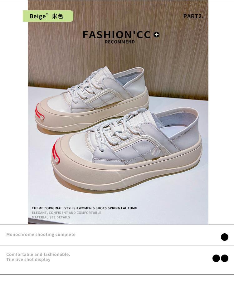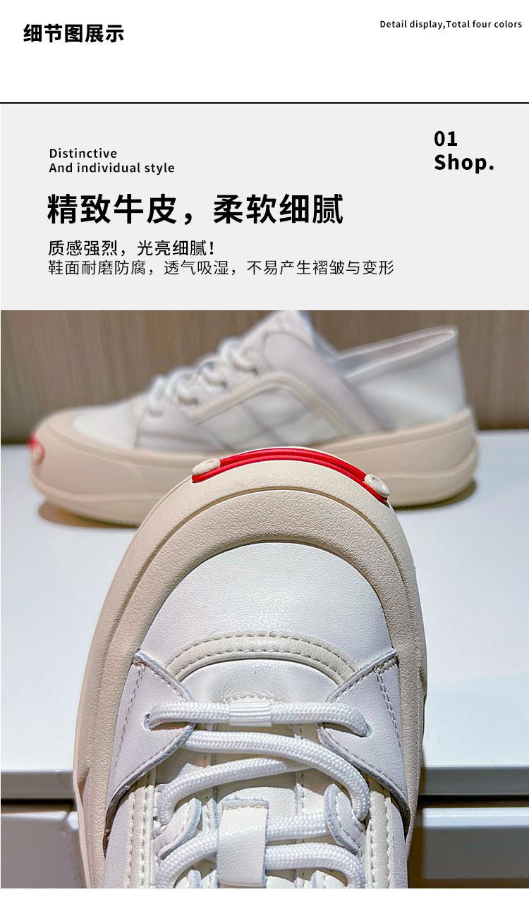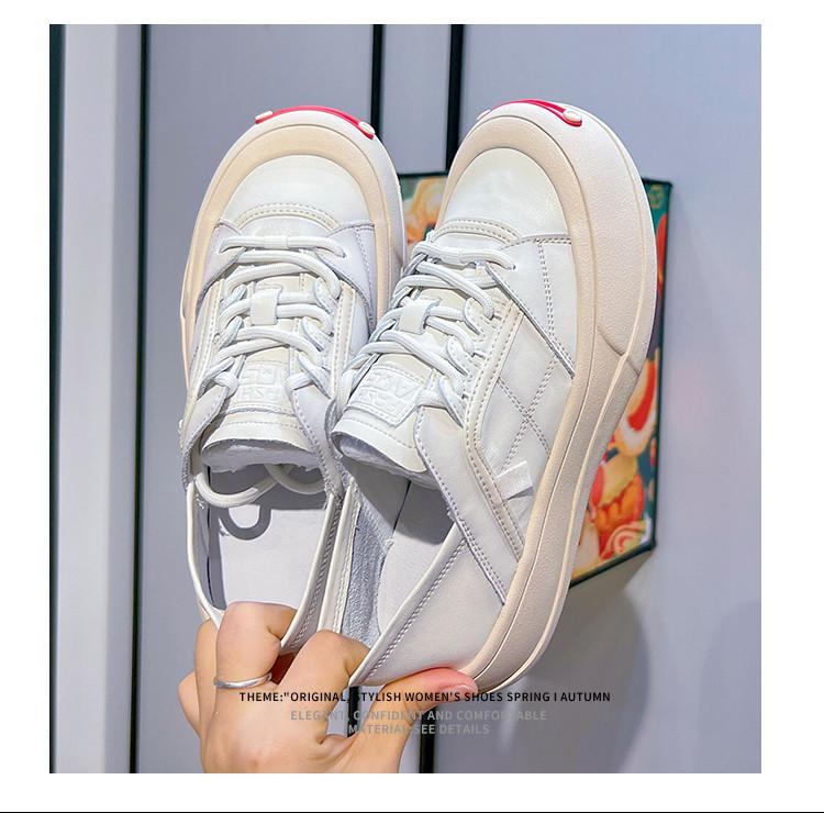 Tenis de Suela Gruesa Open Smile 2025 Primavera Zapatos Nuevos Versátiles Casuales de Doble Uso Zapatos Blancos para Mujer Zapatos de Cuero Genuino para Mujer