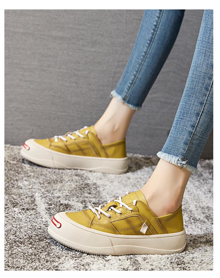 Zapatos Deportivos Alemanes de Cuero Genuino para Mujer 2025 Otoño Zapatos de Mujer Versátiles Zapatillas Planas Cómodos Zapatos Individuales con Lazo