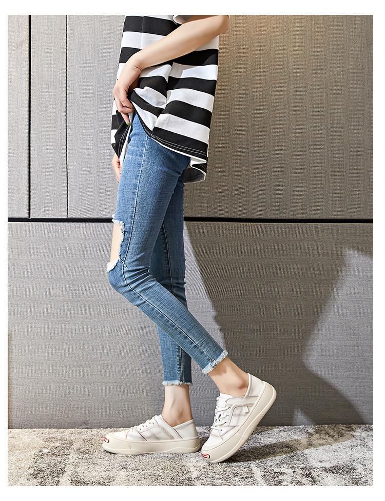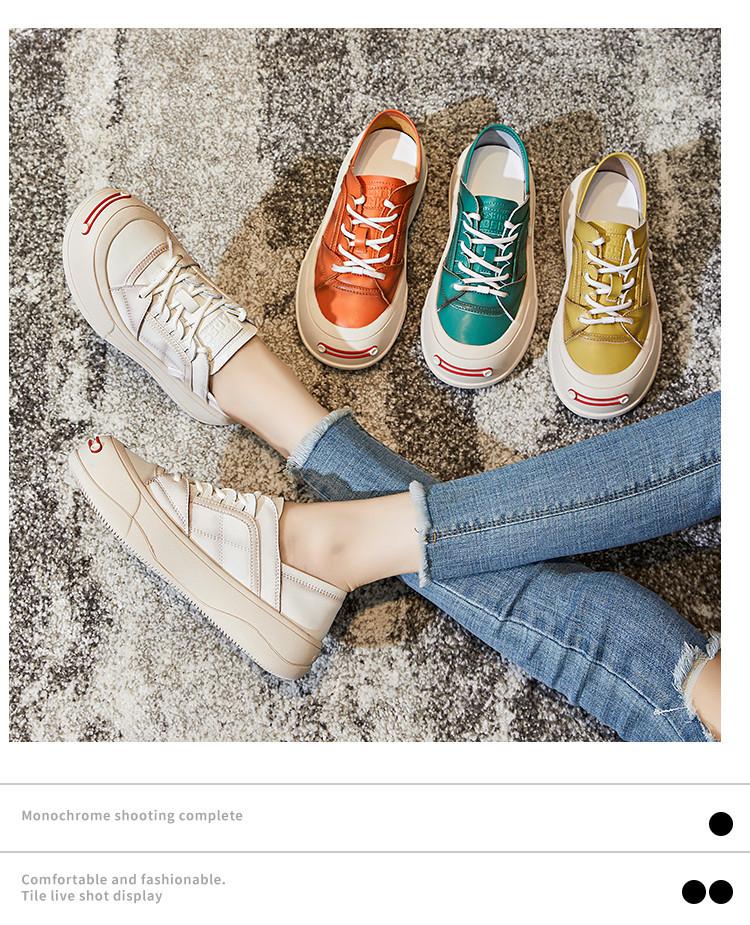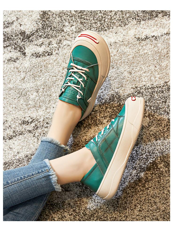 Zapatos Deportivos Versátiles de Cuero Genuino para Mujer con Tacón Oculto de 4.5 cm Otoño 2025 Nuevos Zapatos Casuales Estilo Forrest Gump
