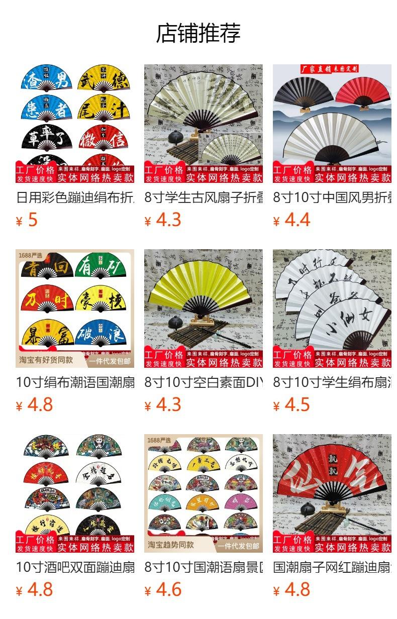 Abanico plegable de práctica de caligrafía para estudiantes de tela de seda lisa en blanco de 8 pulgadas 10 pulgadas para pintar a mano DIY inscripción venta al por mayor