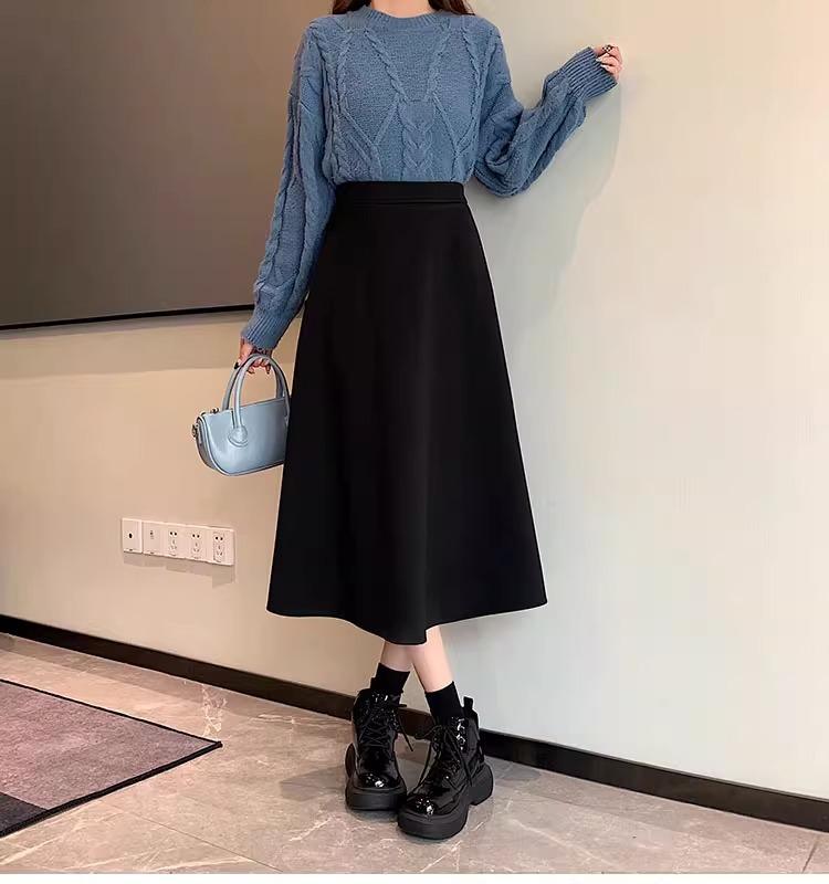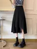Falda de traje de longitud media con drapeado y gran paraguas para mujer, verano 2024, nueva falda negra adelgazante de cintura alta retro