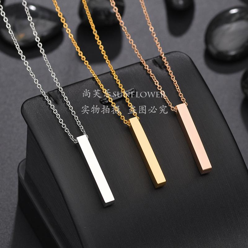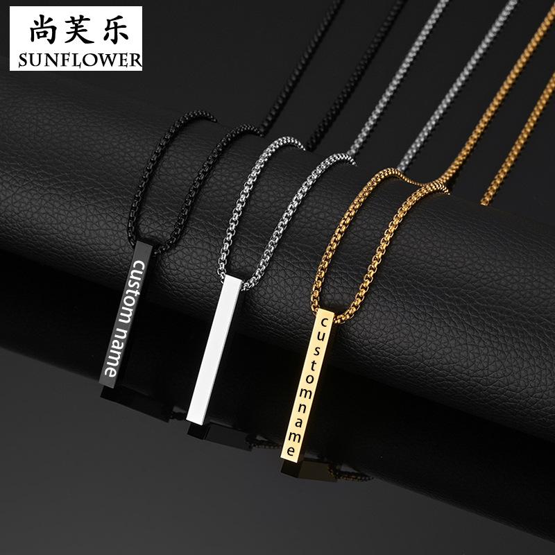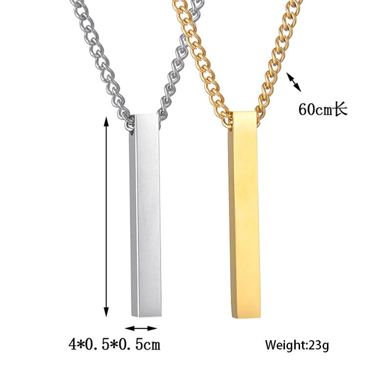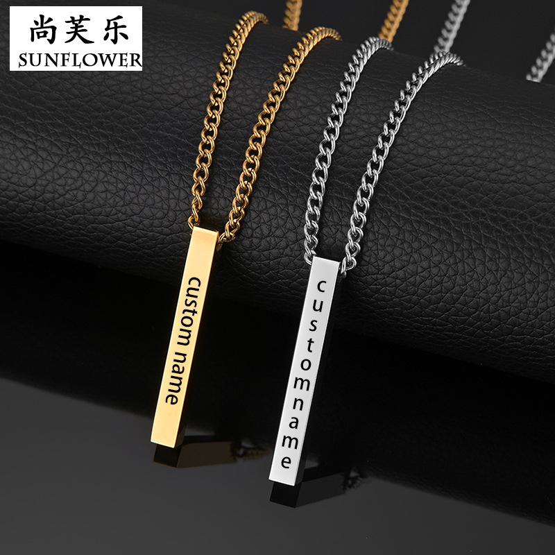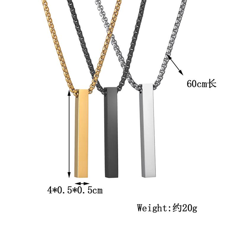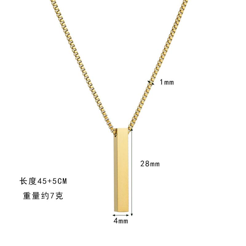 Collar Largo Simple Personalizado Columna de Acero Inoxidable Letras en Cuatro Lados Collar Personalizado Venta Caliente de Amazon