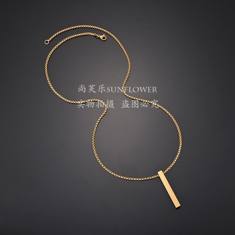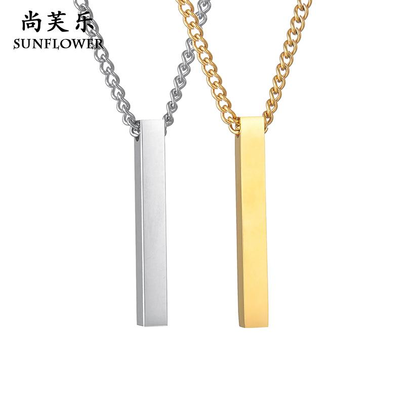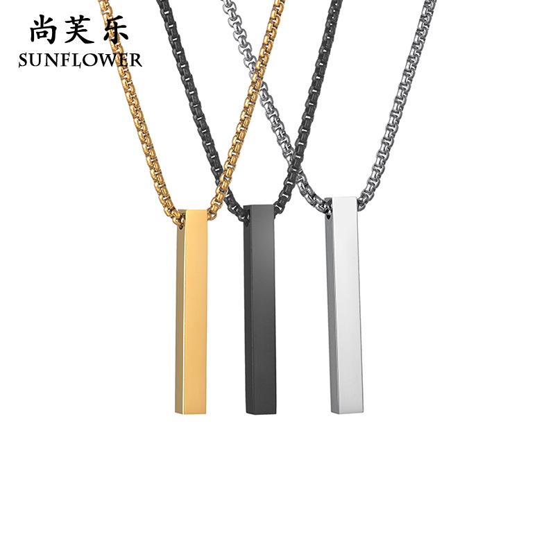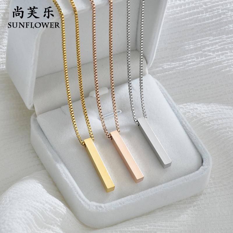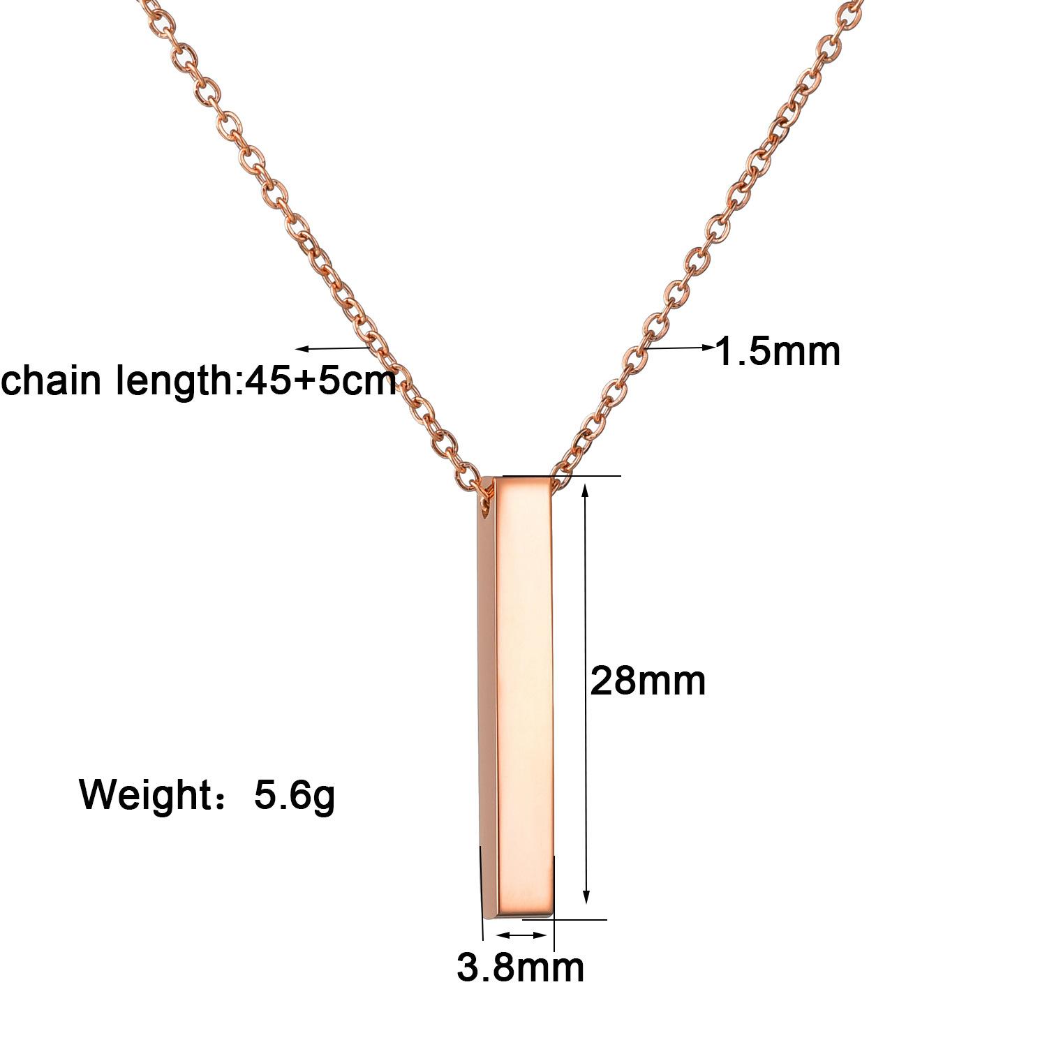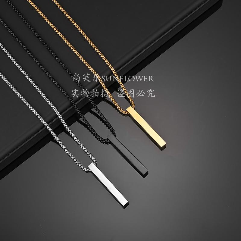 Collar Largo Simple Personalizado Columna de Acero Inoxidable Letras en Cuatro Lados Collar Personalizado Venta Caliente de Amazon