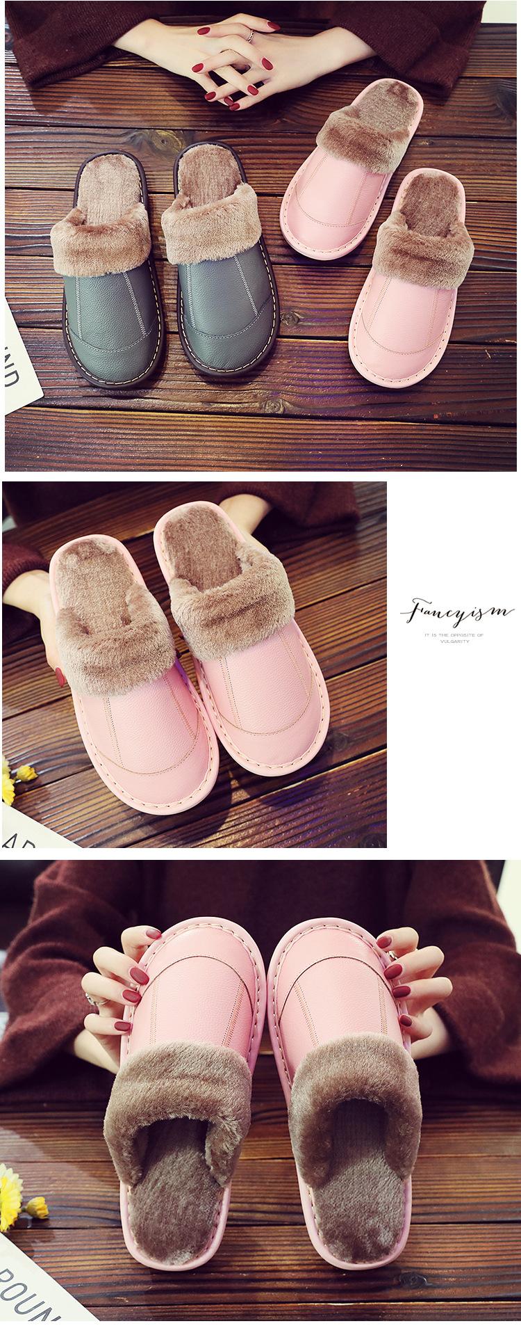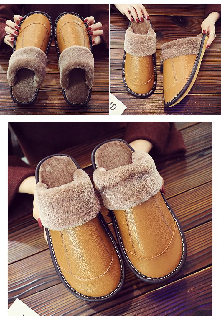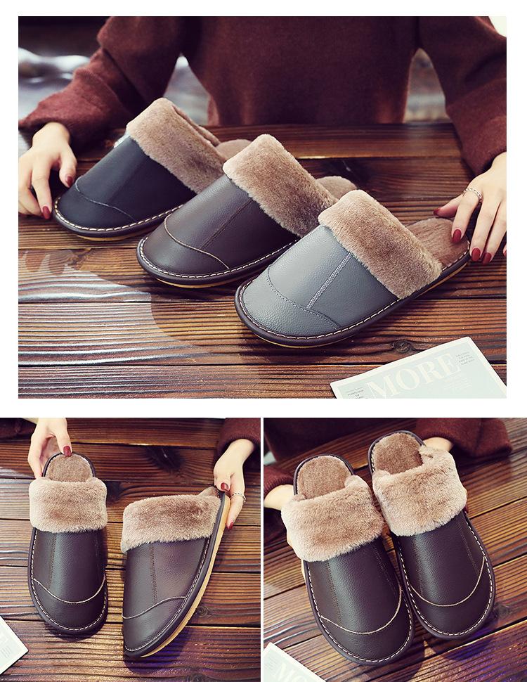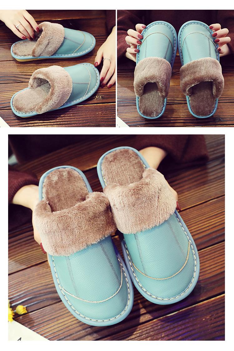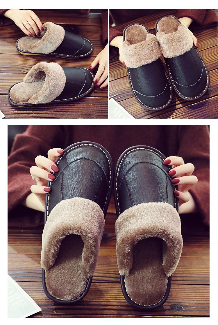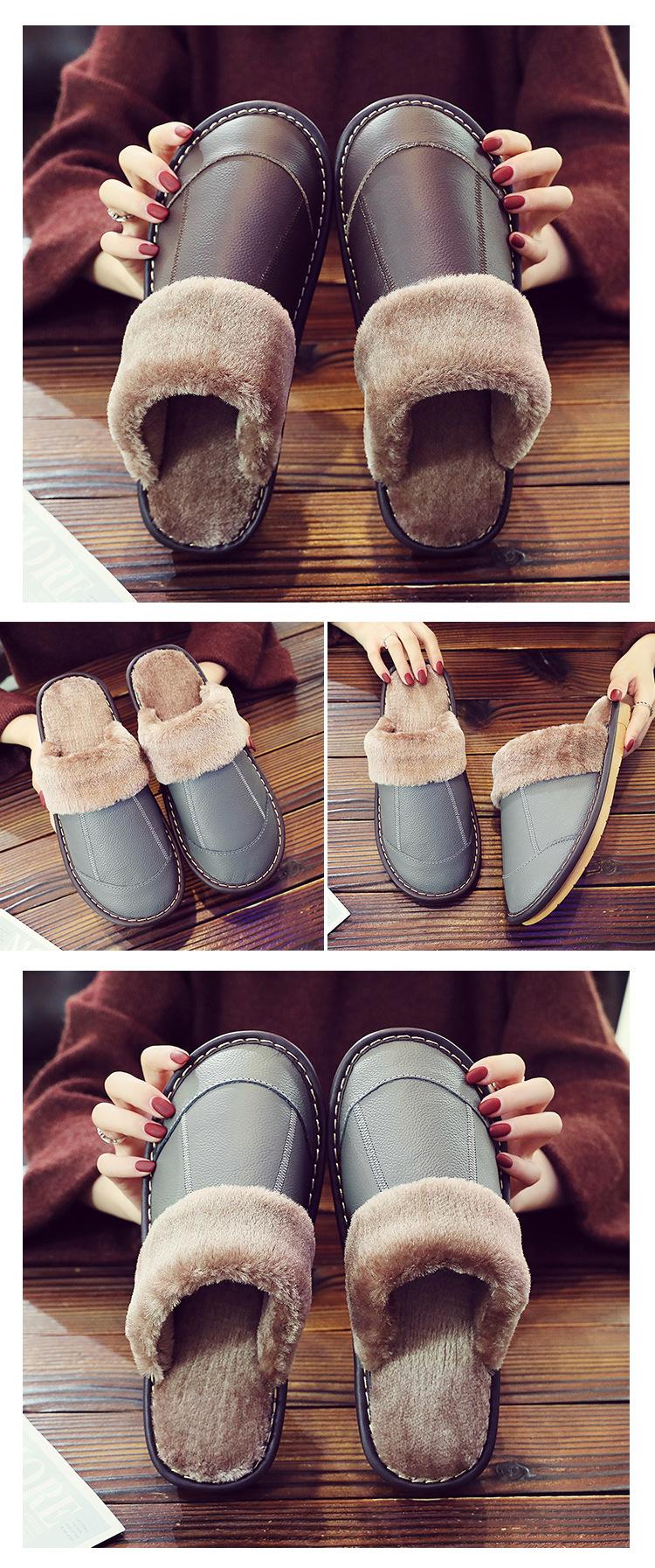 Pantuflas de algodón para otoño e invierno, de cuero para interiores, de felpa gruesa, cálidas y antideslizantes, para el hogar.