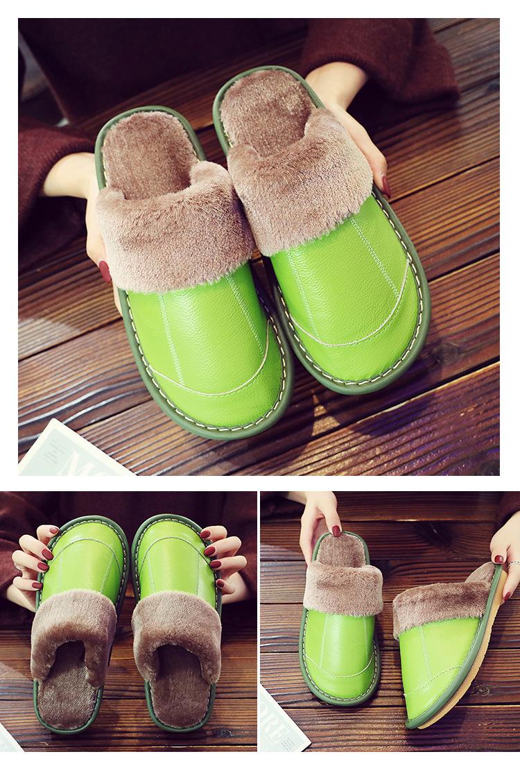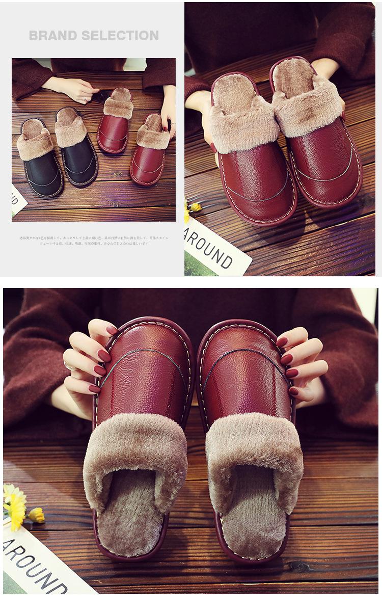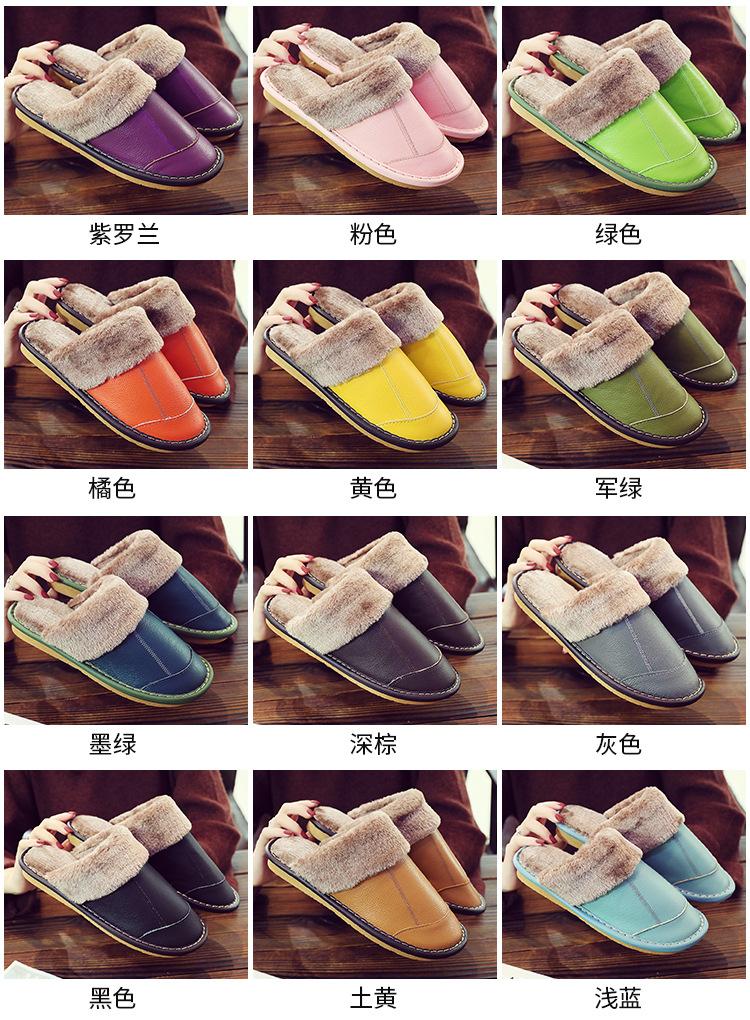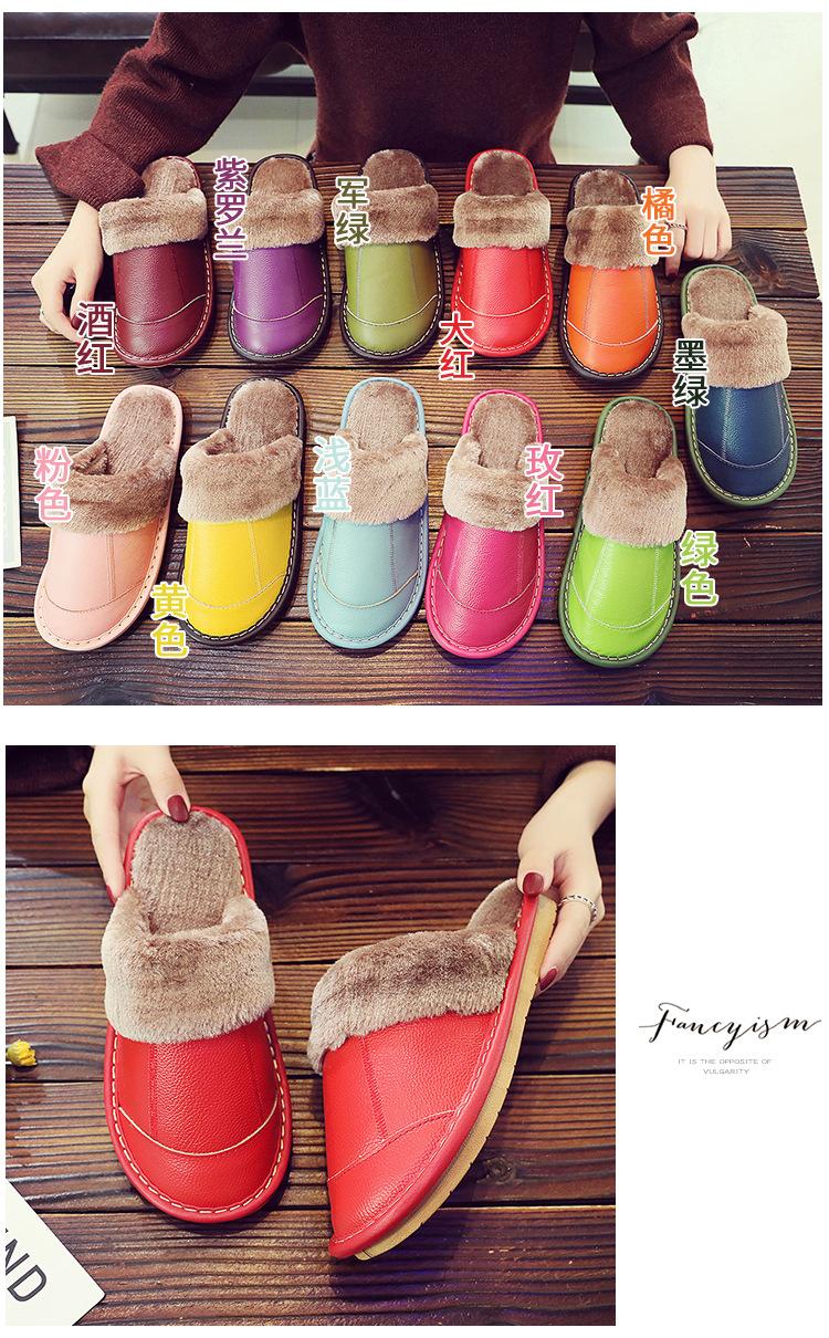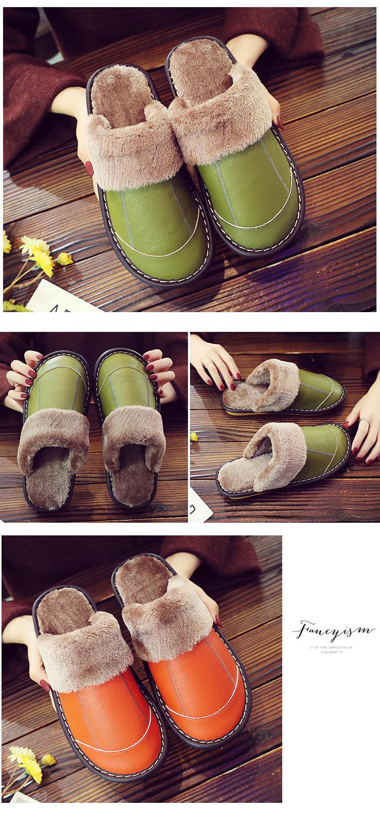 Pantuflas de algodón para otoño e invierno, de cuero para interiores, de felpa gruesa, cálidas y antideslizantes, para el hogar.