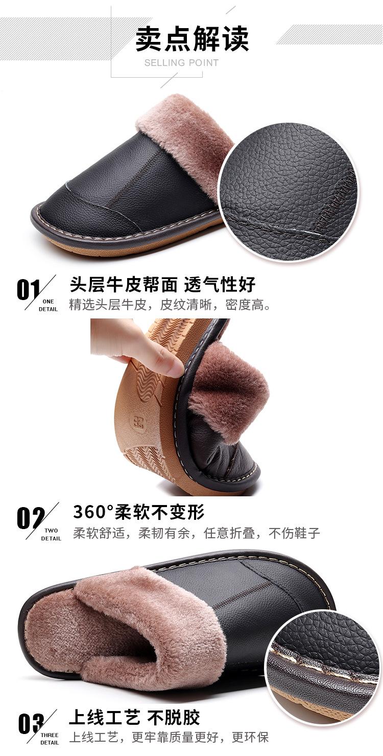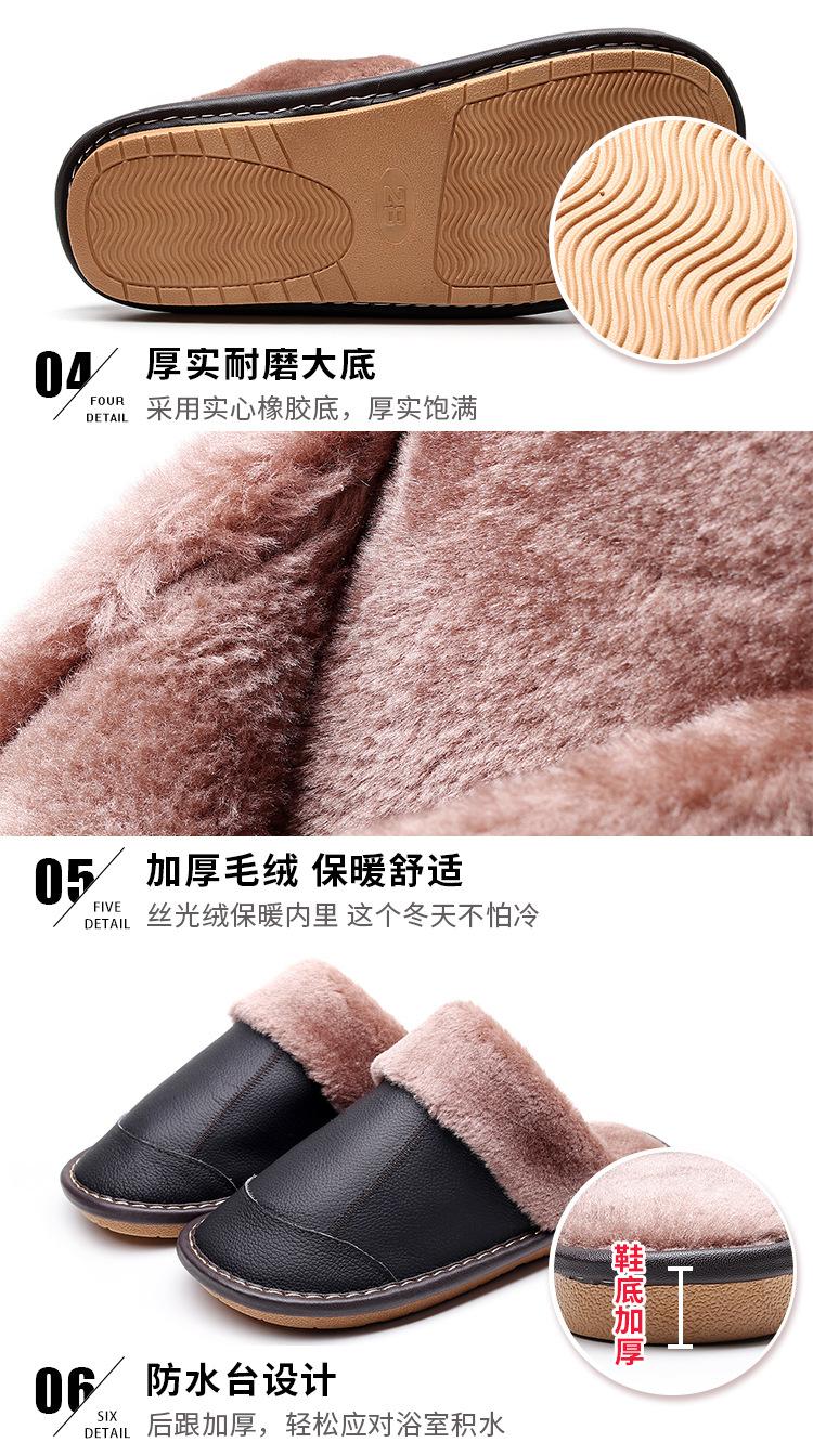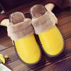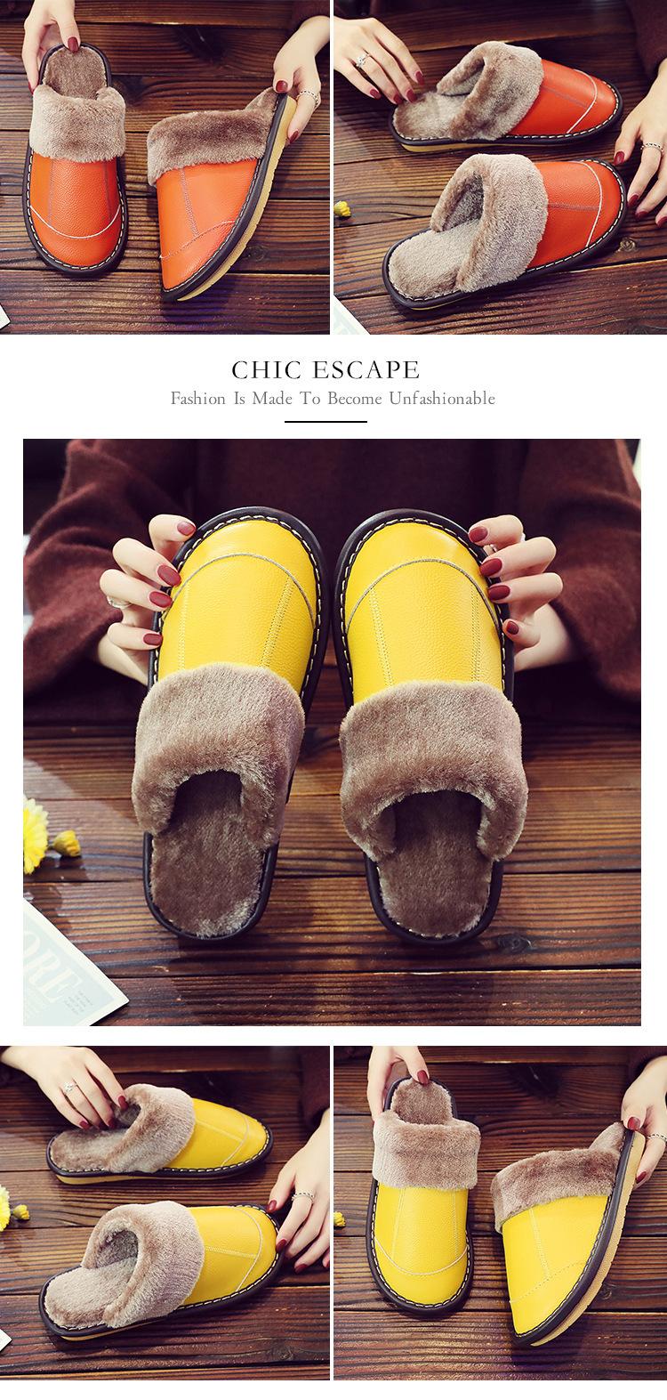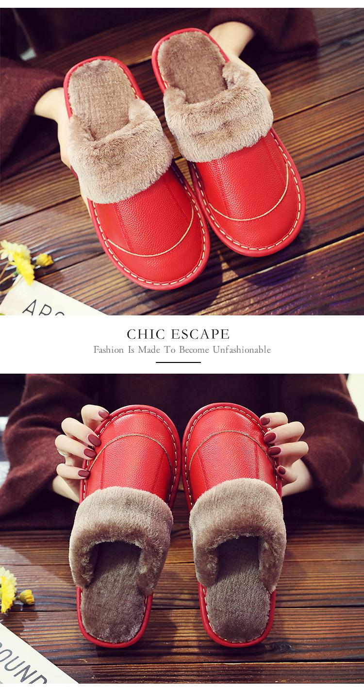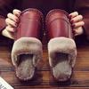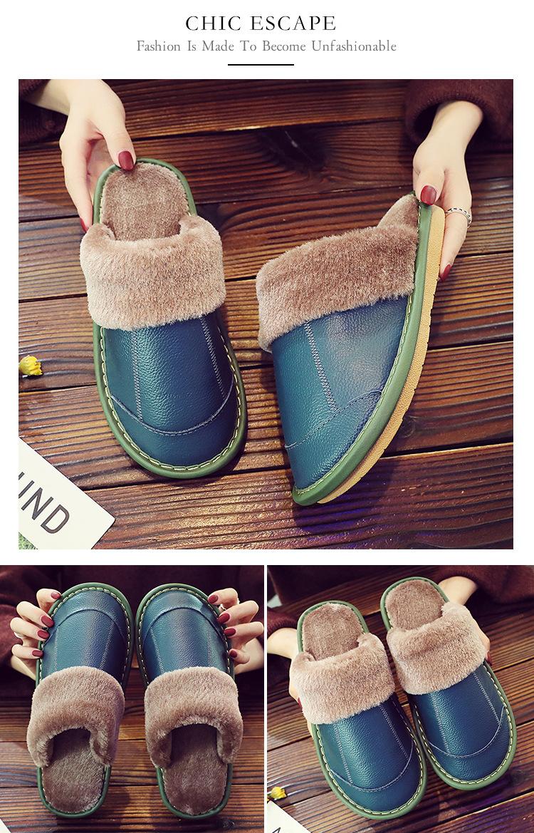 Pantuflas de algodón para otoño e invierno, de cuero para interiores, de felpa gruesa, cálidas y antideslizantes, para el hogar.