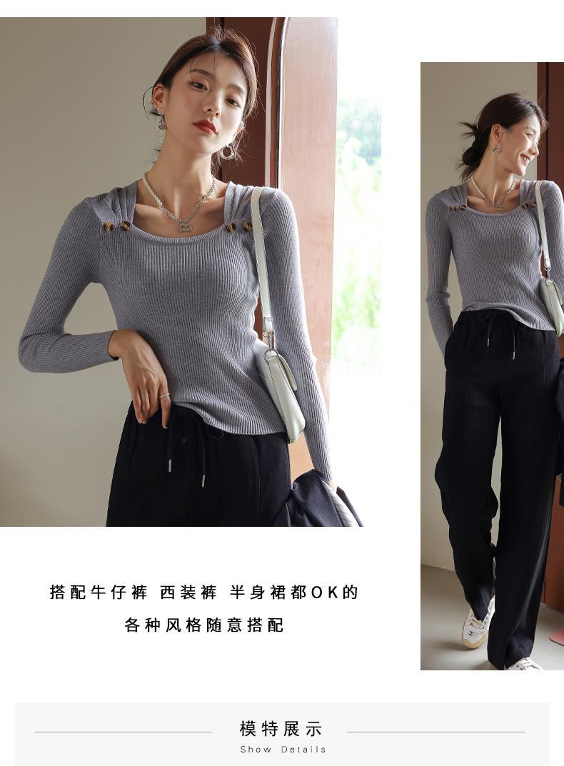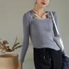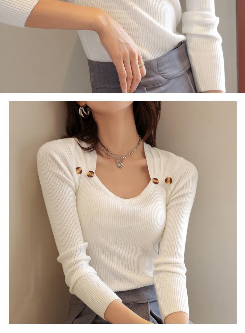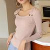 Nueva camisa de punto de cuello redondo de manga larga para mujer con botones en contraste Otoño e Invierno 2024 Estilo coreano Ropa exterior para mujer