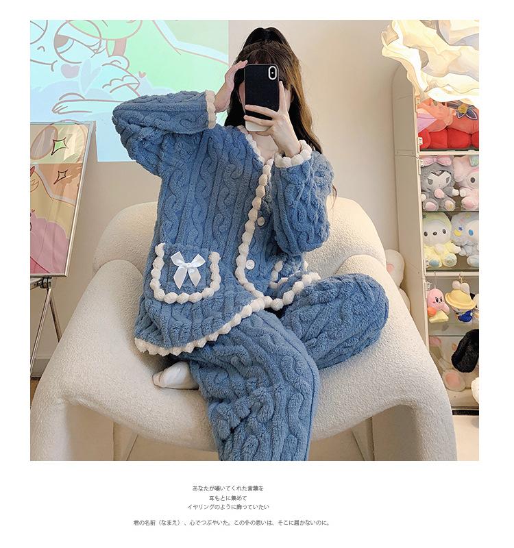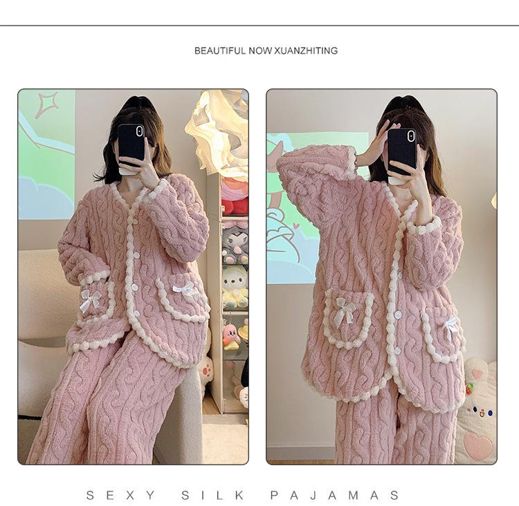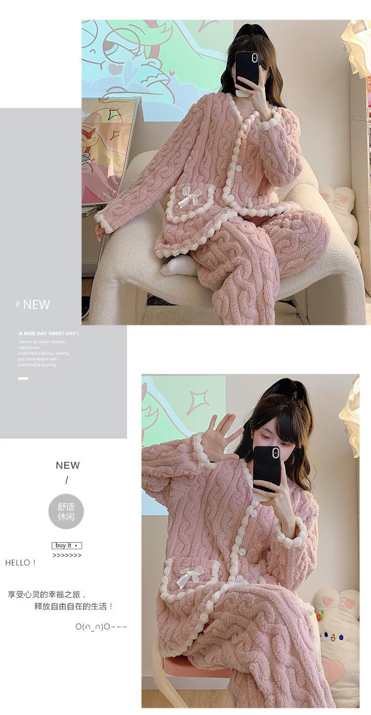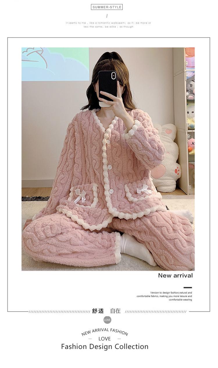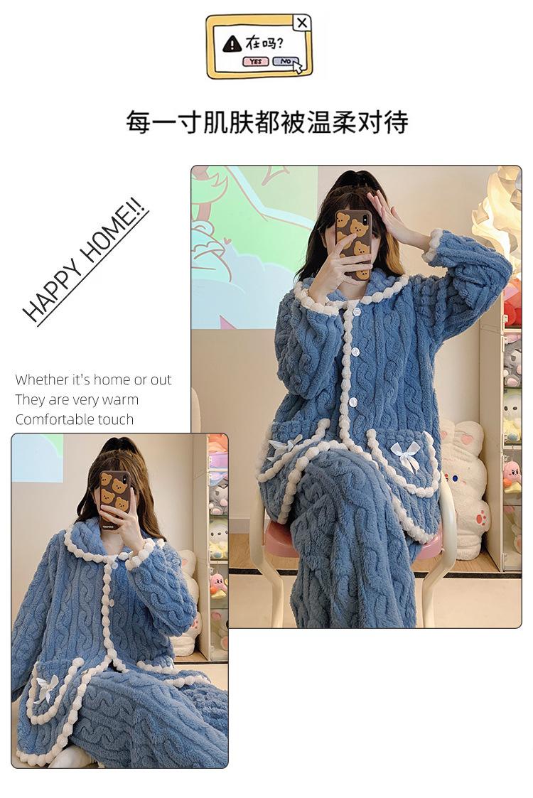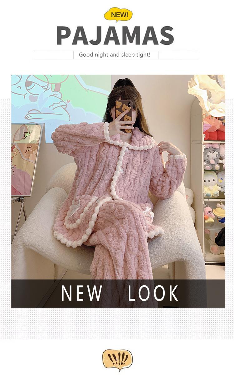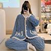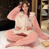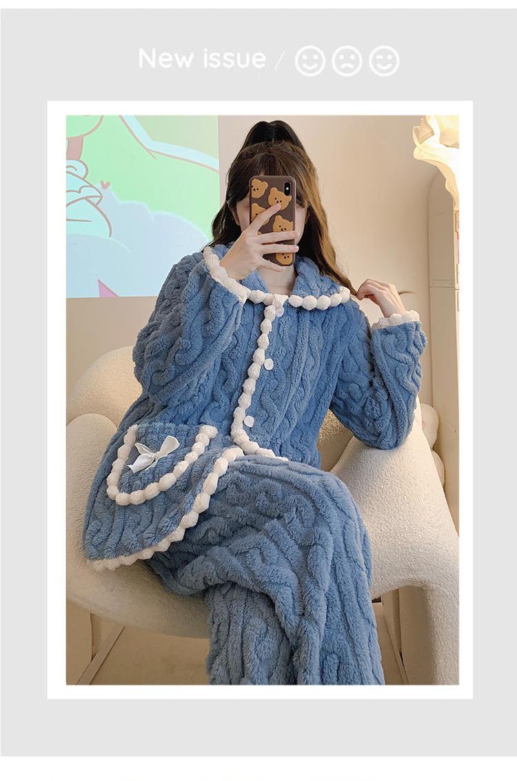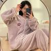 Pijamas de felpa de otoño e invierno para mujer, bonito cárdigan dulce de forro polar coral, talla grande, ropa de casa cálida para chica gordita