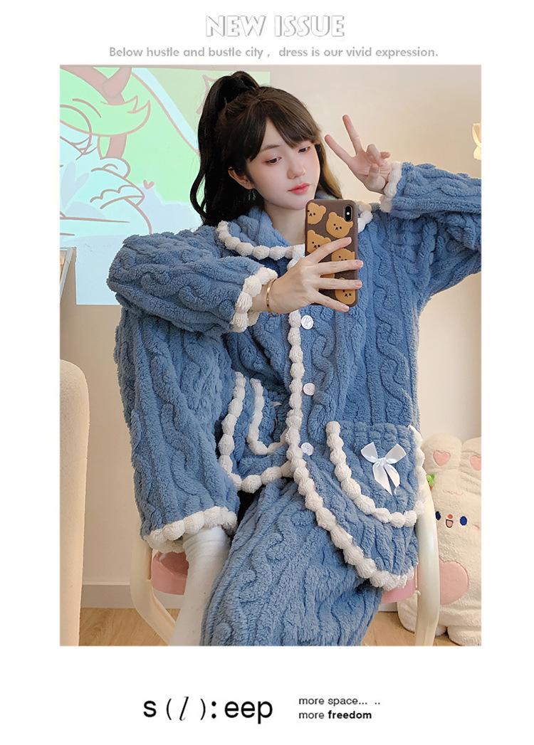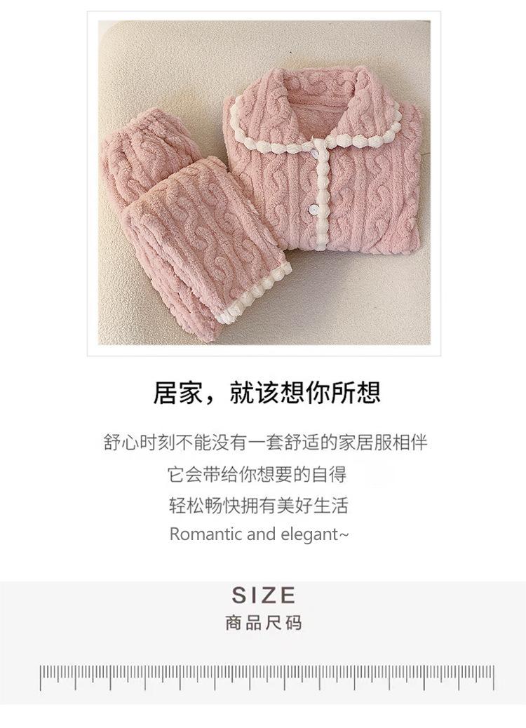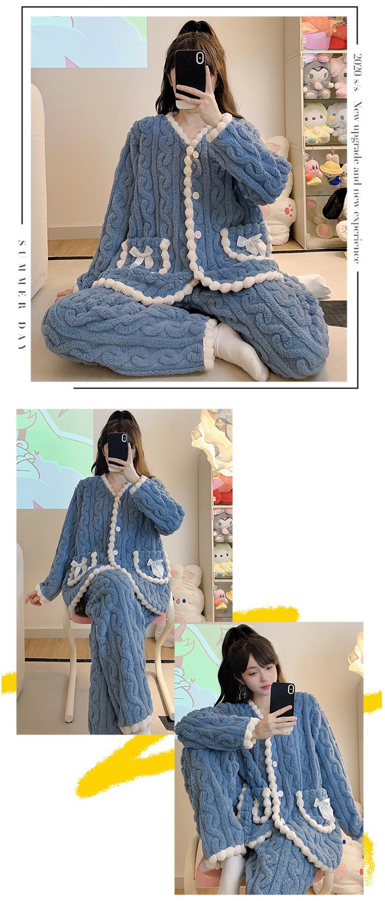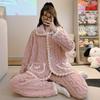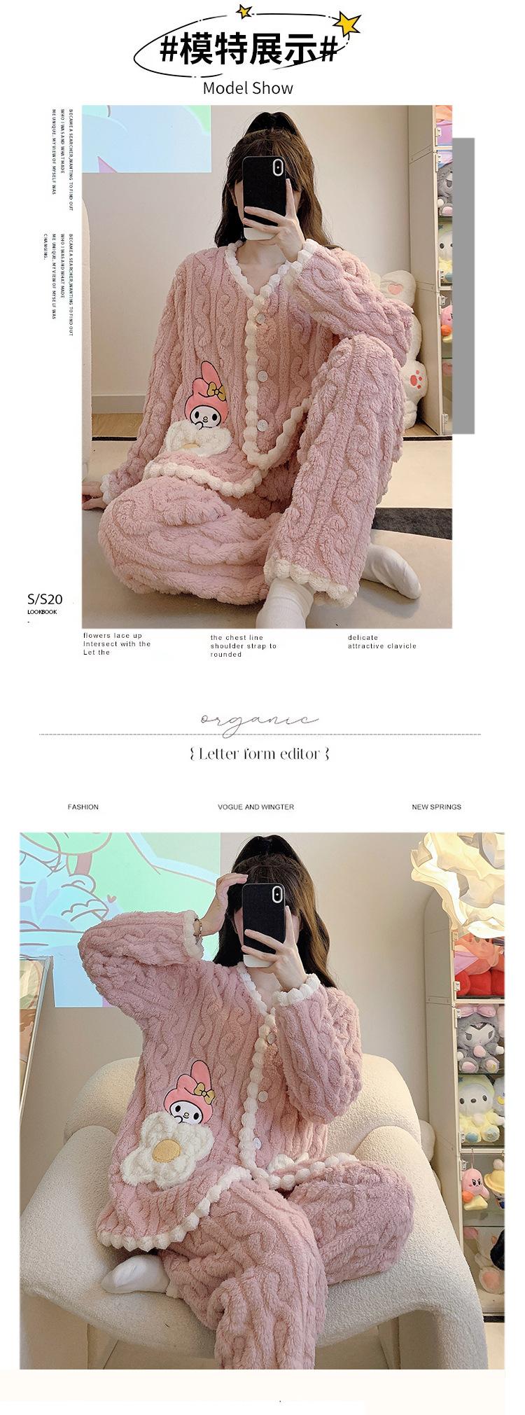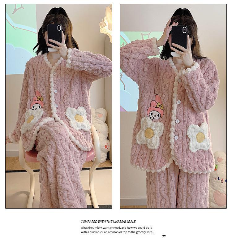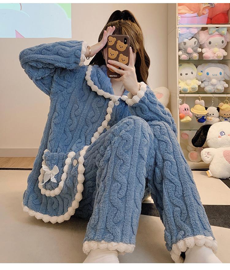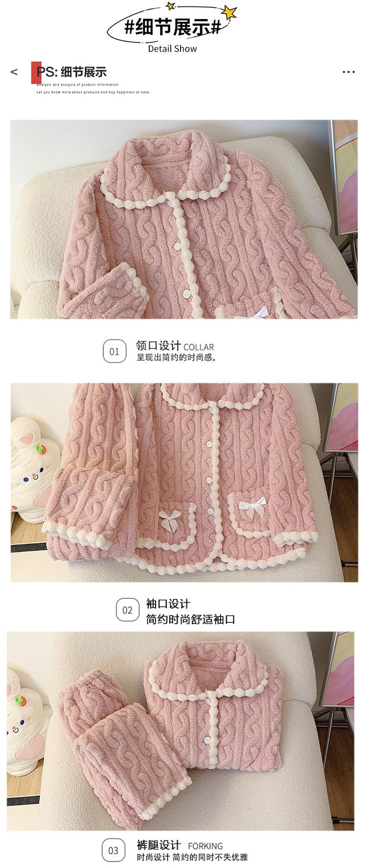 Pijamas de felpa de otoño e invierno para mujer, bonito cárdigan dulce de forro polar coral, talla grande, ropa de casa cálida para chica gordita