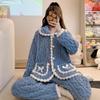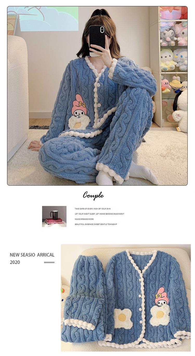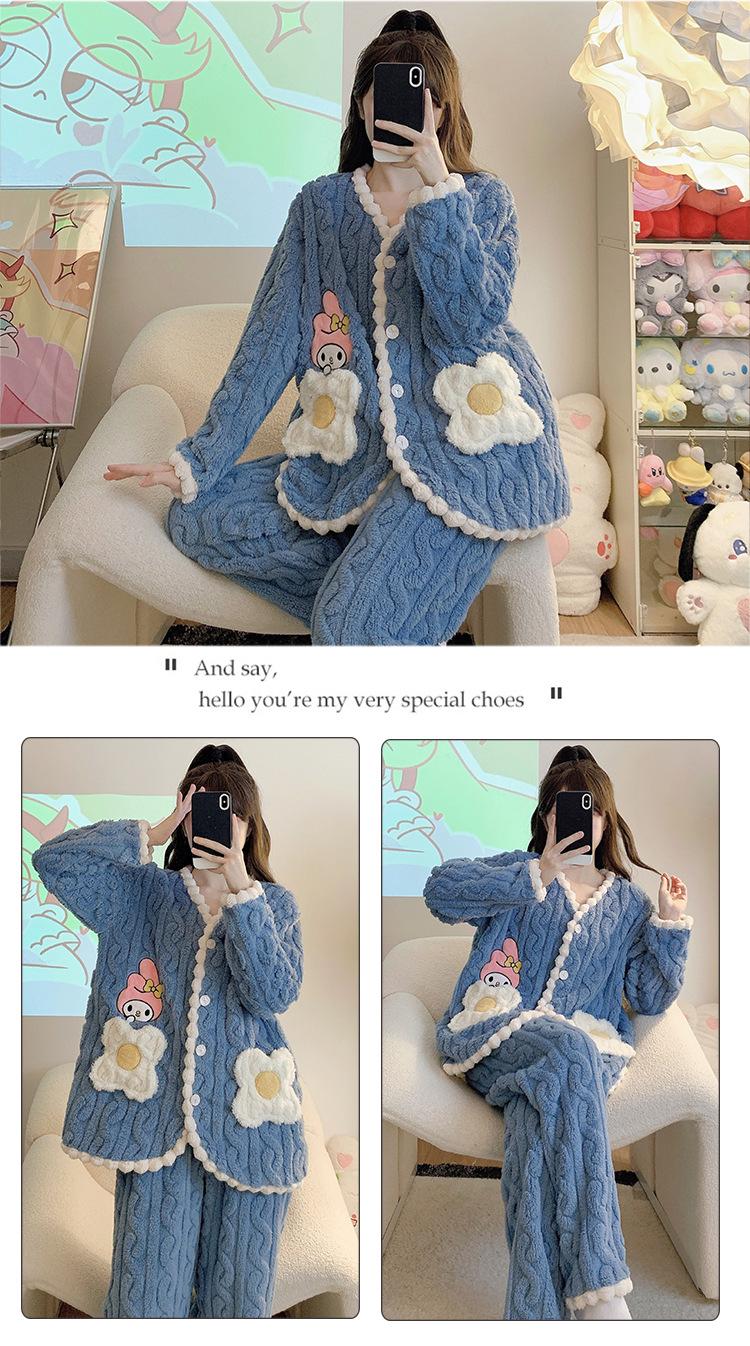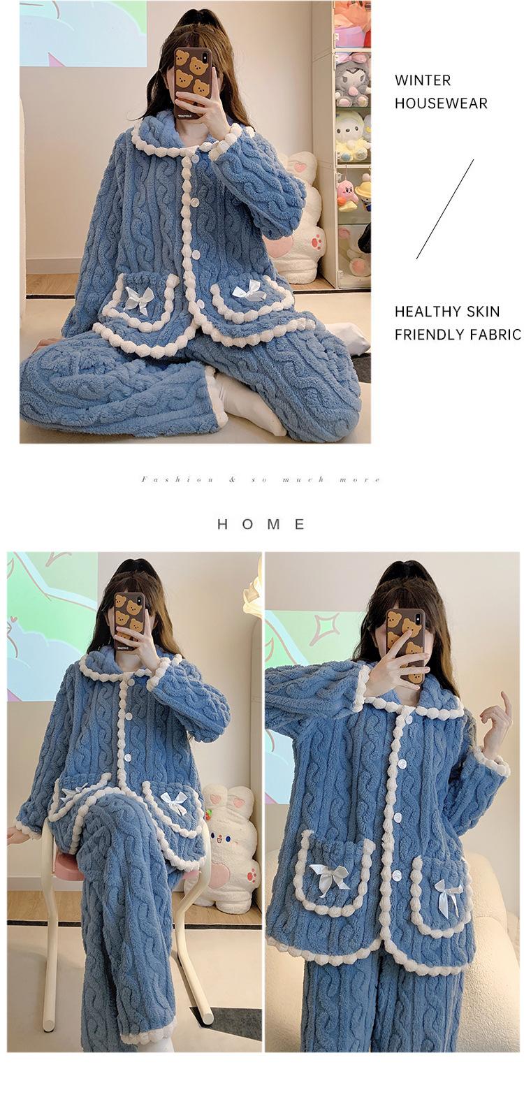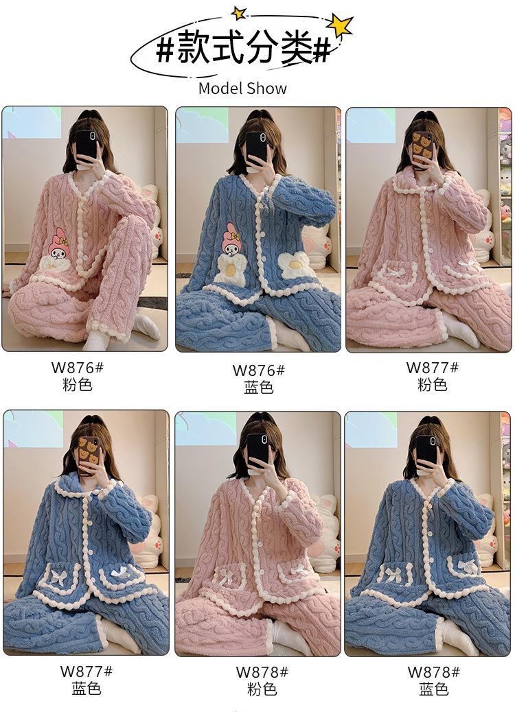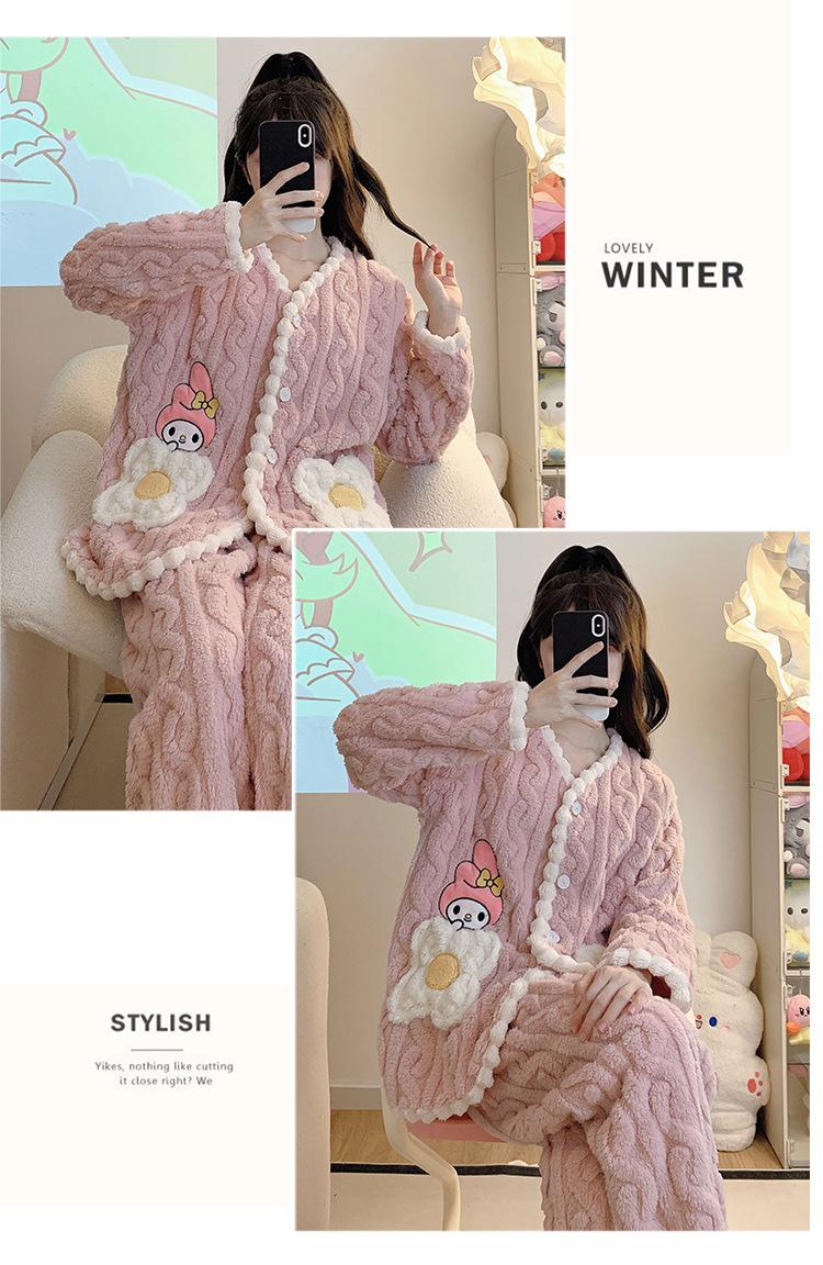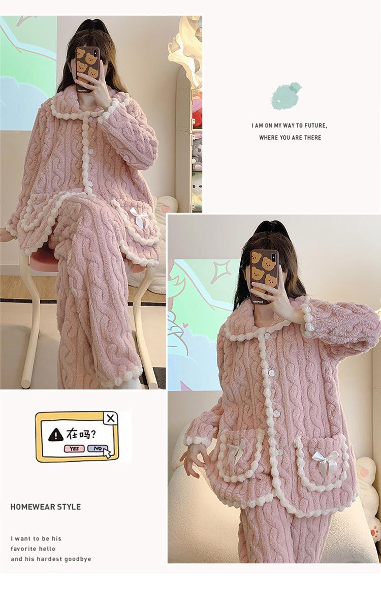 Pijamas de felpa de otoño e invierno para mujer, bonito cárdigan dulce de forro polar coral, talla grande, ropa de casa cálida para chica gordita