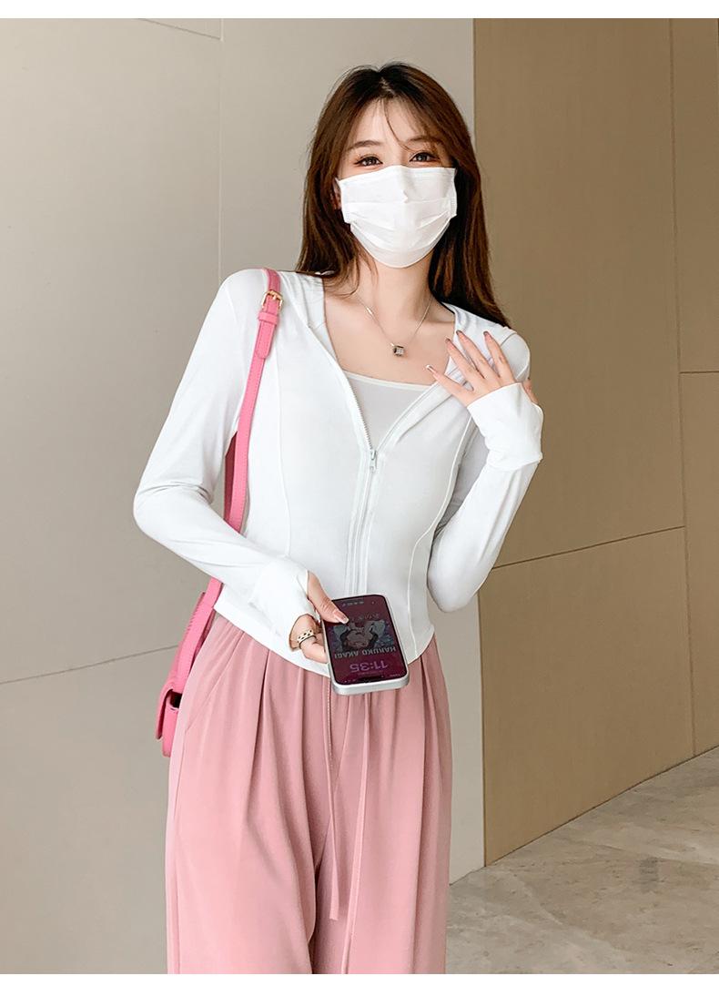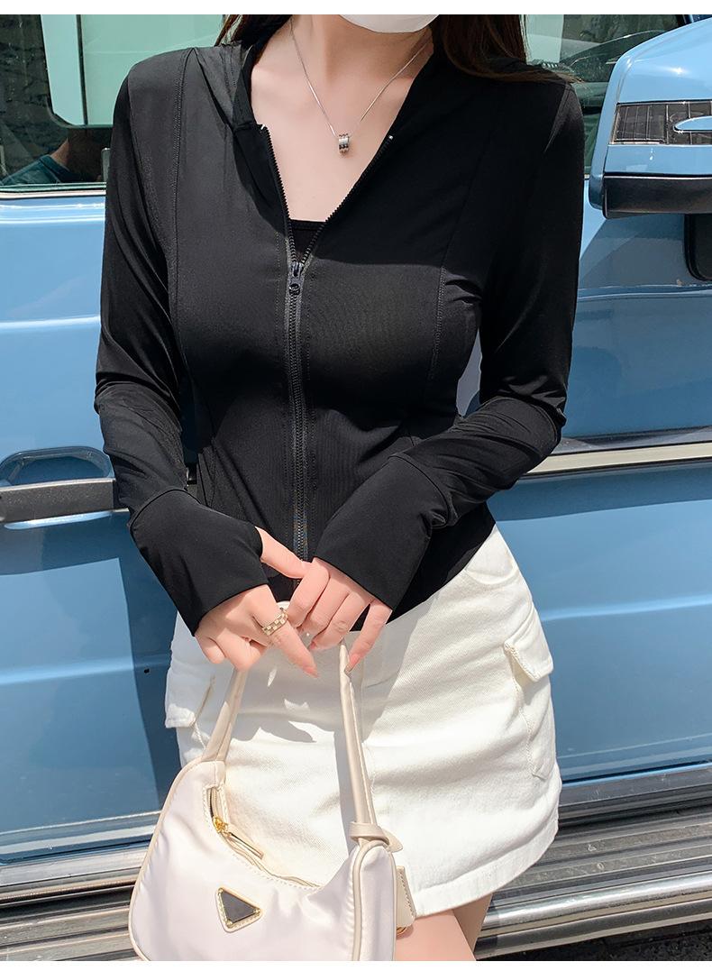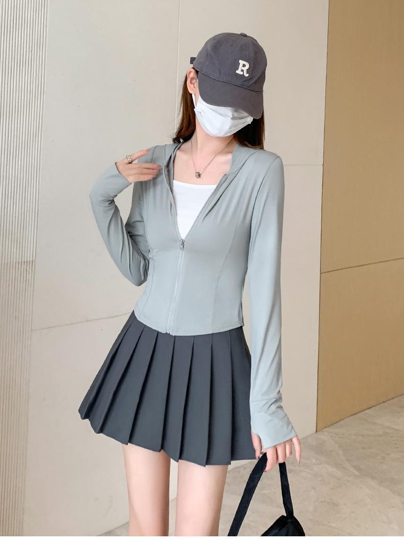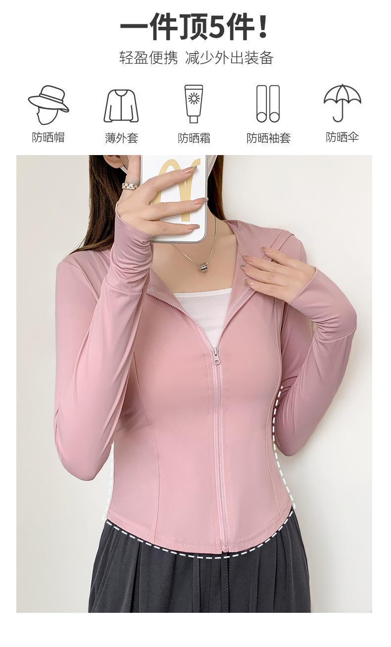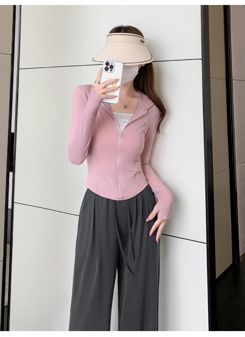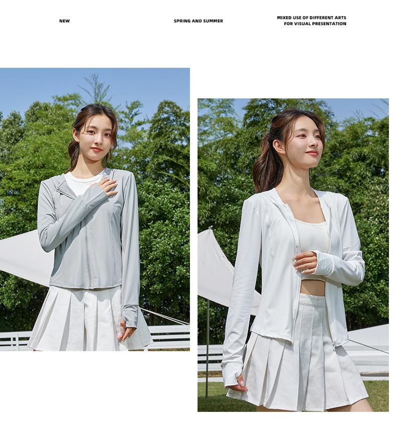 Ropa Corta de Yoga con Protección Solar para Mujer, Chaqueta con Capucha de Moda Otoño 2025 Protección UV Upf50+, Ropa Transpirable con Protección Solar