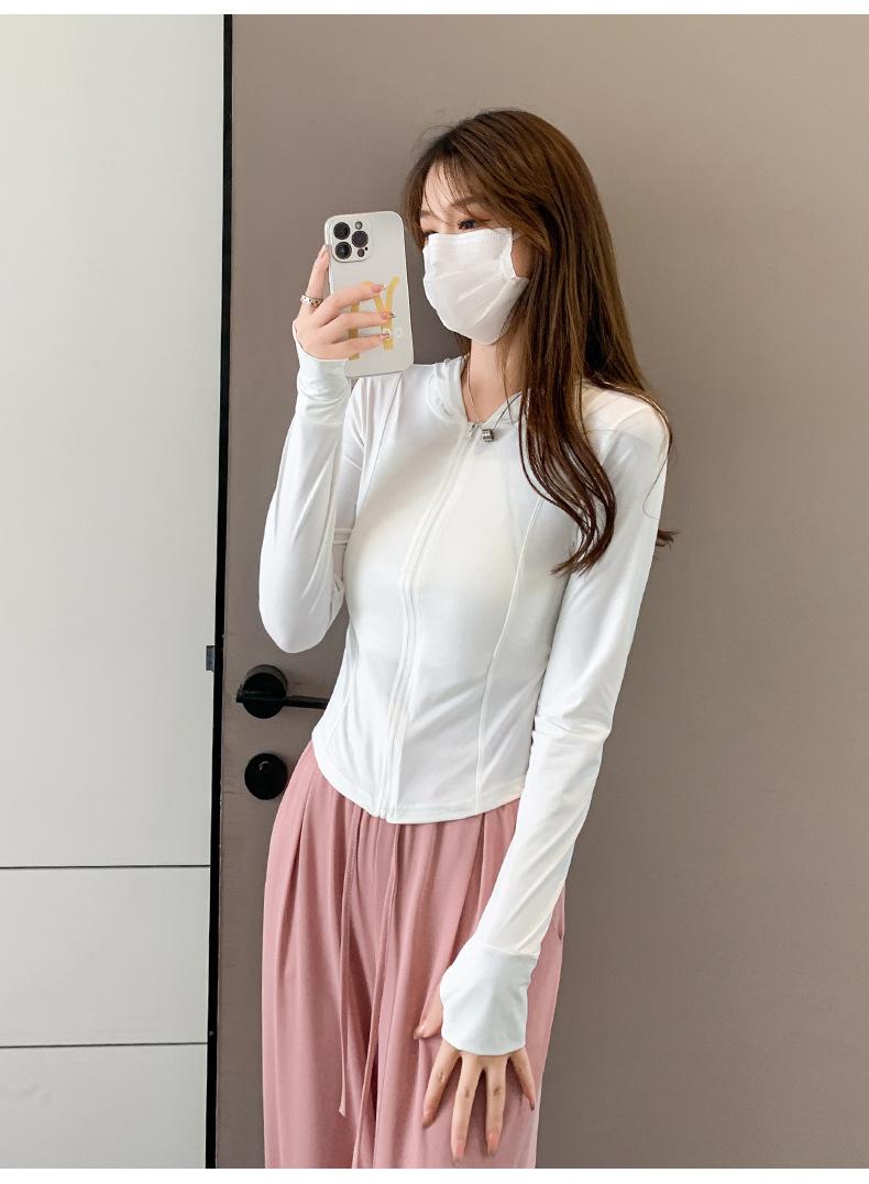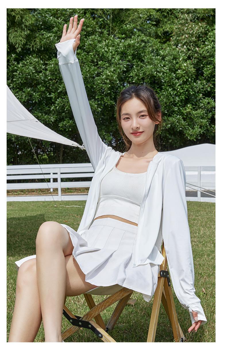 Nombre del producto: Ropa de yoga delgada con protección solar. SKU: 2024 Color: Negro avanzado, Blanco elegante, Gris montaña distante, Rosa flor de cerezo Talla: M (80-110 gatos) L (110-130 gatos)