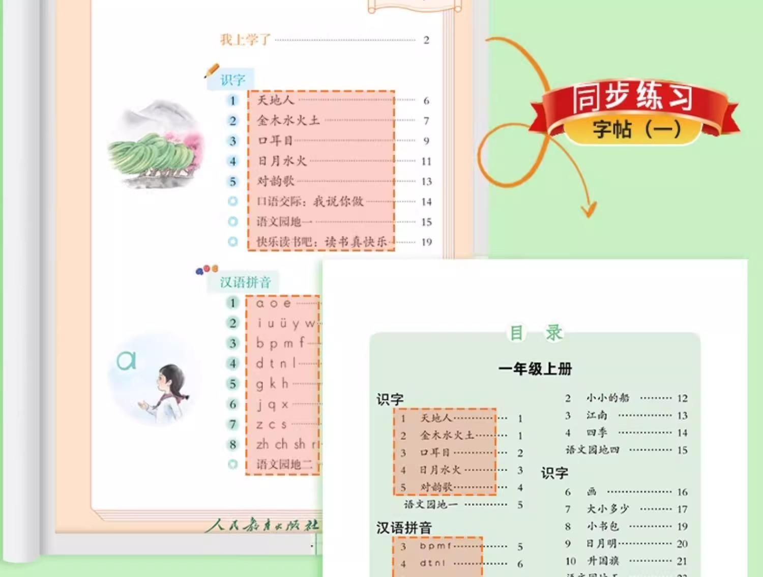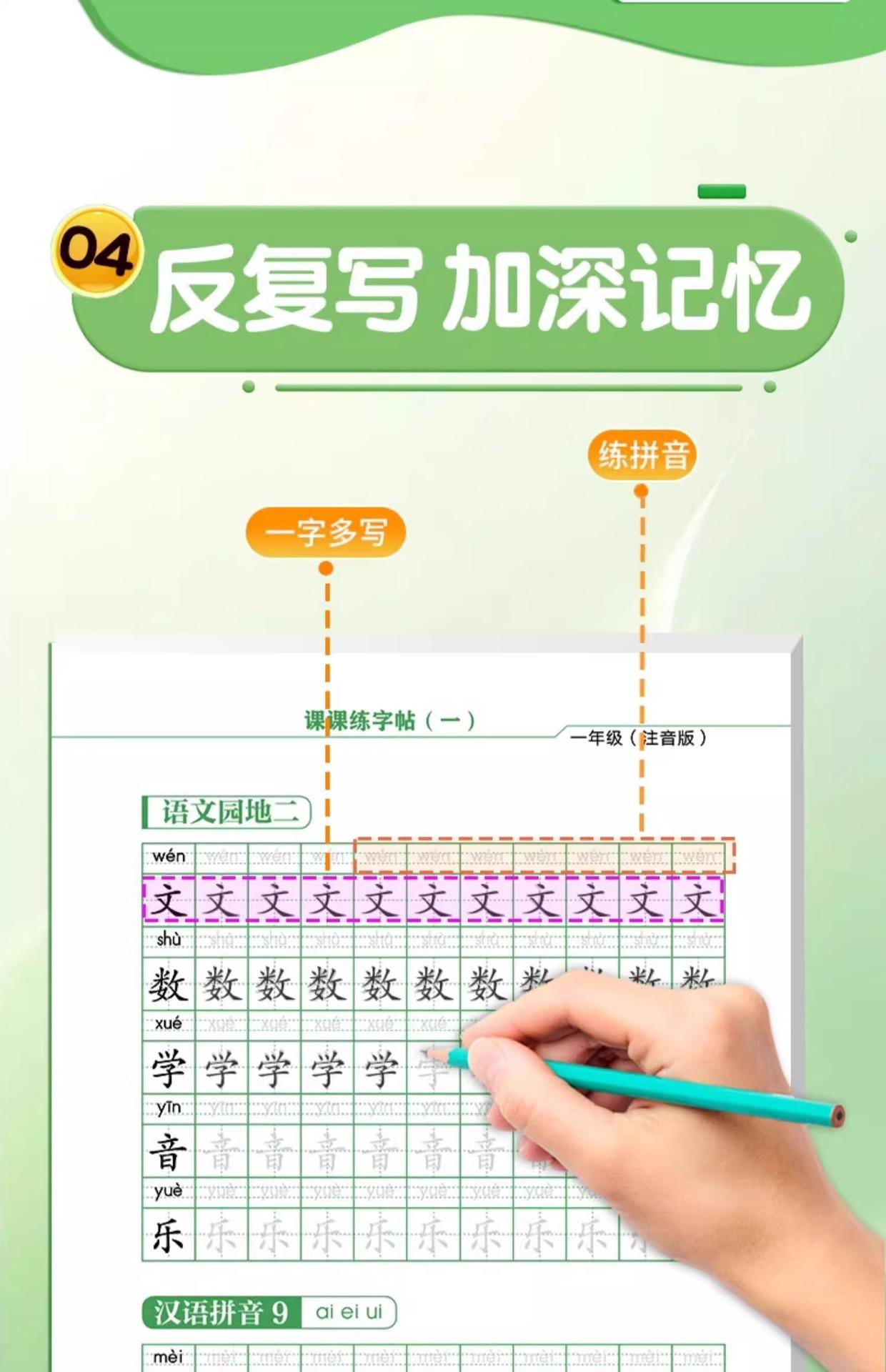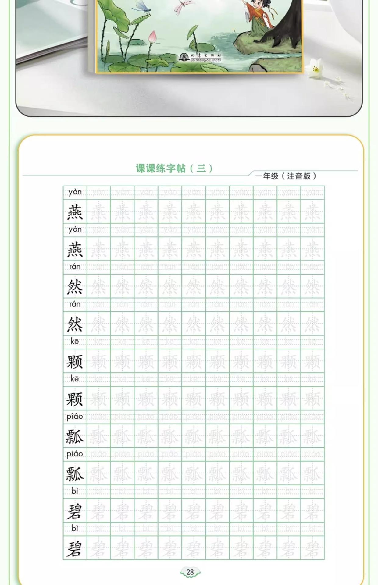 Cuaderno de práctica de lecciones de primer grado, primer grado, primer volumen, cuaderno de práctica sincrónica de chino general, versión fonética, estudiantes de primaria, palabras nuevas sincrónicas