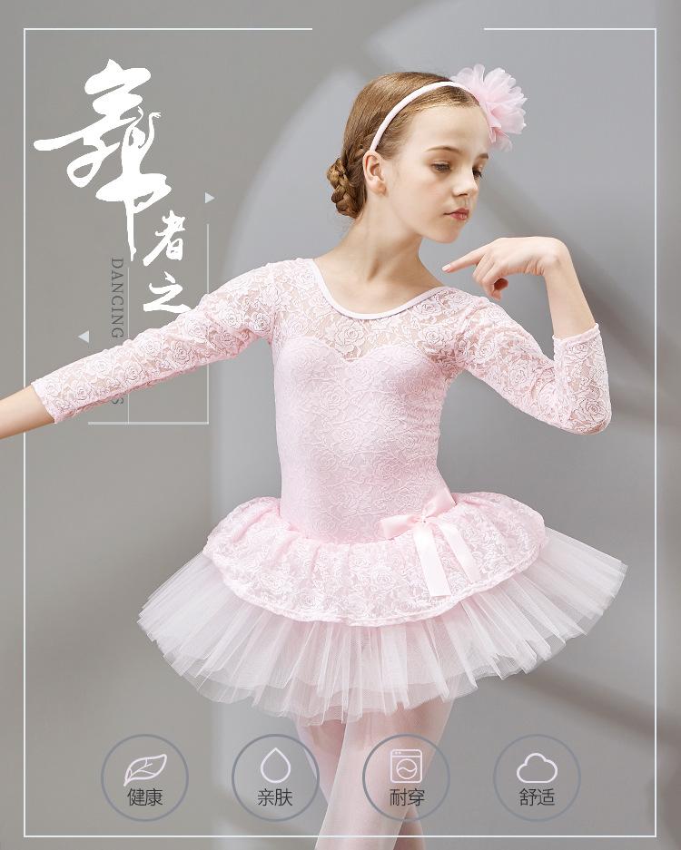 En stock, disfraz de baile para niños, ropa de práctica, falda de ballet de manga larga para niñas, falda de disfraz de baile para jardín de infantes