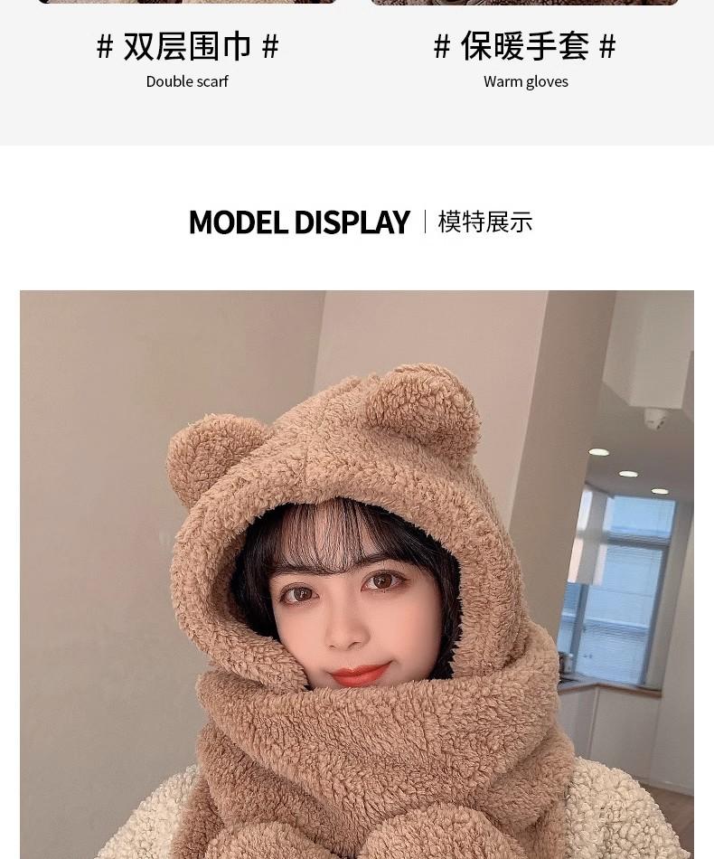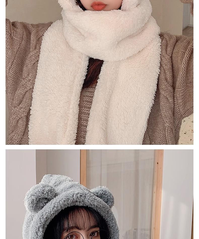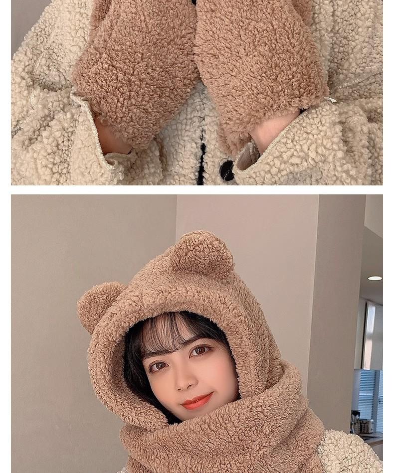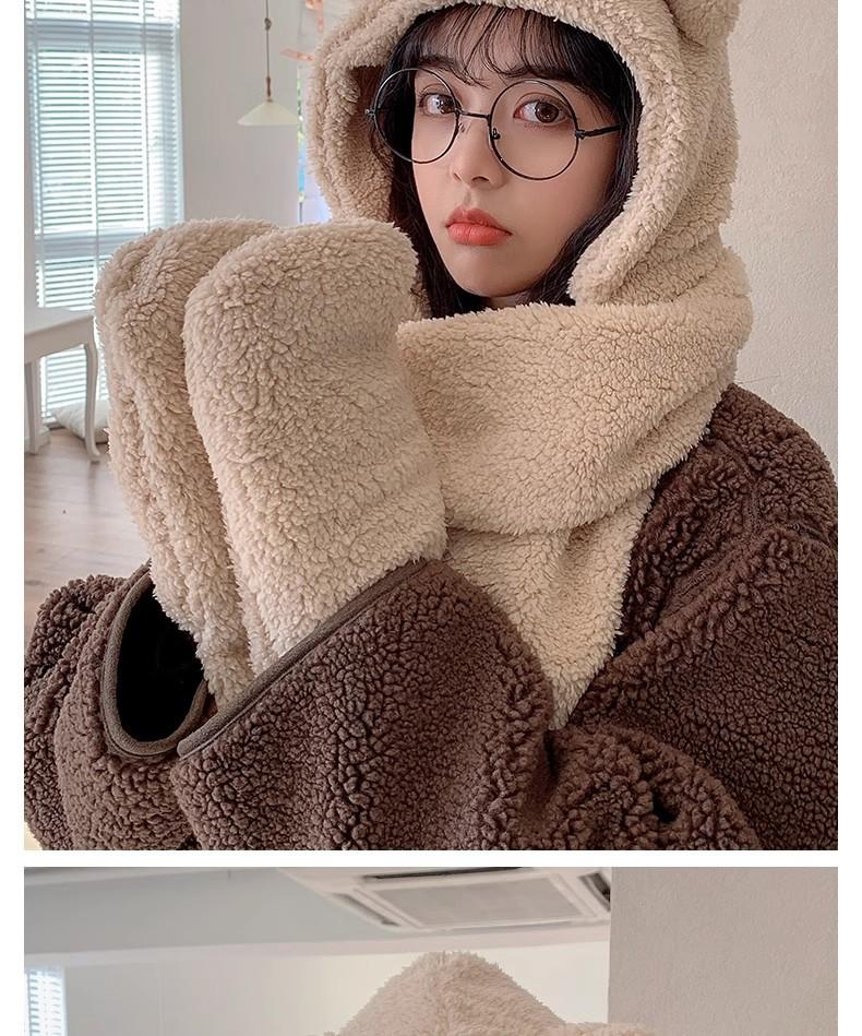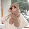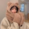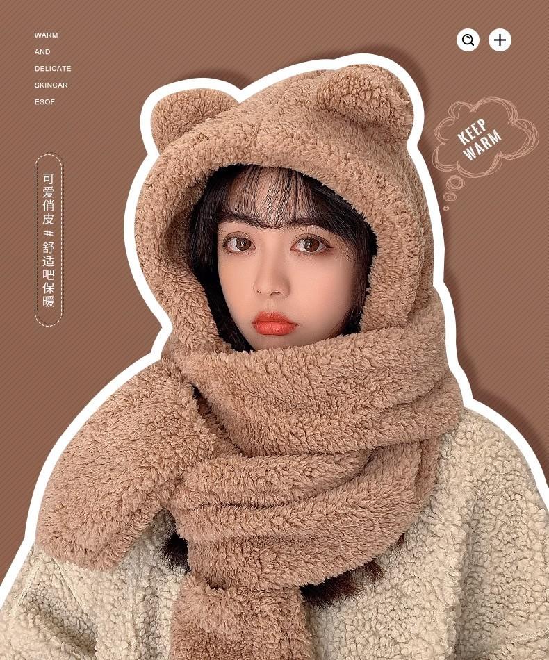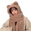 Gorro de Oso Engrosado para Mujer Invierno Gorro de Felpa Bufanda Guantes de Una Pieza Cálido Protección para las Orejas Capucha Bufanda Conjunto de Tres Piezas