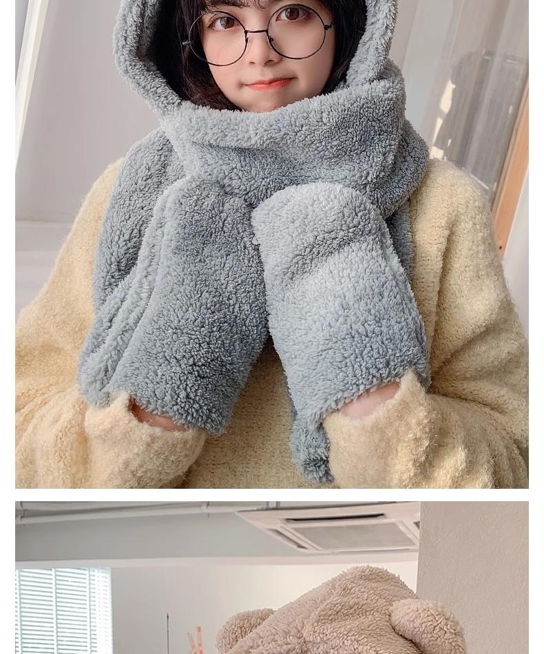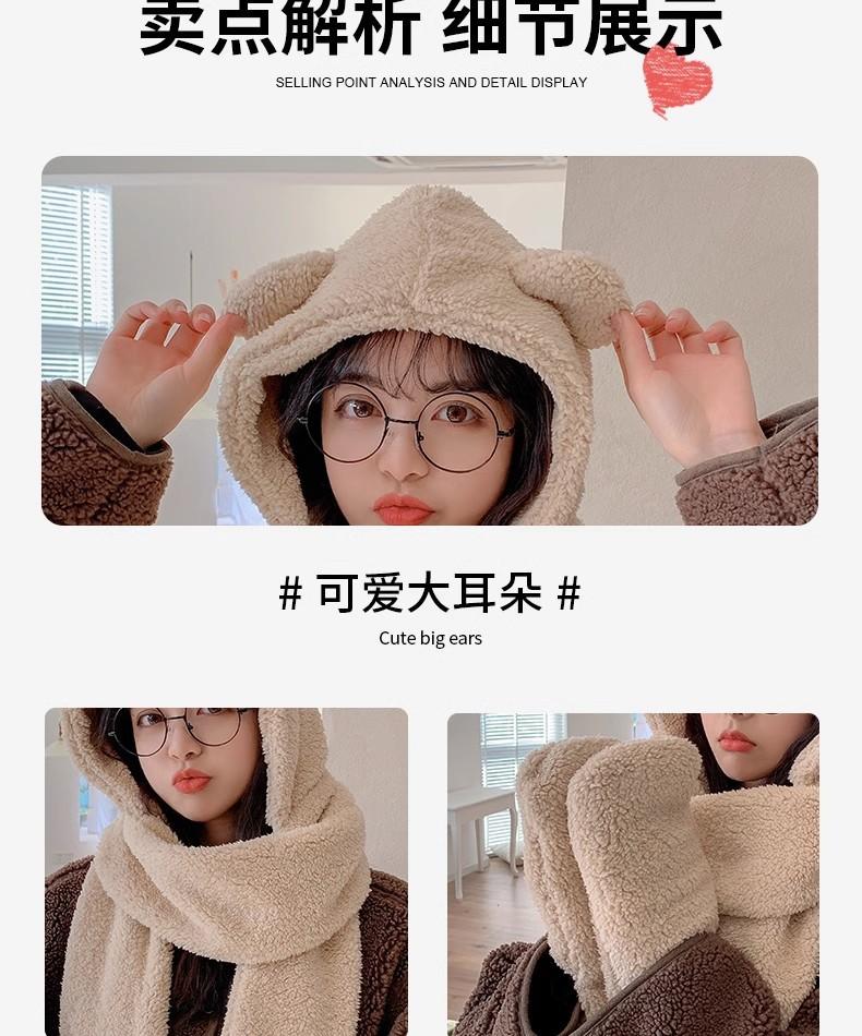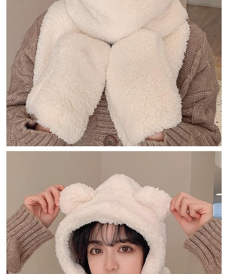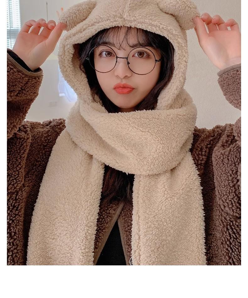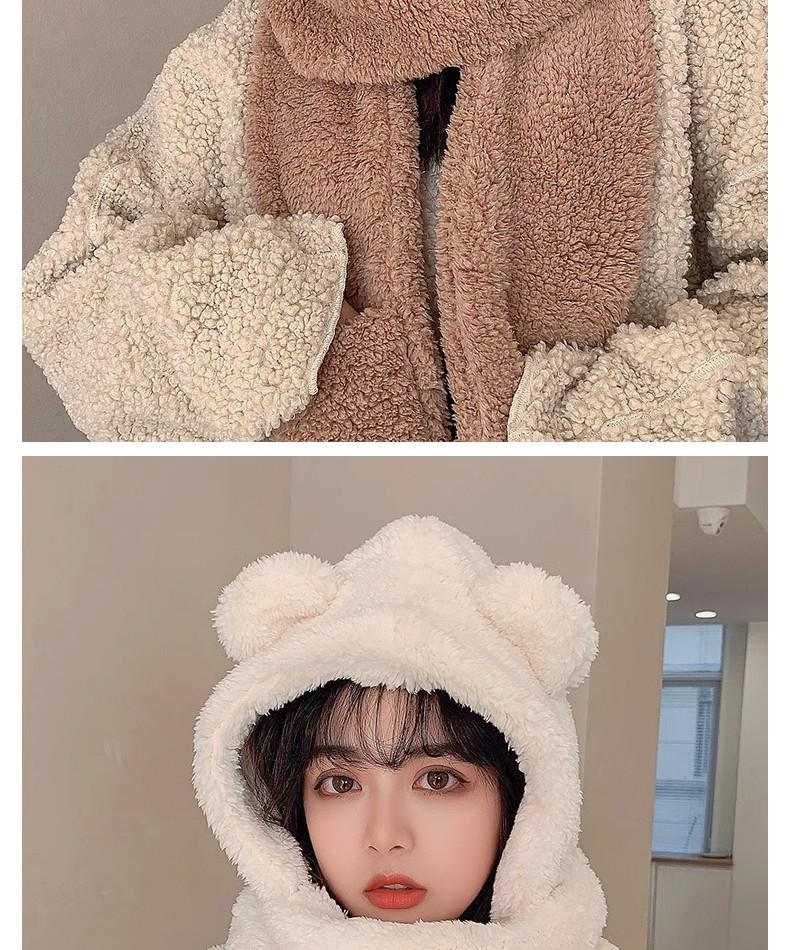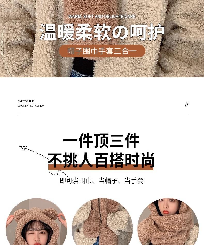 Gorro de Oso Engrosado para Mujer Invierno Gorro de Felpa Bufanda Guantes de Una Pieza Cálido Protección para las Orejas Capucha Bufanda Conjunto de Tres Piezas