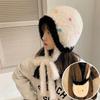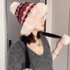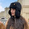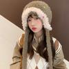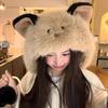 Otoño e Invierno Nuevo Gorro Lei Feng Peludo con Forro Polar para Mujer Gorro con Babero Gorro de Una Pieza Gorro Grueso con Orejas de Oso