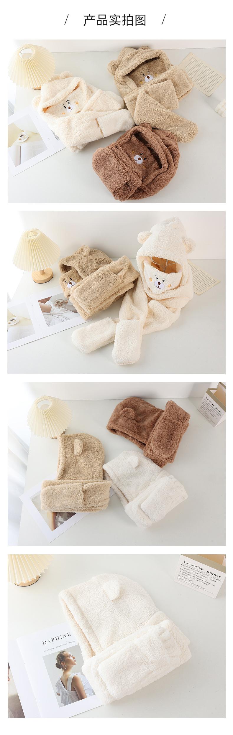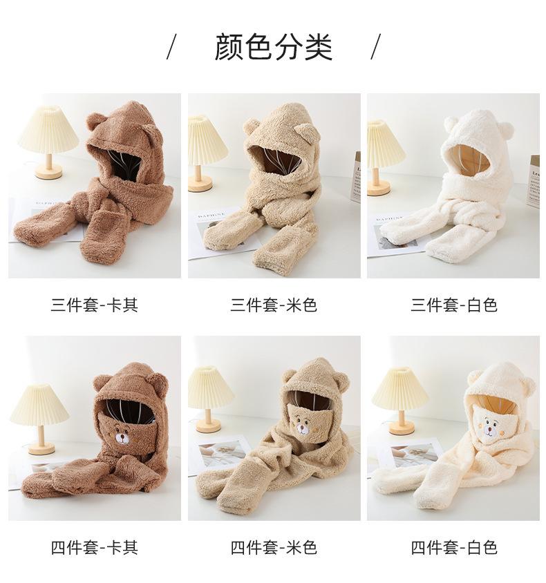 Bear scarf 4-piece white, Bear Scarf 4 Piece Set Coffee, Bear Scarf 4 Piece Beige, Button wool hat scarf two-p...