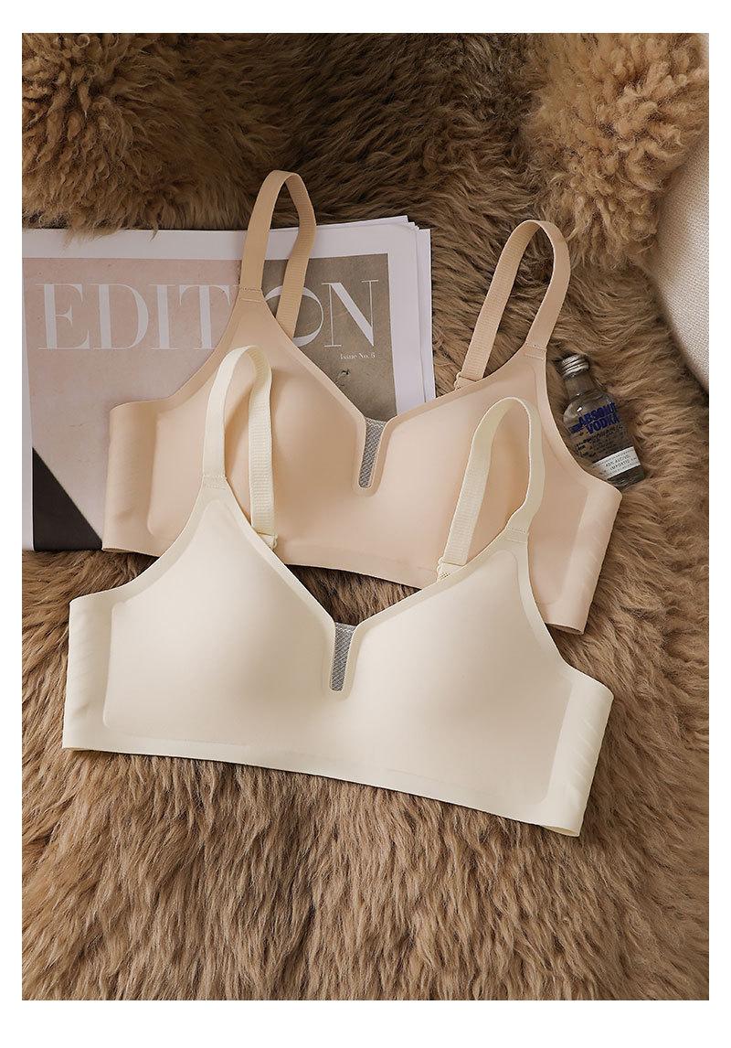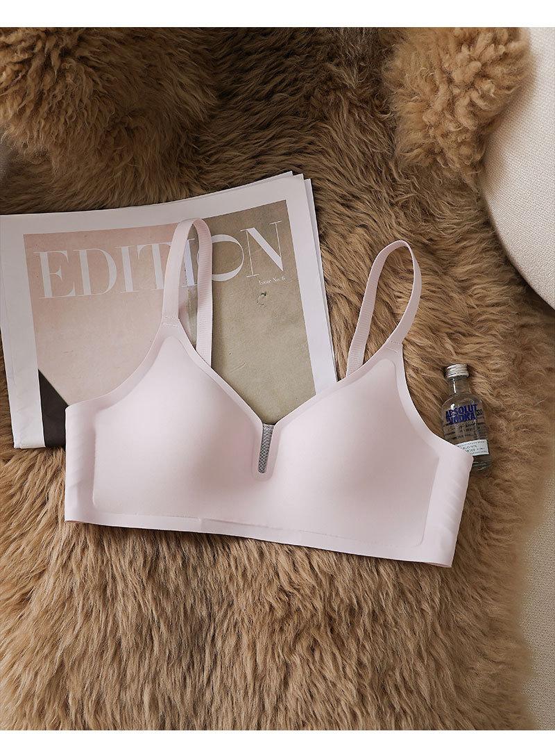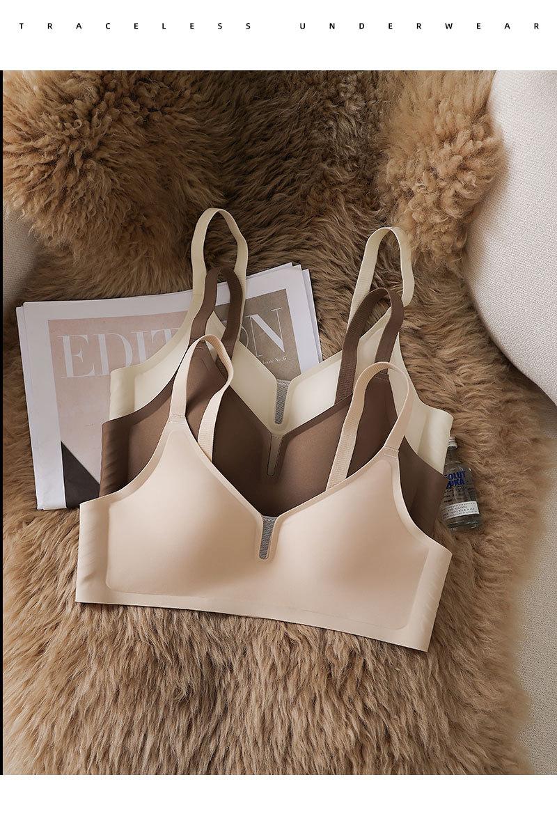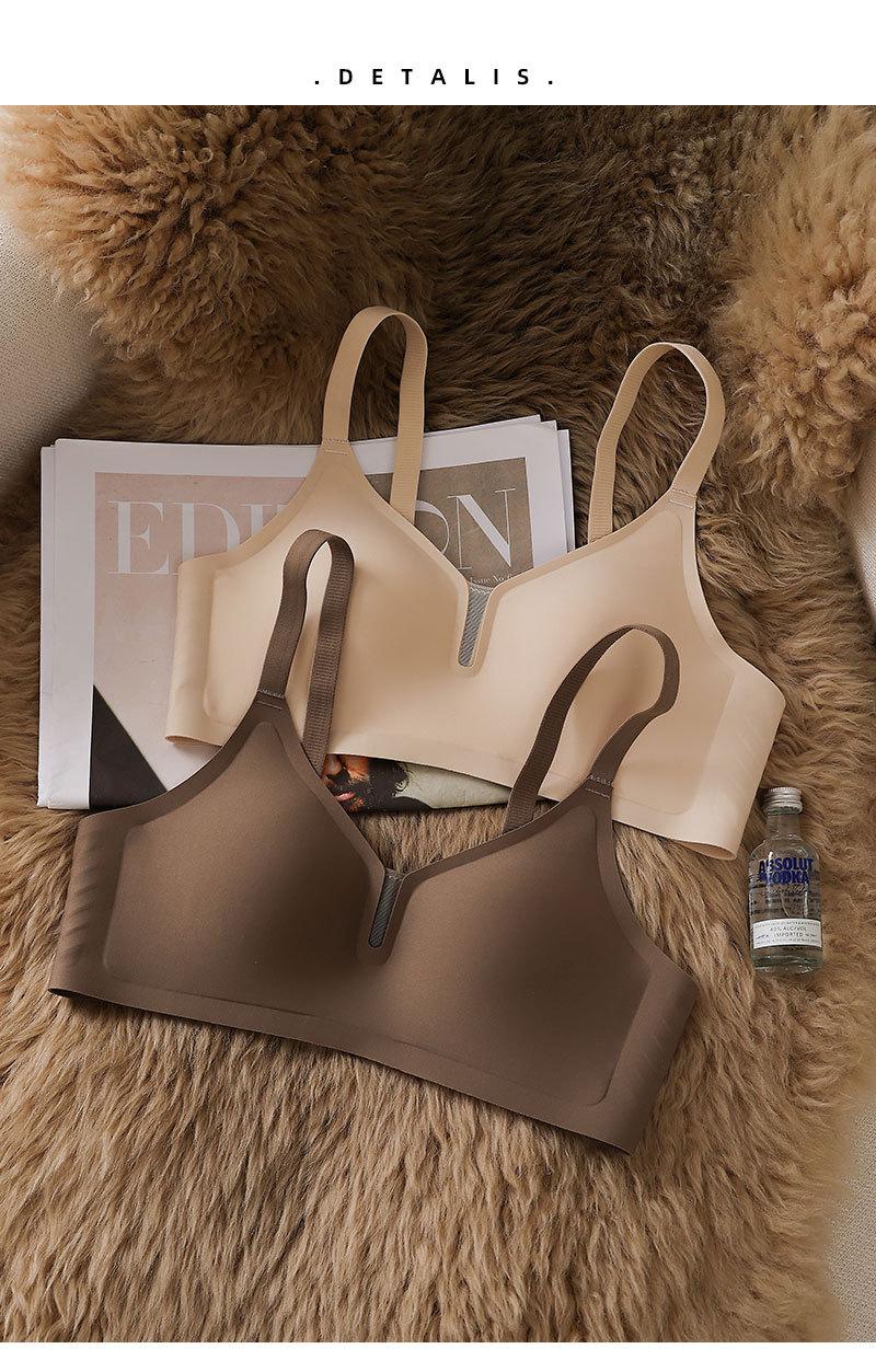 Ropa interior sin costuras seleccionada para mujer, transpirable, delgada, con copa integrada que recoge el busto, tira de gelatina anti-flacidez, brasier inalámbrico