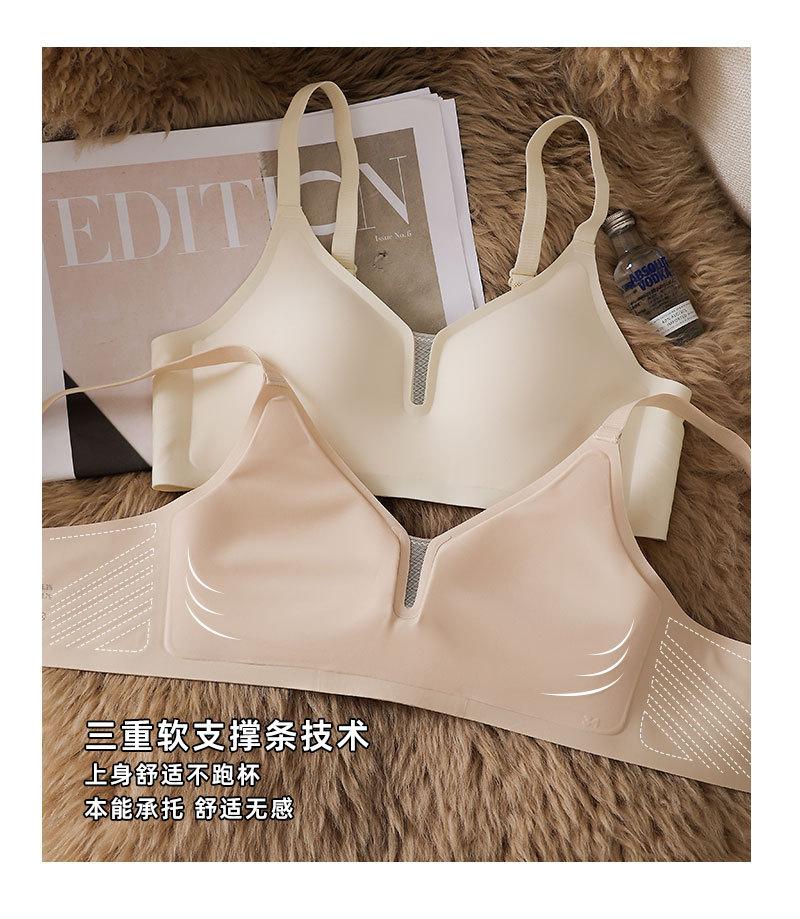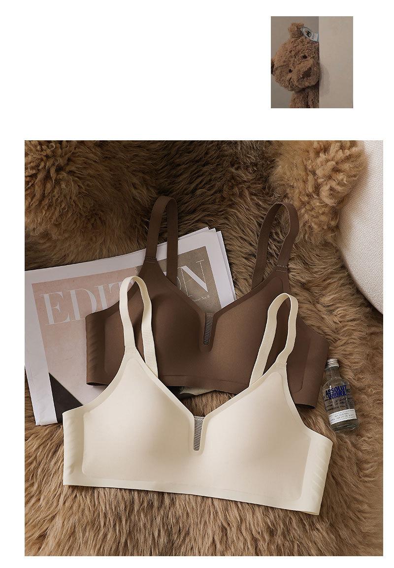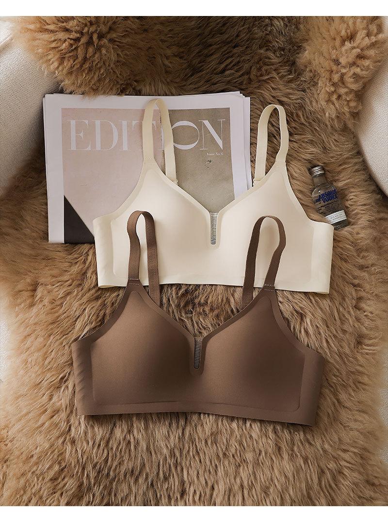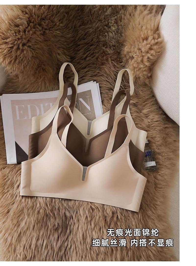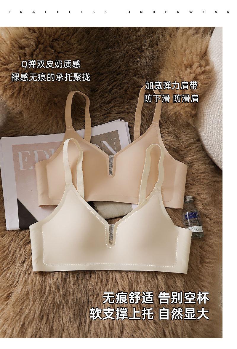 Ropa interior sin costuras seleccionada para mujer, transpirable, delgada, con copa integrada que recoge el busto, tira de gelatina anti-flacidez, brasier inalámbrico